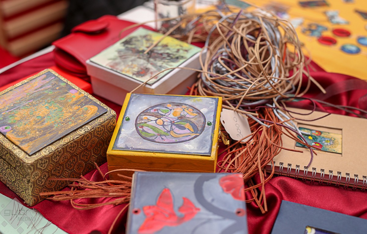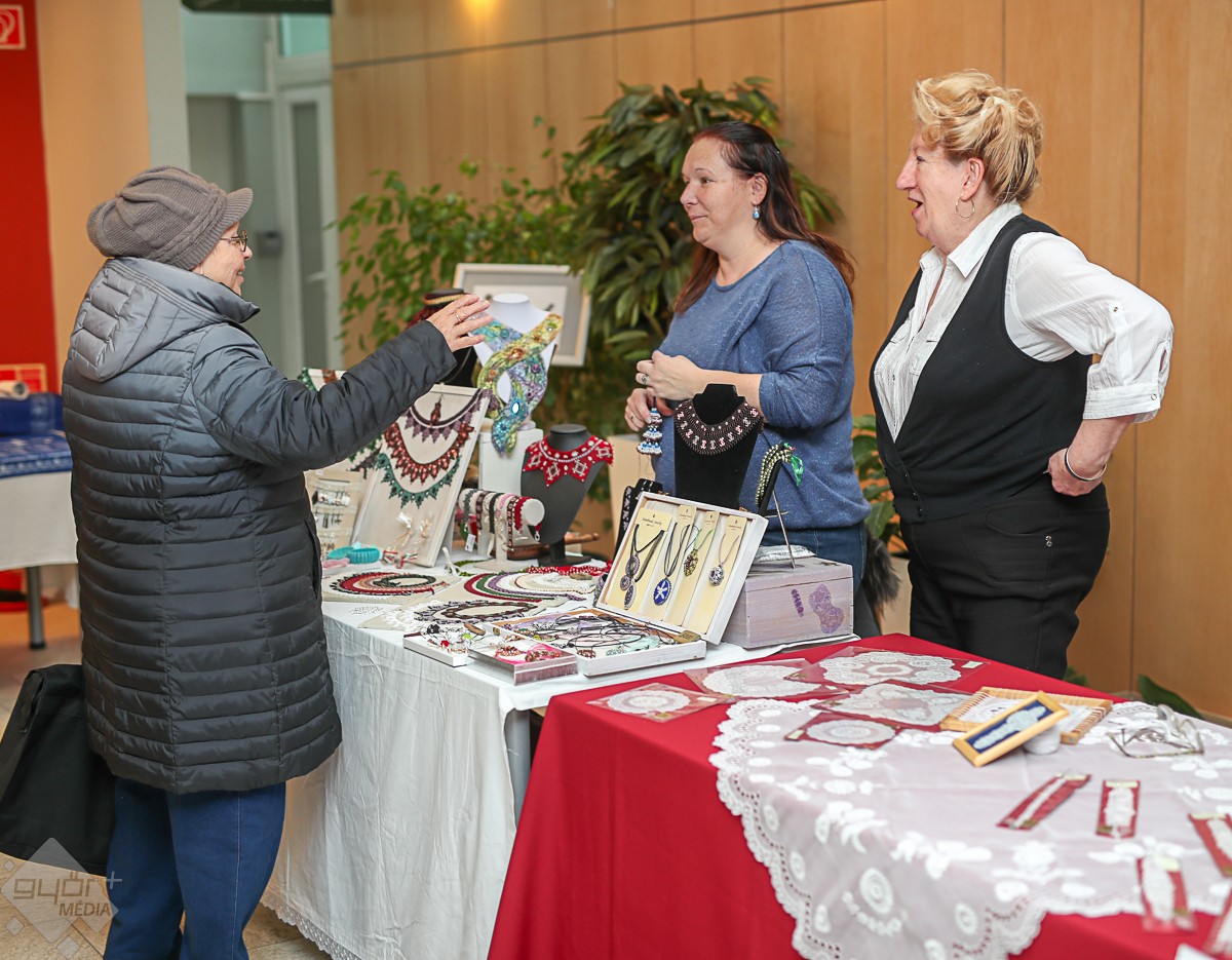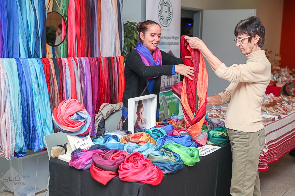 A kamara kézműipari tagozatának tajgai is szép számmal a kiállítók között voltak, többek között vásárolhattunk Kiss Ágota gyöngyékszereiből, Szabó Karola szalma tárgyaiból, Ángyán Csilla fazekas munkáiból, Véghné Lőrinc Ágnes csipkéiből, Kárpáti Erika mézeskalácsaiból, vagy Tóth Ildikó kékfestő alkotásaiból. A kékfestő elmondta, megjelent a Kisalföldi Népművészek Egyesületének 2020-as naptára, melyből megismerhetjük a köztünk élő népi iparművészeket, népművészeket, mestereket. A naptár fotóit O. Jakócs Péter készítette, és ez is beszerezhető a kamarában.