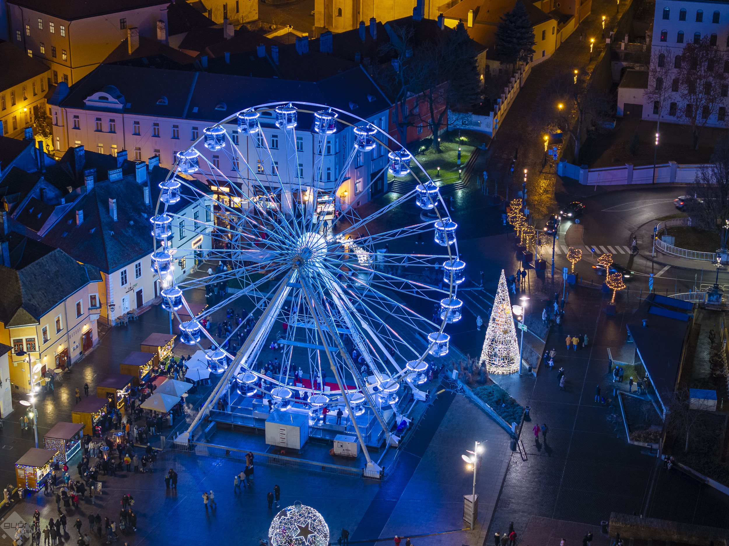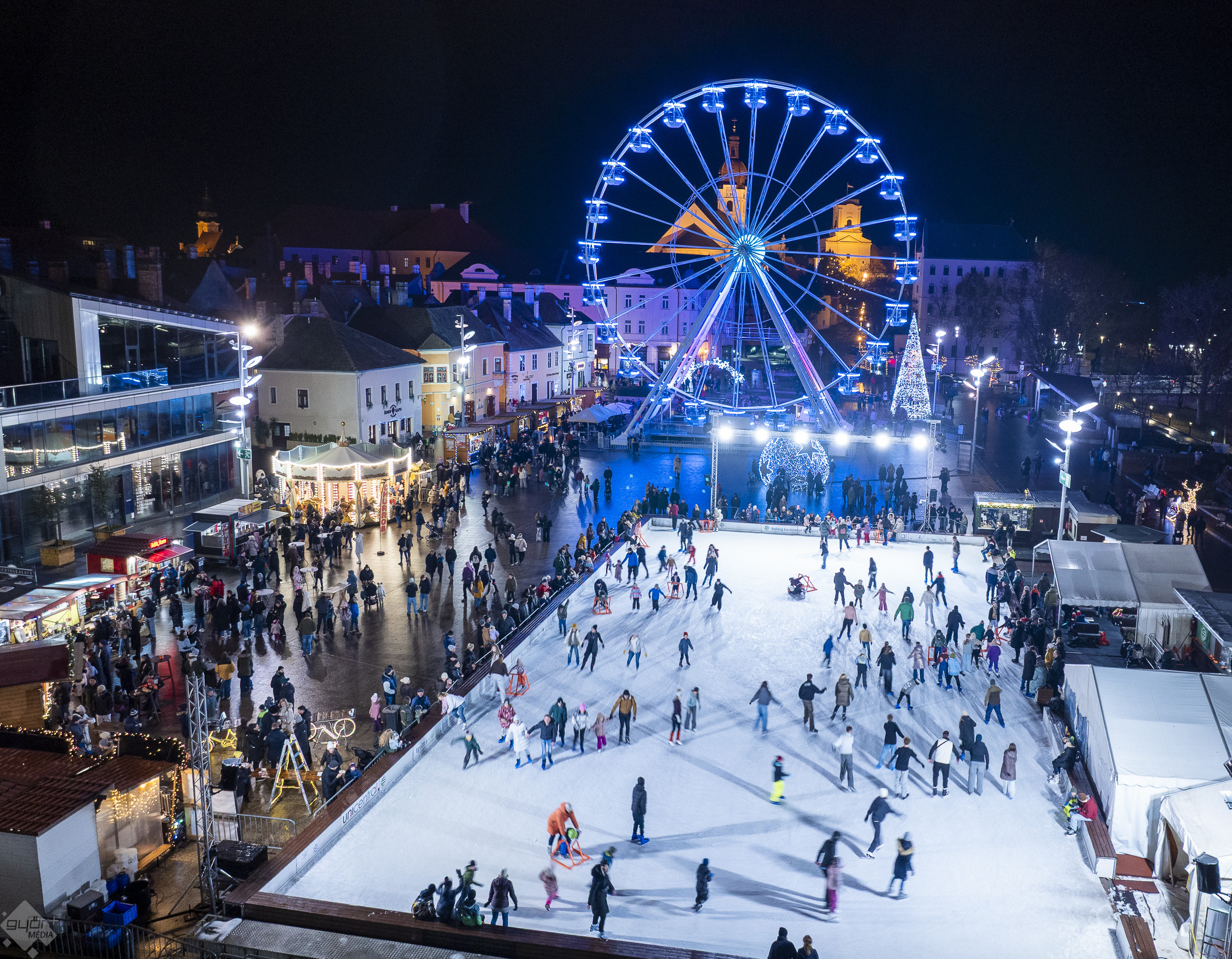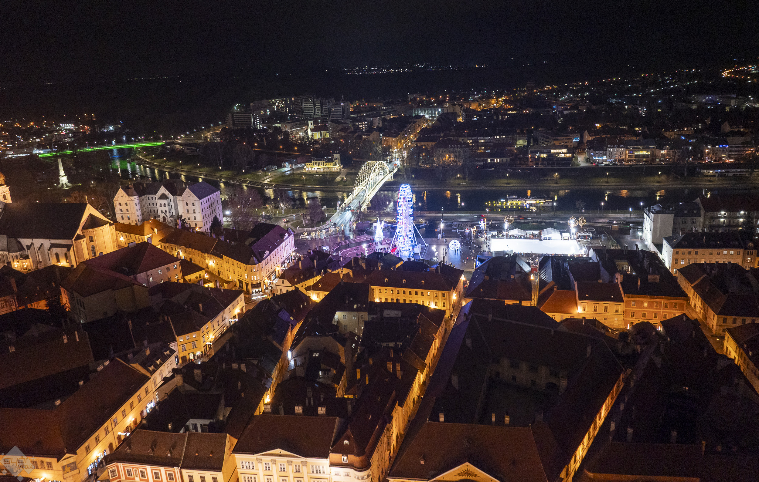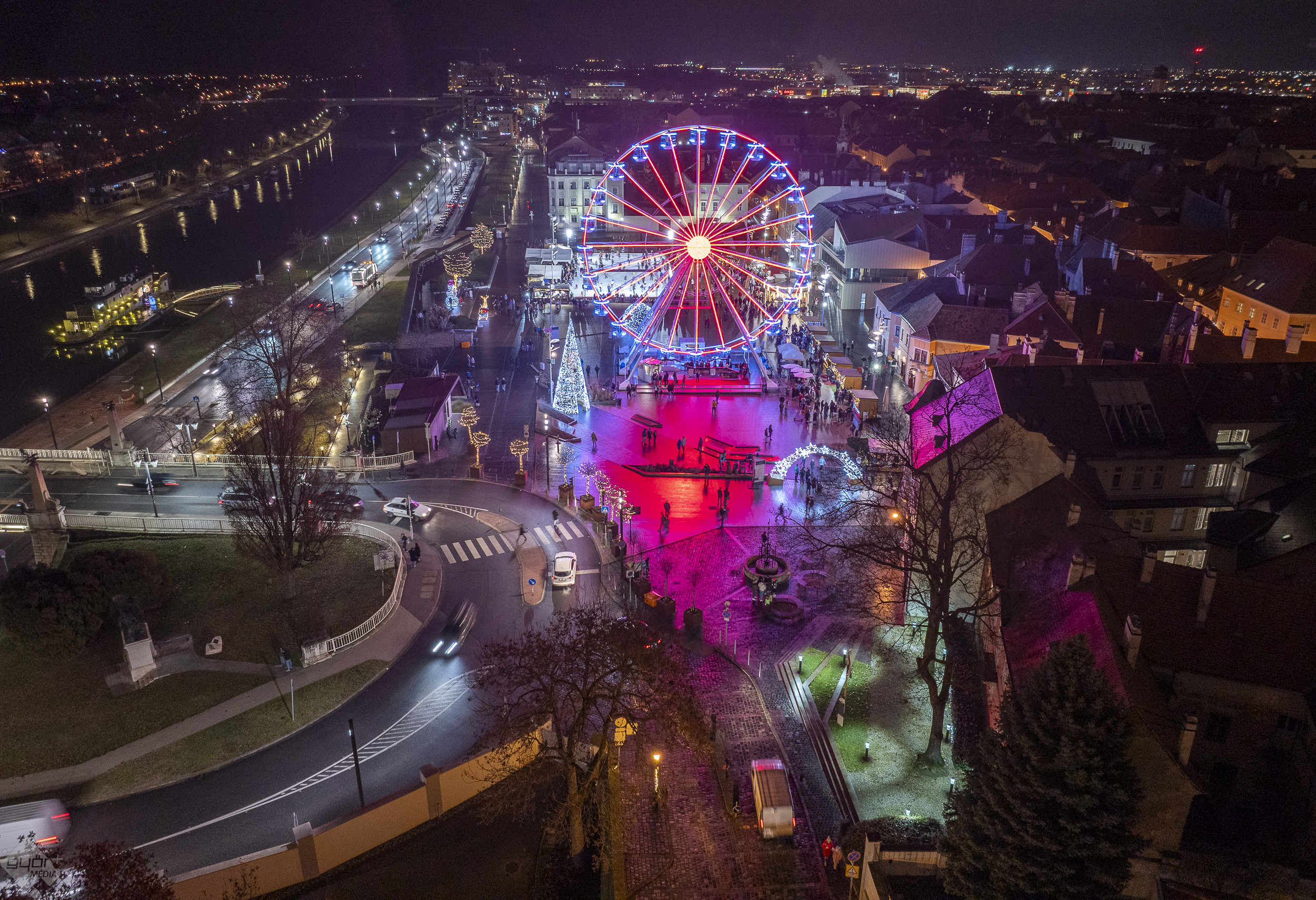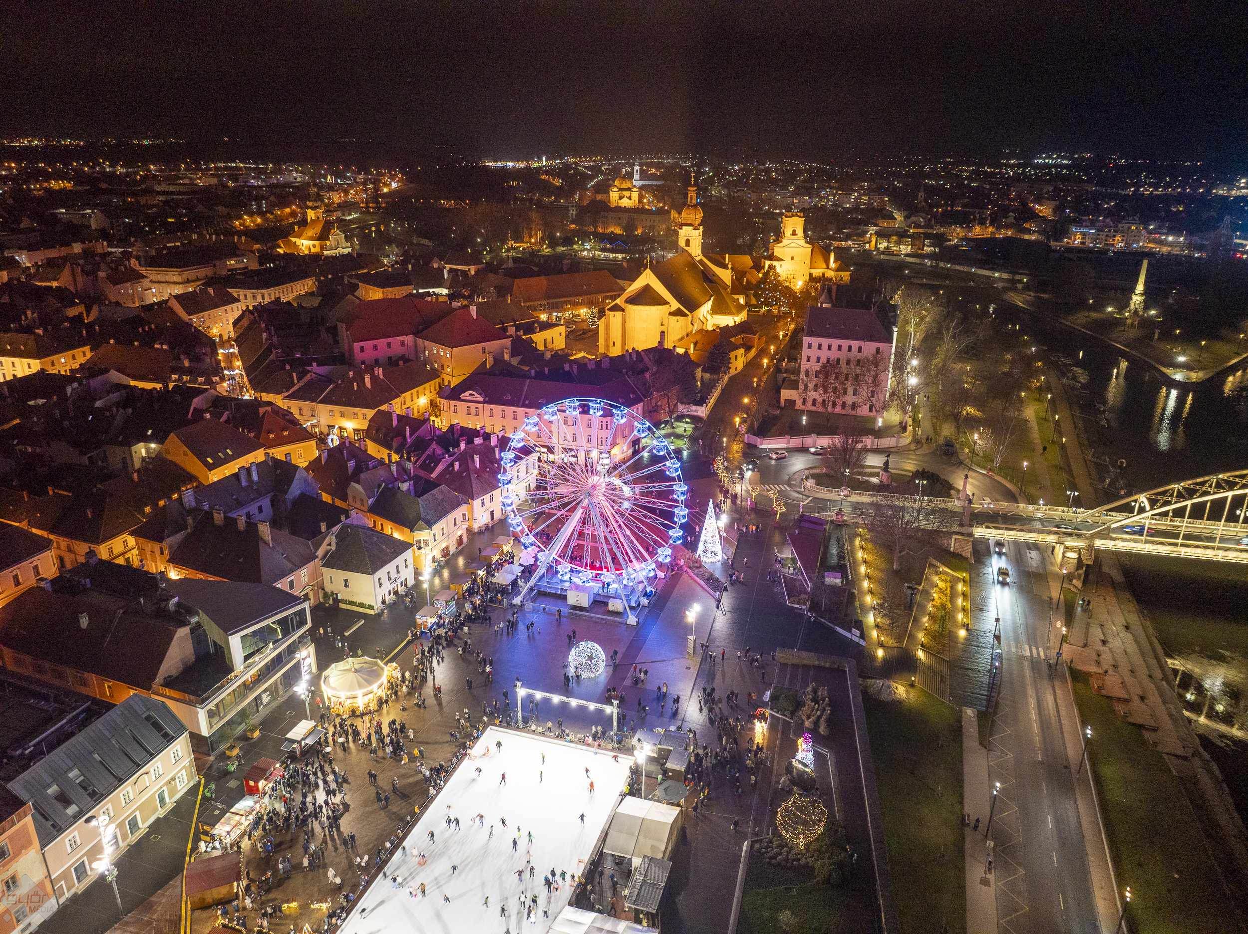 Ennél különlegesebb atmoszférát nehéz elképzelni: gyönyörű díszkivilágítás, fényfüzérektől ragyogó terek, ezer színben pompázó óriáskerék és persze az adventi vásár kis házikói, amelyek estéről estére karácsonyi csodával hintik be a belváros időtlen szépségét. Fentről nézve az ünnepekre készülődő Győr elképesztő látványt nyújt – és olyan arcát mutatja, amelyet ritkán van alkalmunk megcsodálni.