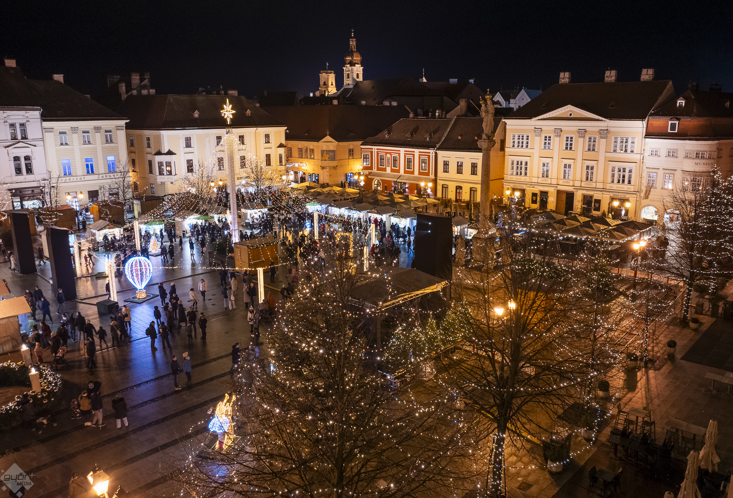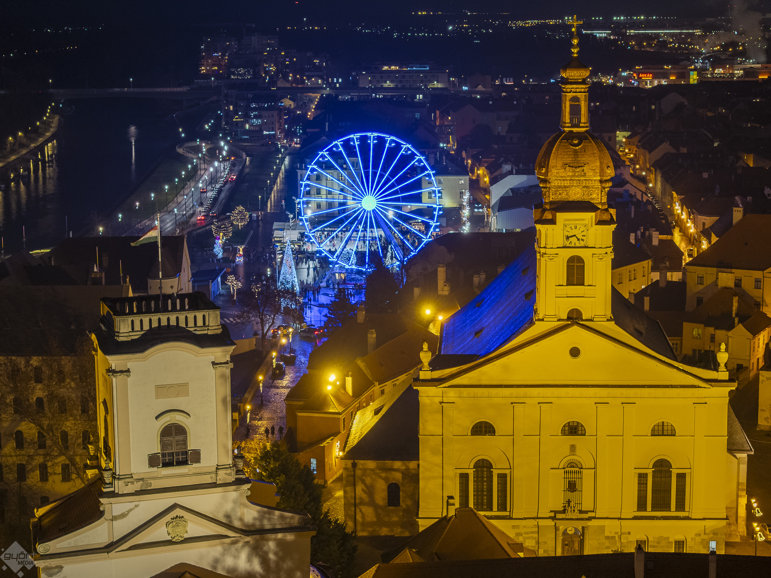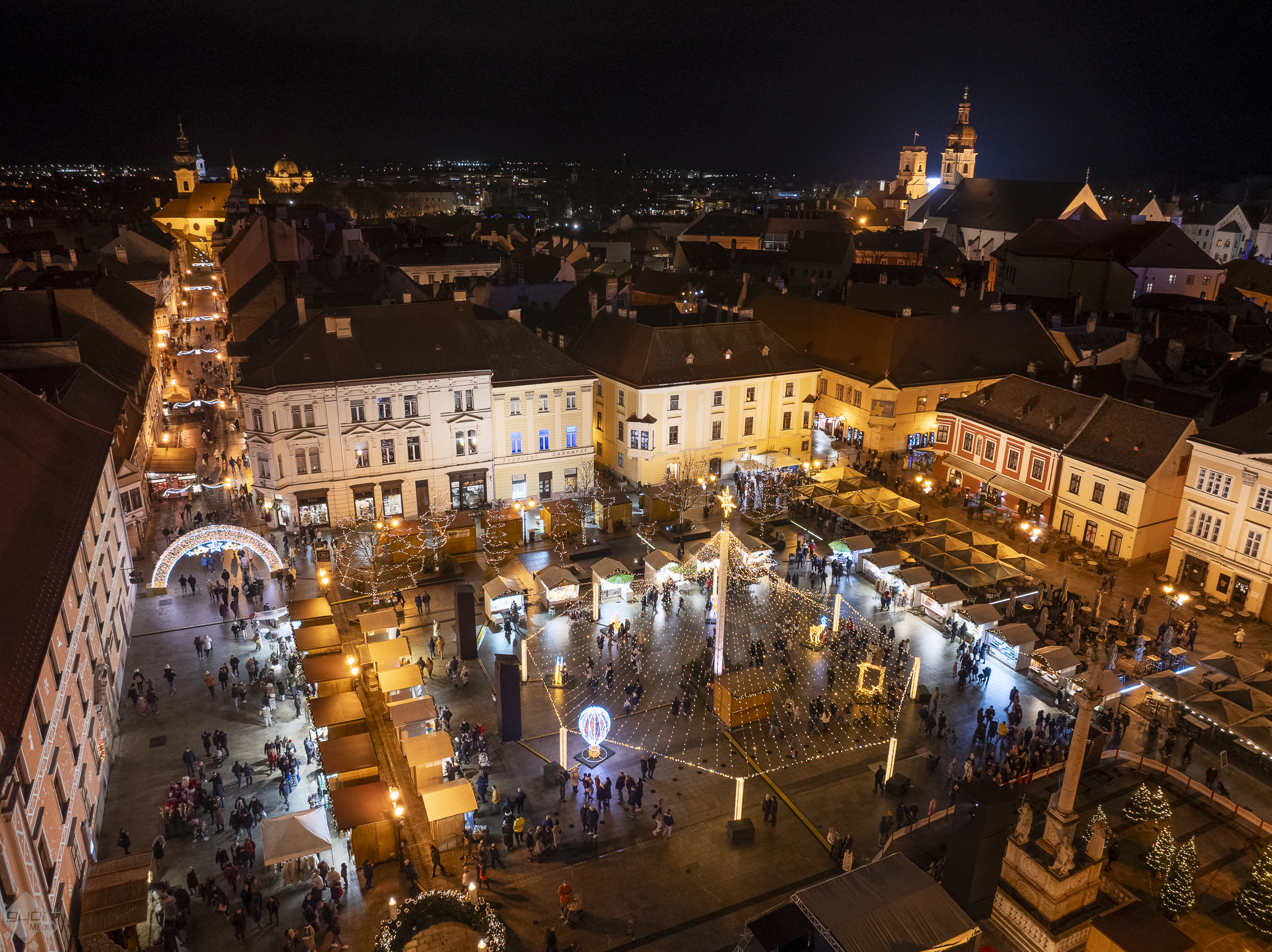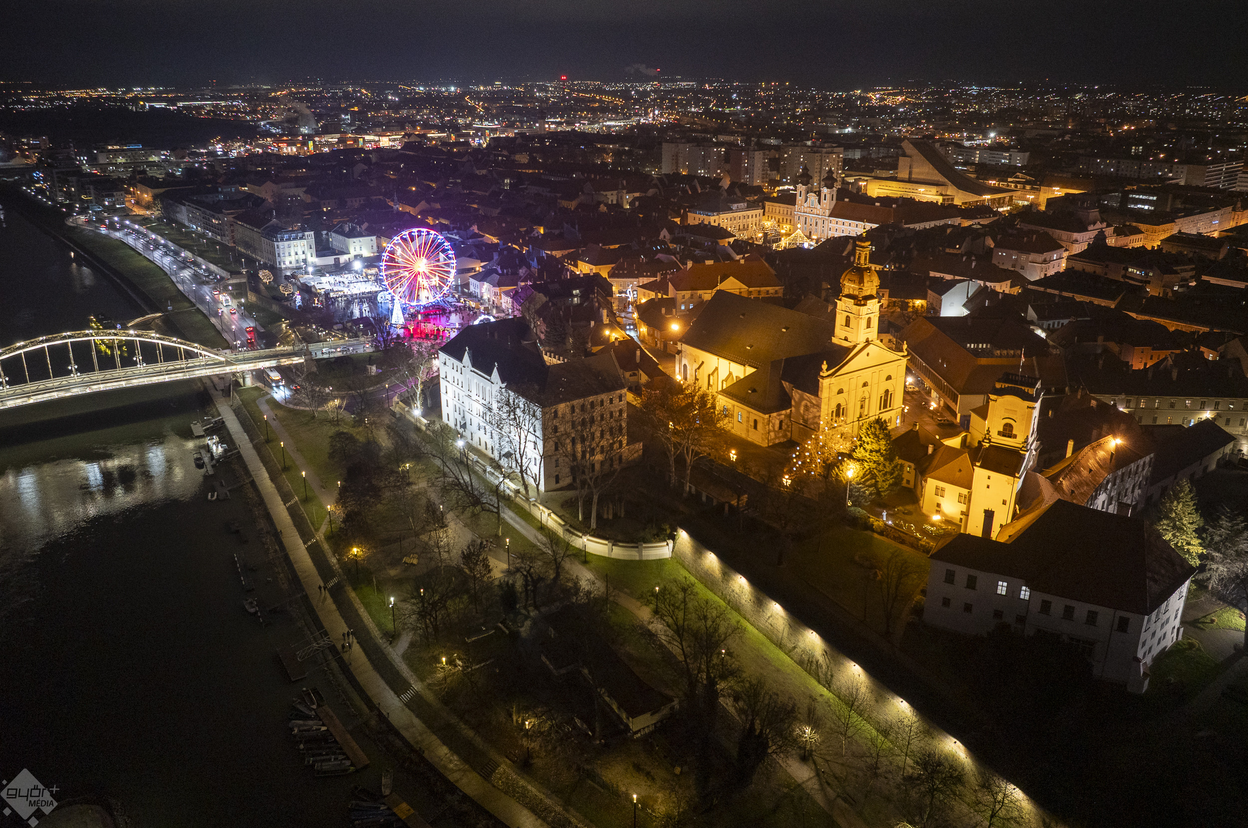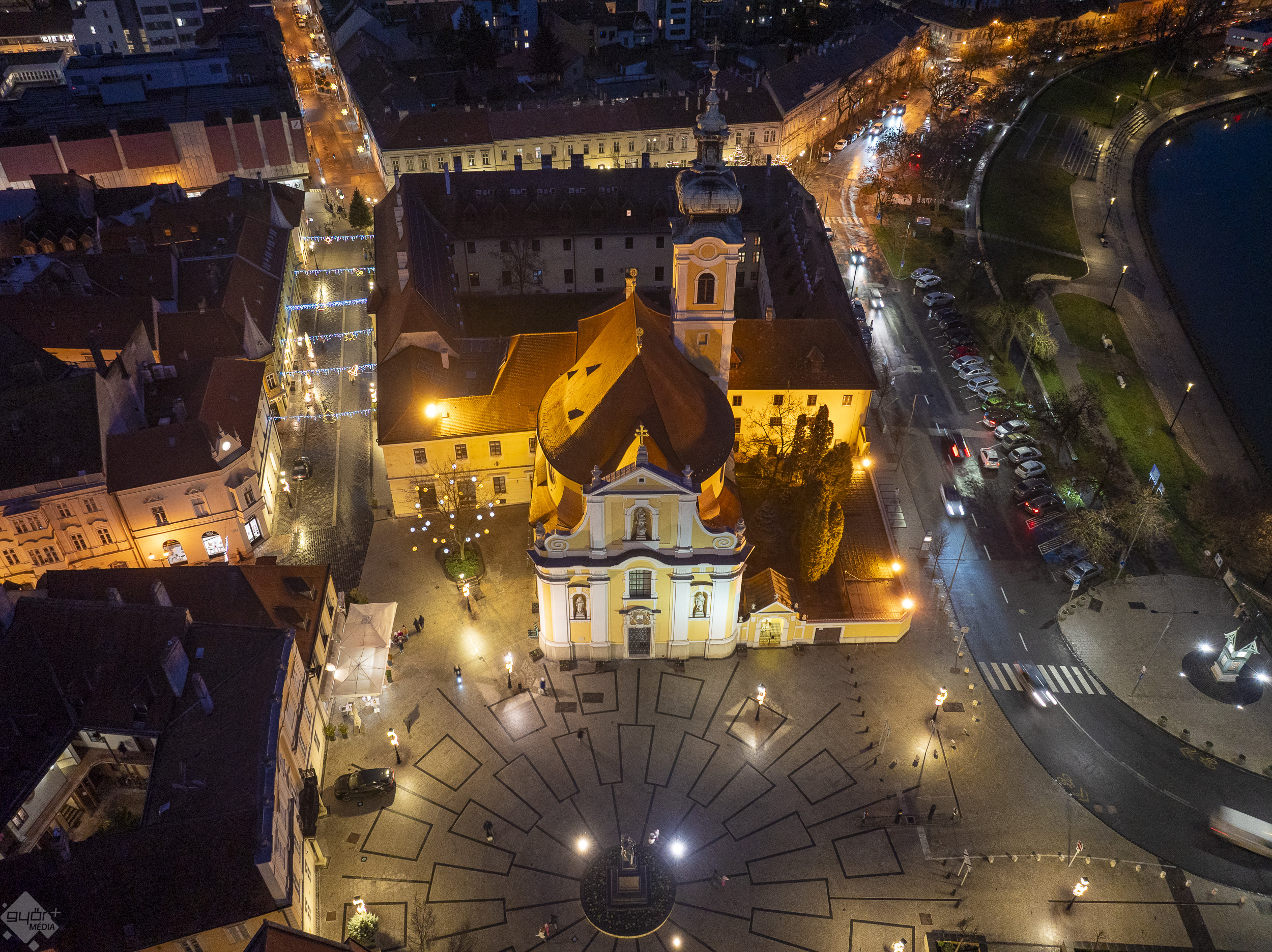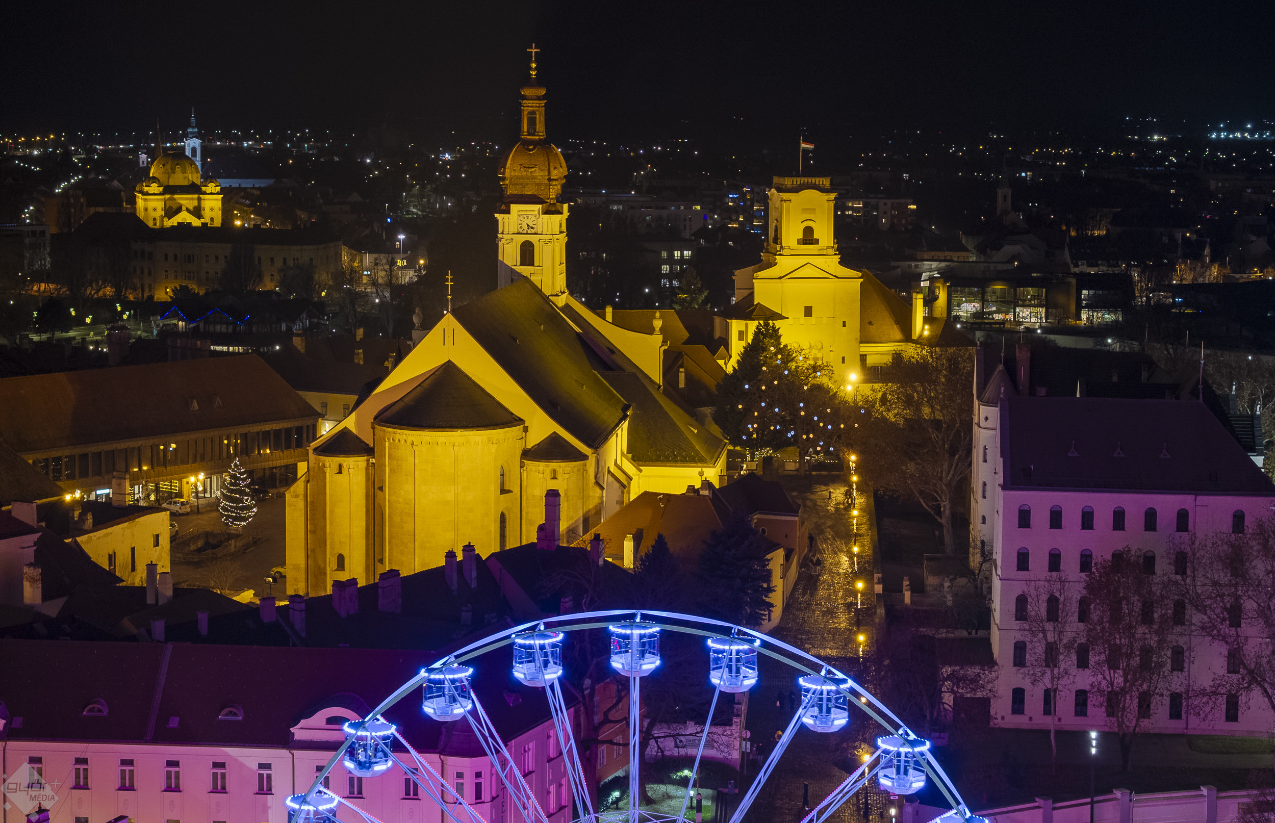Ennél különlegesebb atmoszférát nehéz elképzelni: gyönyörű díszkivilágítás, fényfüzérektől ragyogó terek, ezer színben pompázó óriáskerék és persze az adventi vásár kis házikói, amelyek estéről estére karácsonyi csodával hintik be a belváros időtlen szépségét. Fentről nézve az ünnepekre készülődő Győr elképesztő látványt nyújt – és olyan arcát mutatja, amelyet ritkán van alkalmunk megcsodálni.