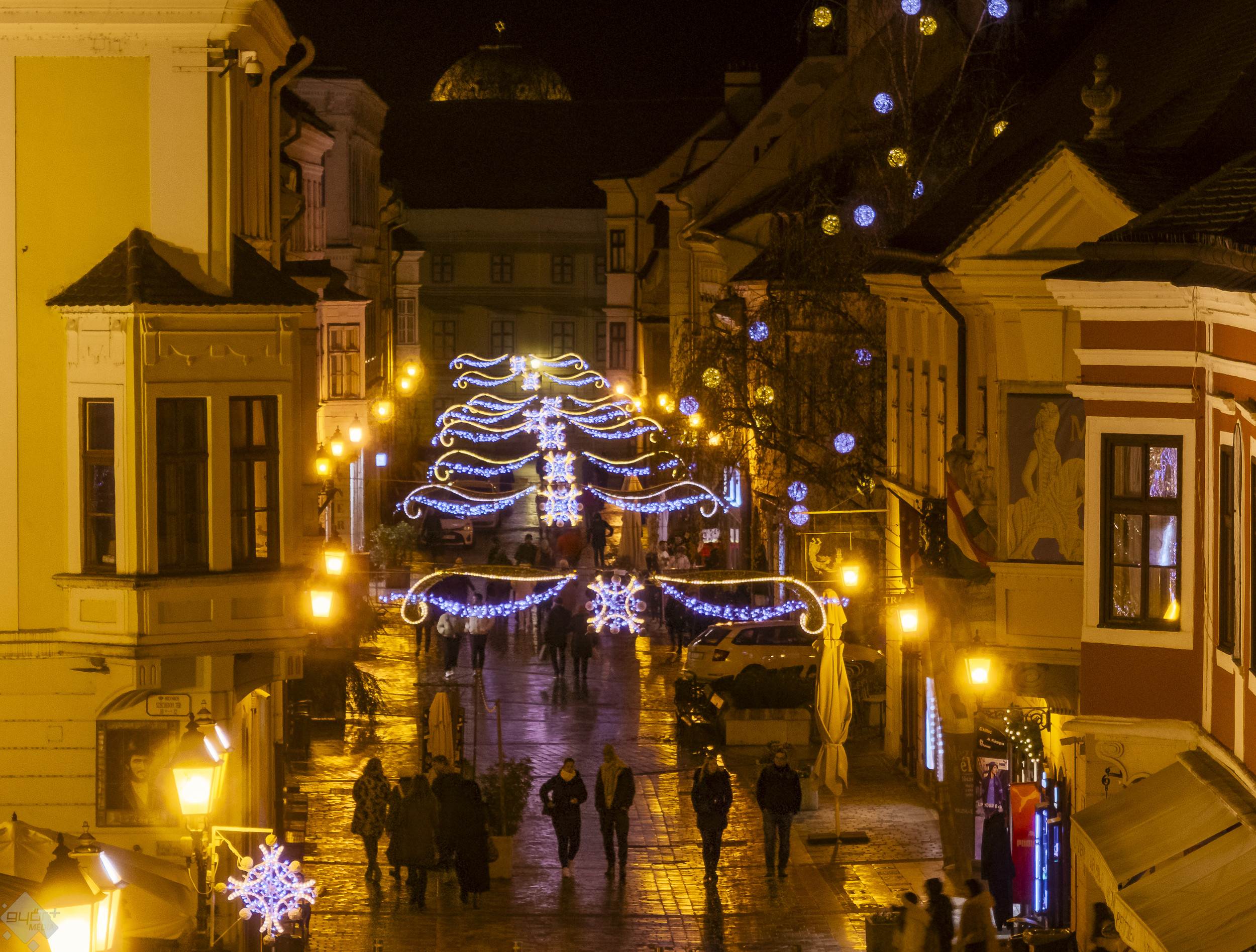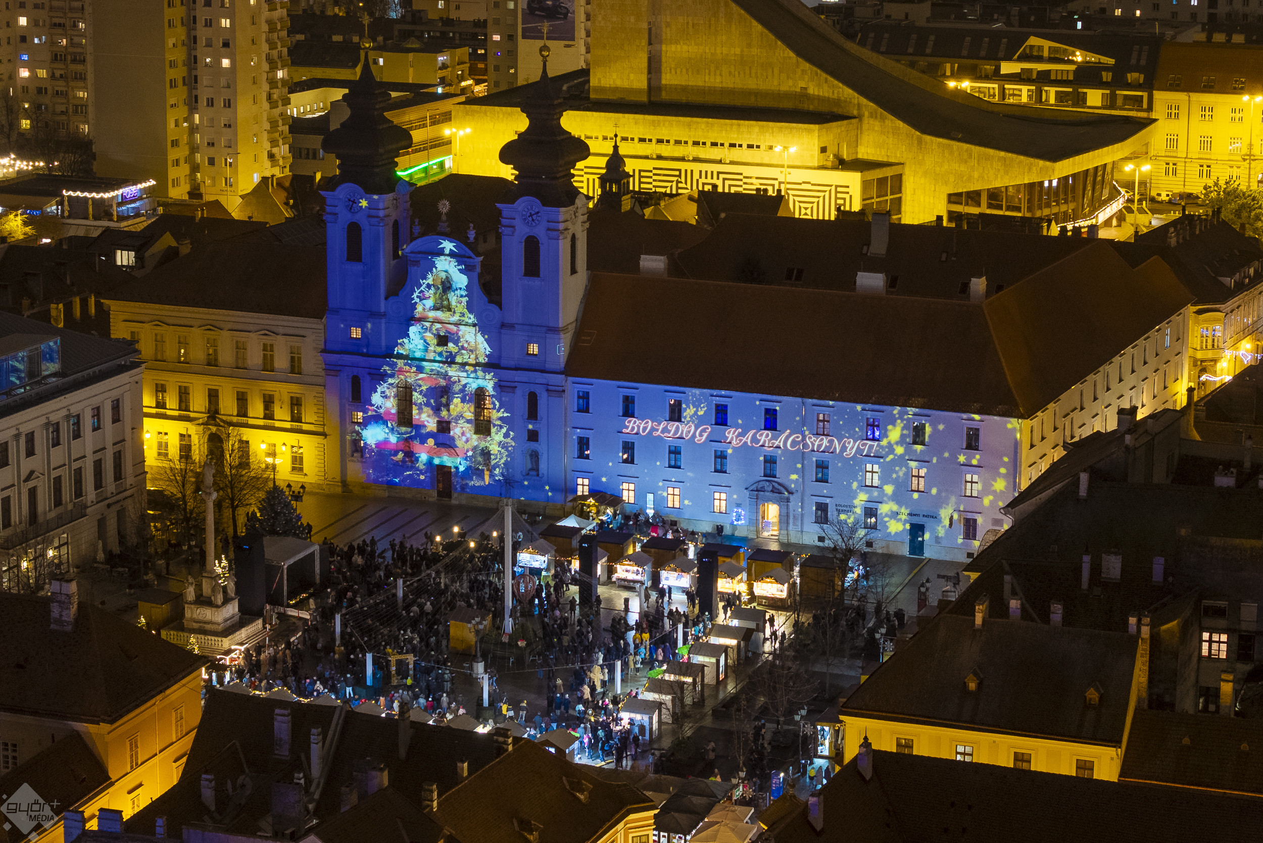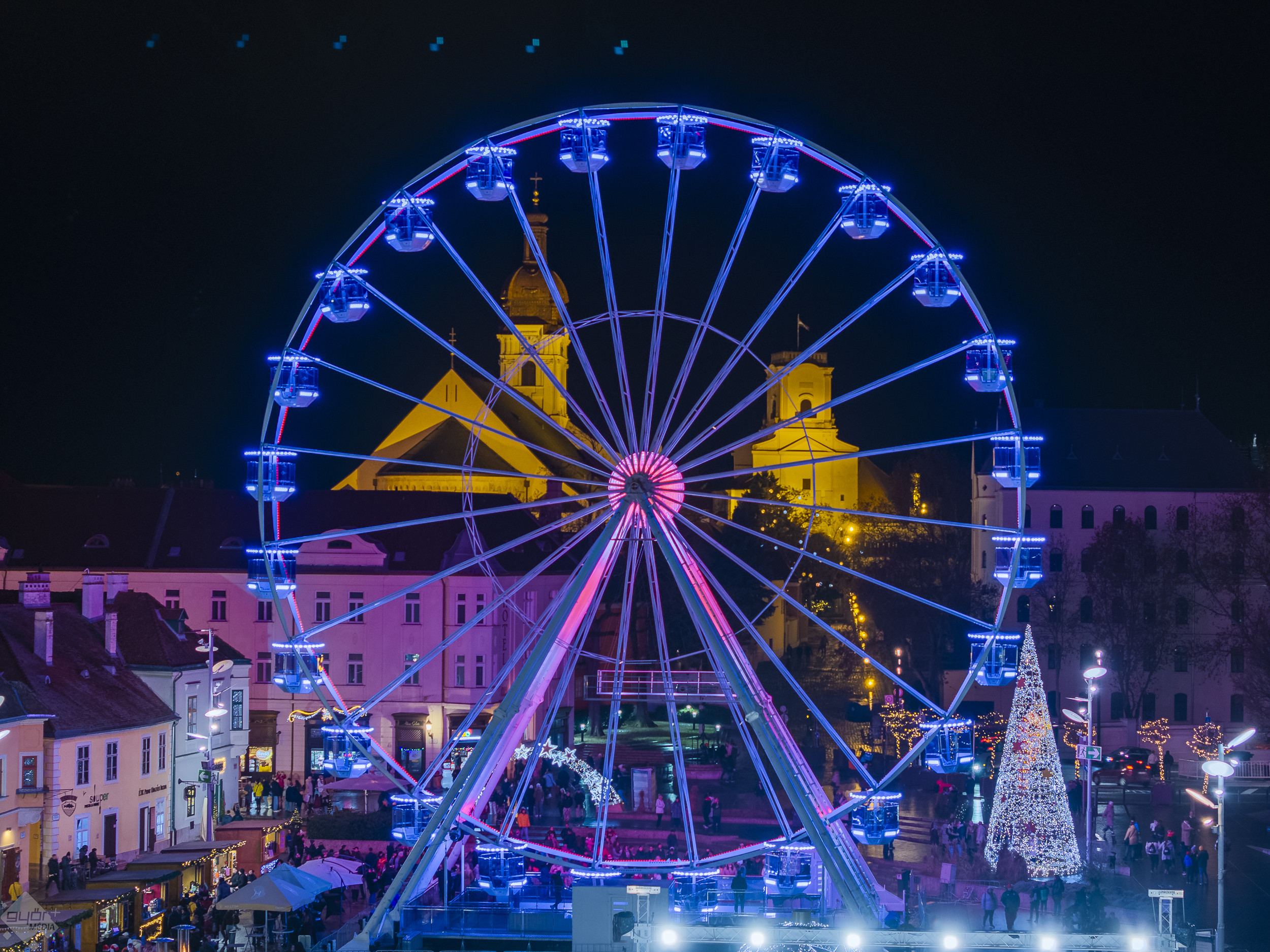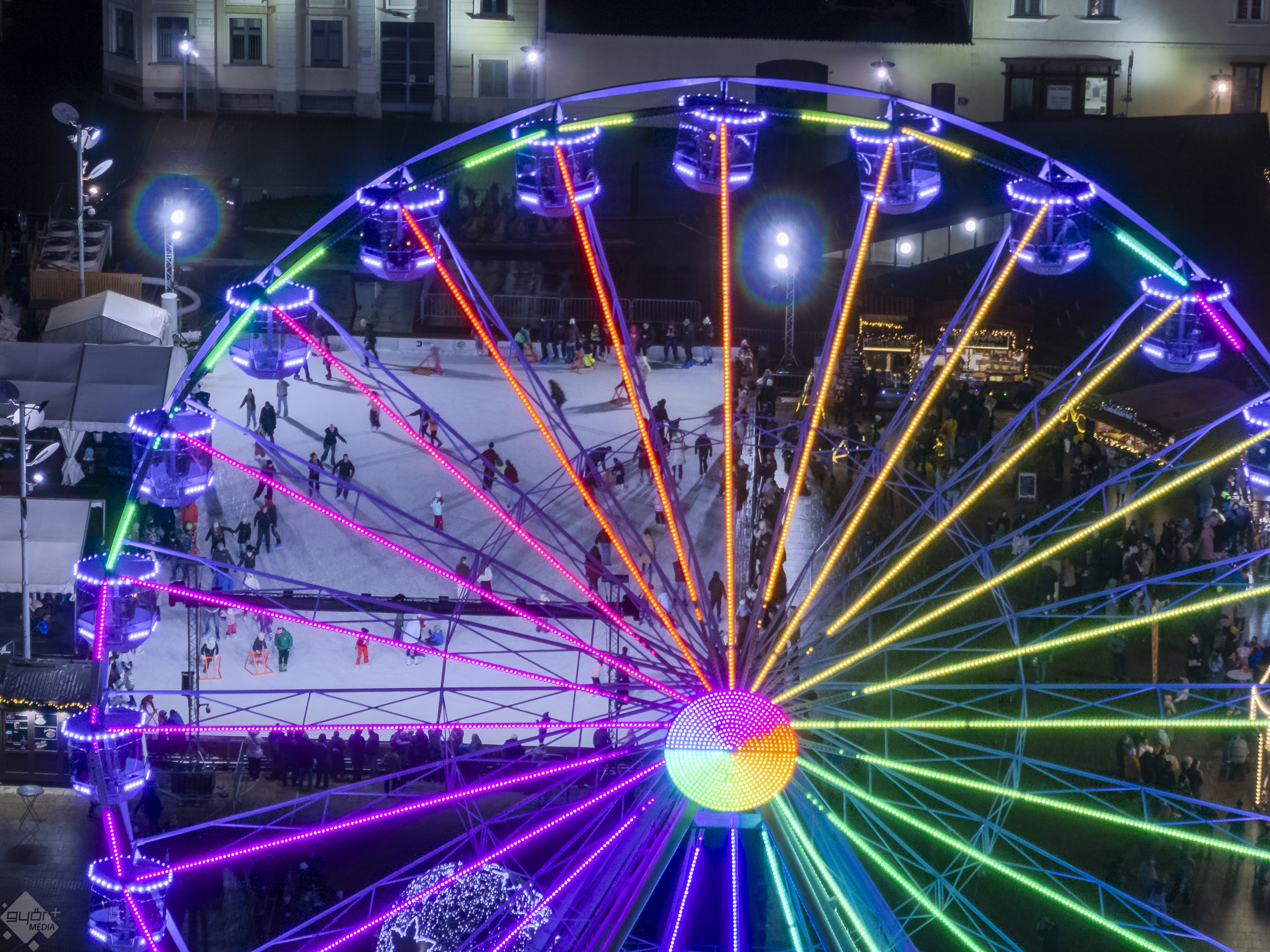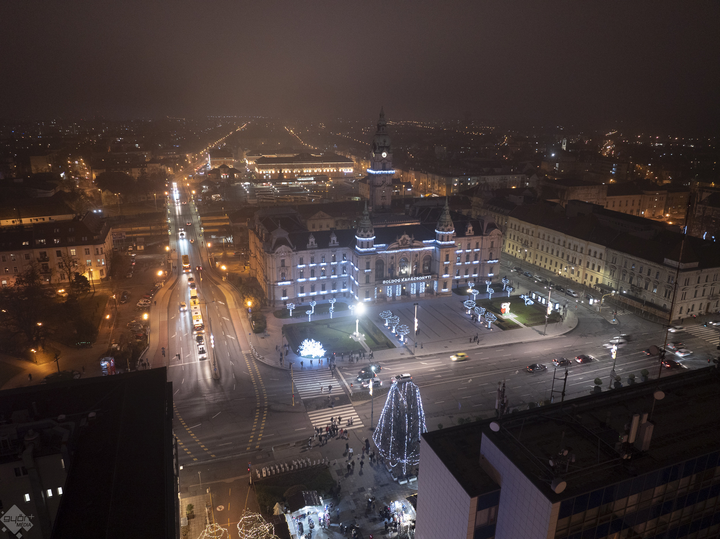 Ennél különlegesebb atmoszférát nehéz elképzelni: gyönyörű díszkivilágítás, fényfüzérektől ragyogó terek, ezer színben pompázó óriáskerék és persze az adventi vásár kis házikói, amelyek estéről estére karácsonyi csodával hintik be a belváros időtlen szépségét. Fentről nézve az ünnepekre készülődő Győr elképesztő látványt nyújt – és olyan arcát mutatja, amelyet ritkán van alkalmunk megcsodálni.
