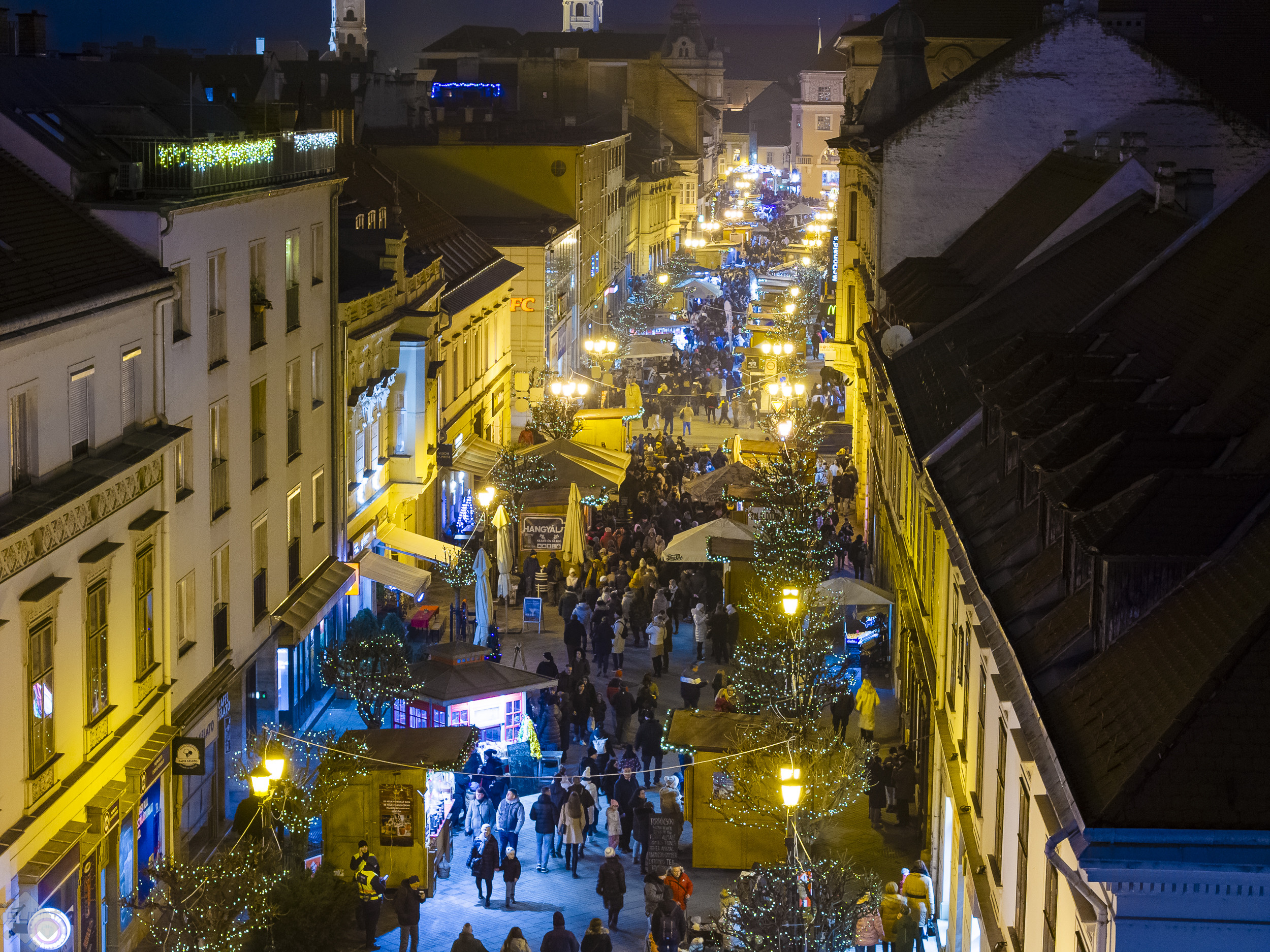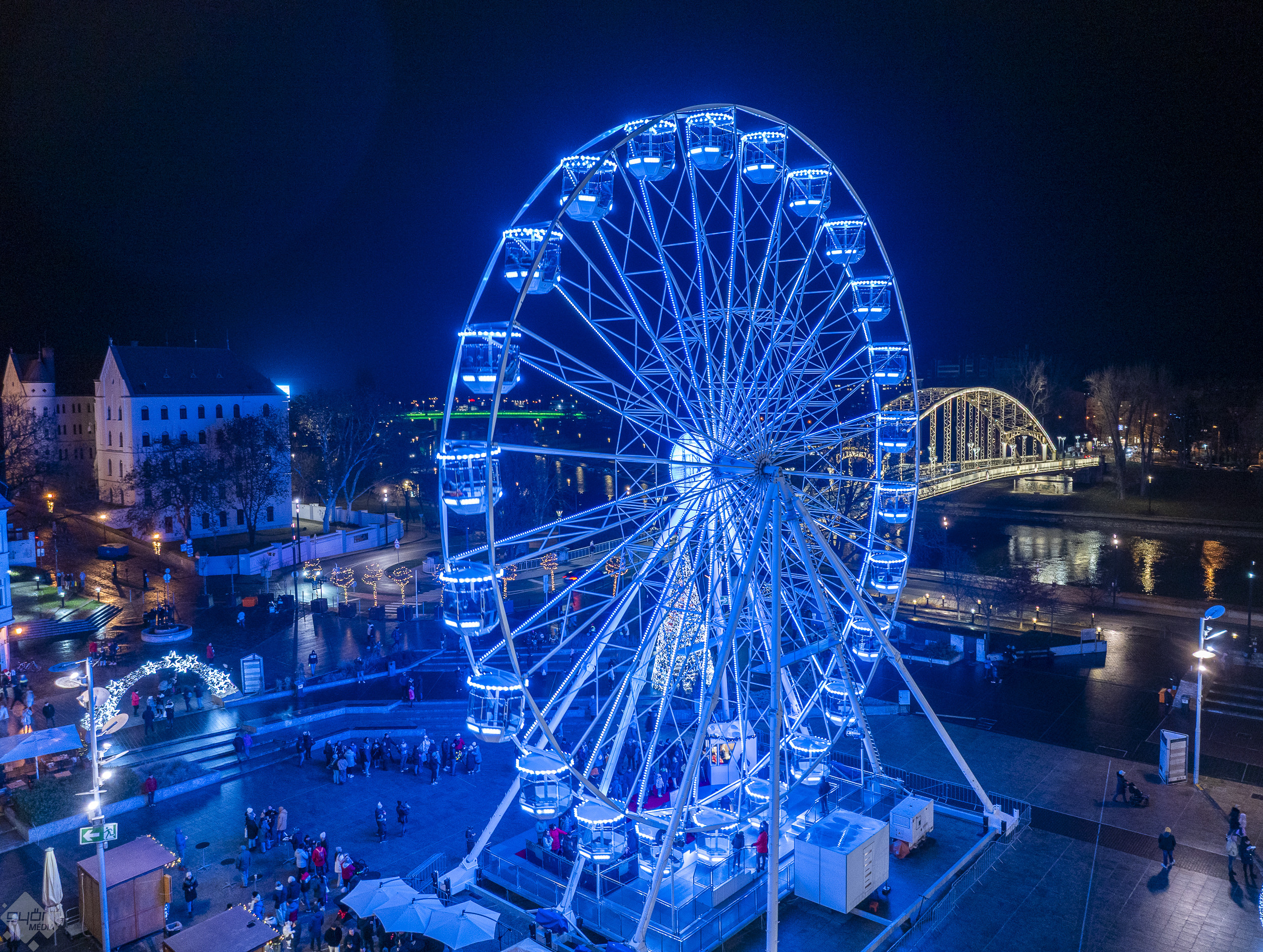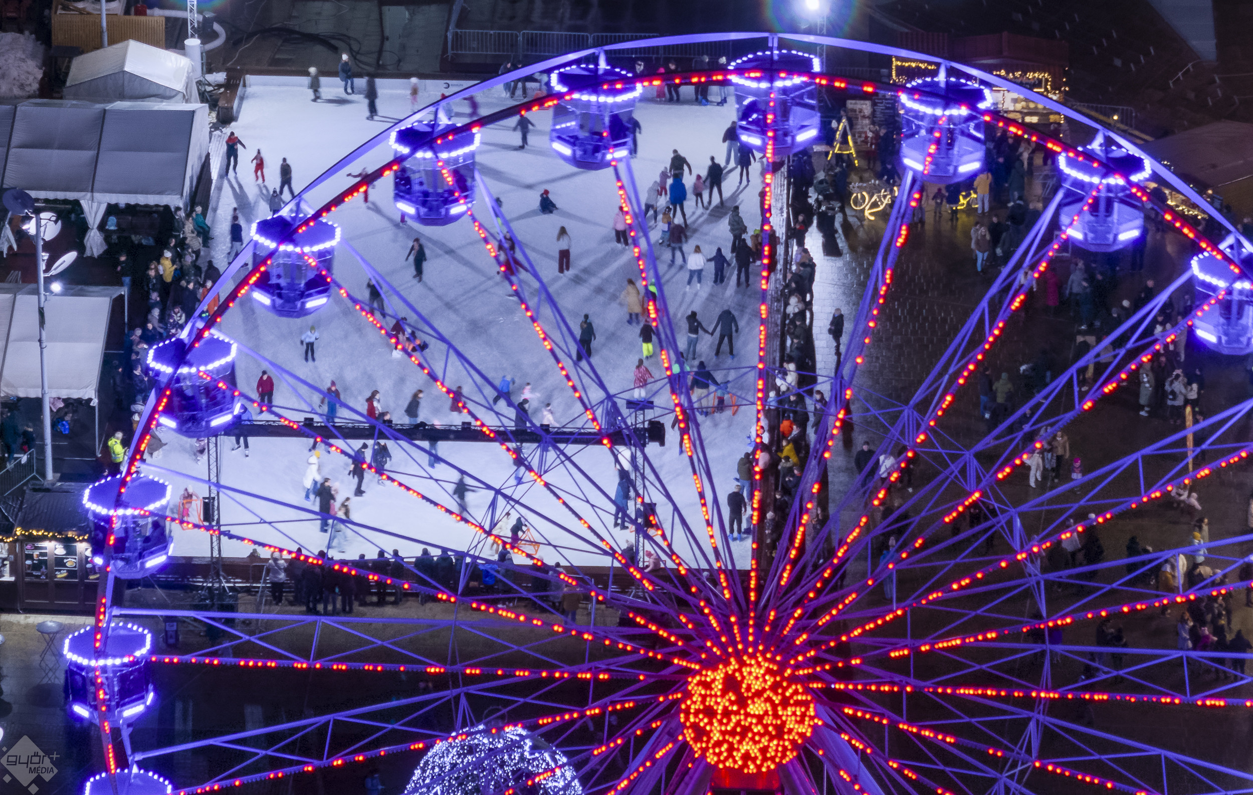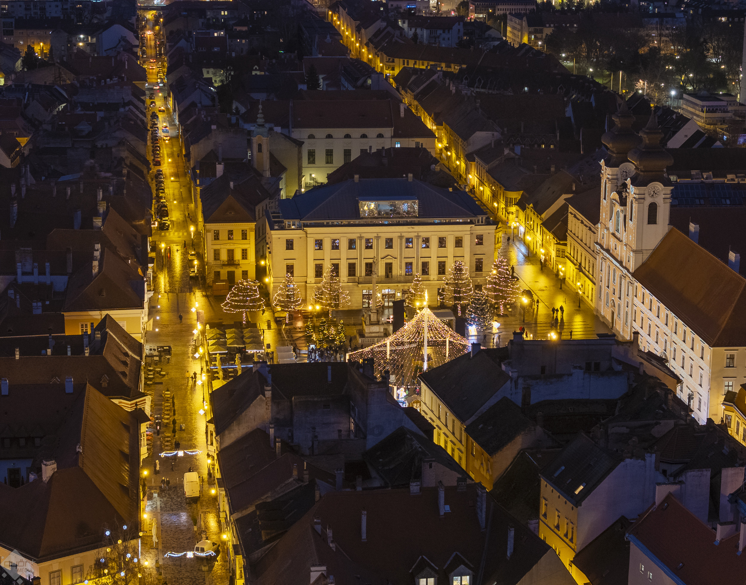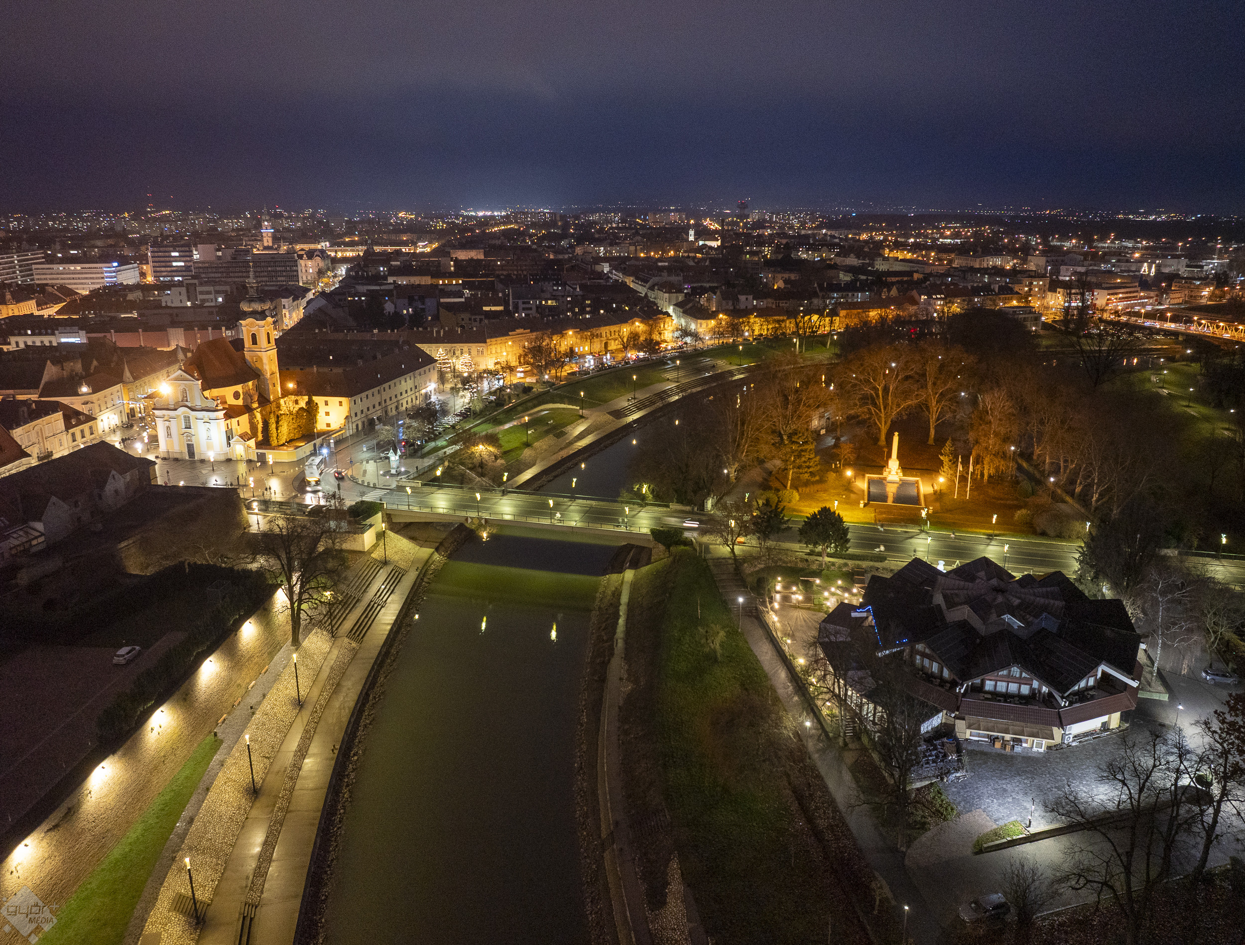 Ennél különlegesebb atmoszférát nehéz elképzelni: gyönyörű díszkivilágítás, fényfüzérektől ragyogó terek, ezer színben pompázó óriáskerék és persze az adventi vásár kis házikói, amelyek estéről estére karácsonyi csodával hintik be a belváros időtlen szépségét. Fentről nézve az ünnepekre készülődő Győr elképesztő látványt nyújt – és olyan arcát mutatja, amelyet ritkán van alkalmunk megcsodálni.