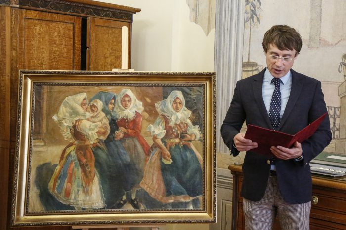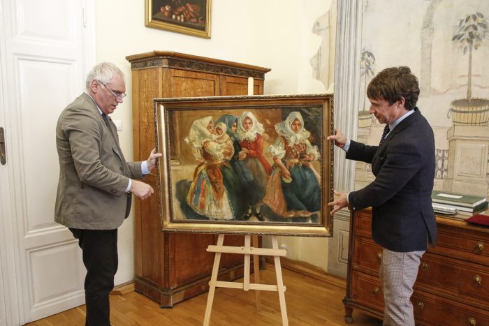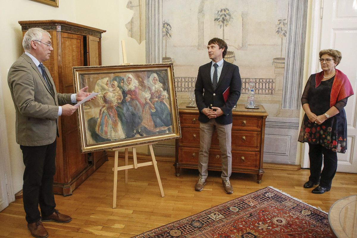 Udvary Pál (1900-1987) a Templomba menve című festményét ajándékozta a 750 éves Győrnek a Magyar Örökség Hazatérése Alapítvány vezetője Dubitskiy Dimitry, melyet Székely Zoltán, a Rómer Flóris Múzeum igazgatója vett át csütörtökön délután ünnepélyes keretek között.