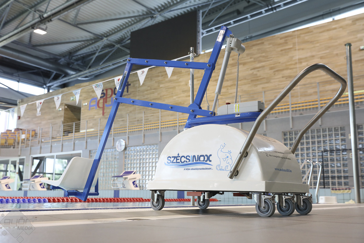 „Ez az emelő berendezés két millió forintba került és volt az egyetlen hiányzó láncszem, így az Aqua Sportcentrum teljesen akadálymentes.”.- emelte ki Hajtó Péter a Győr Projekt Kft. üzemeltetési és kulturális igazgatója.
