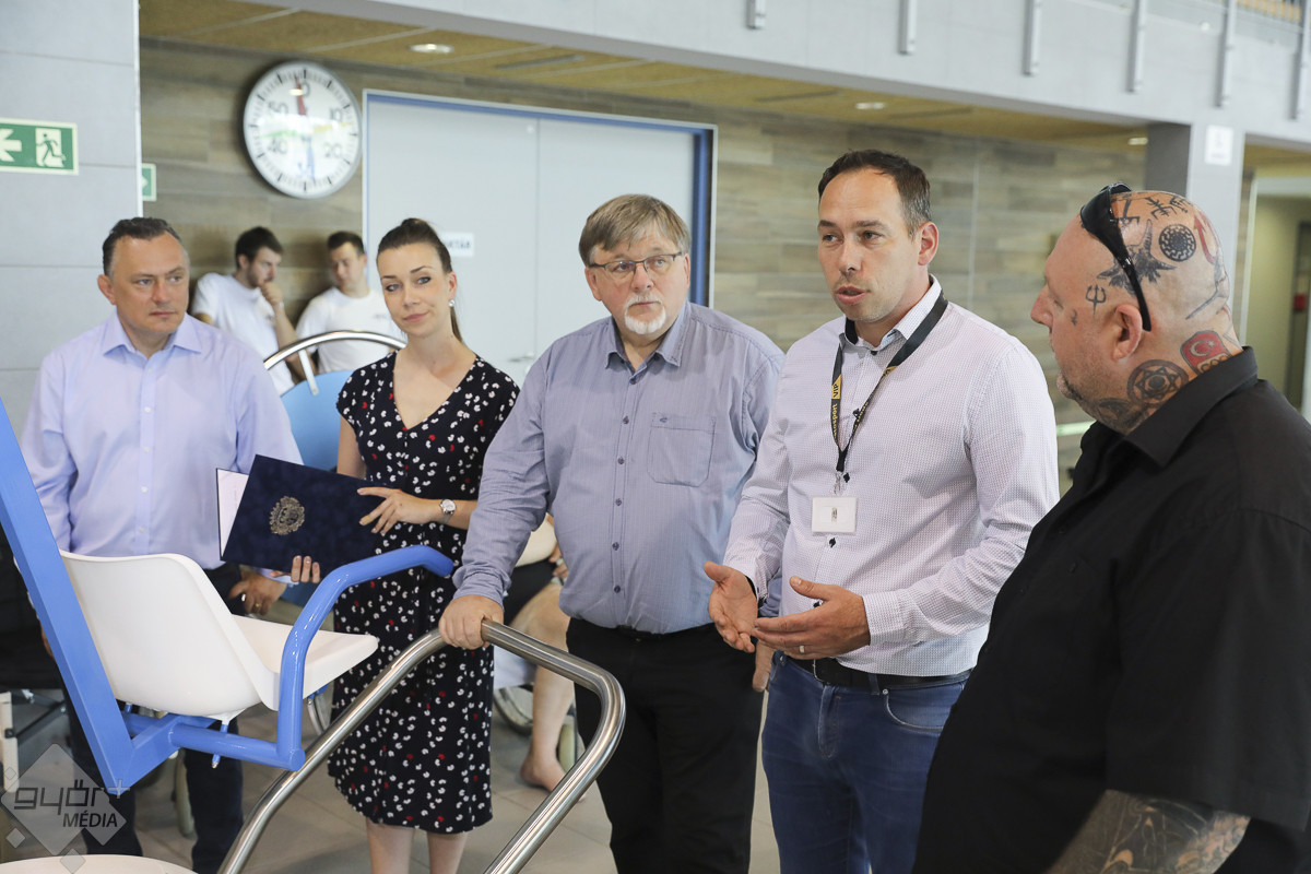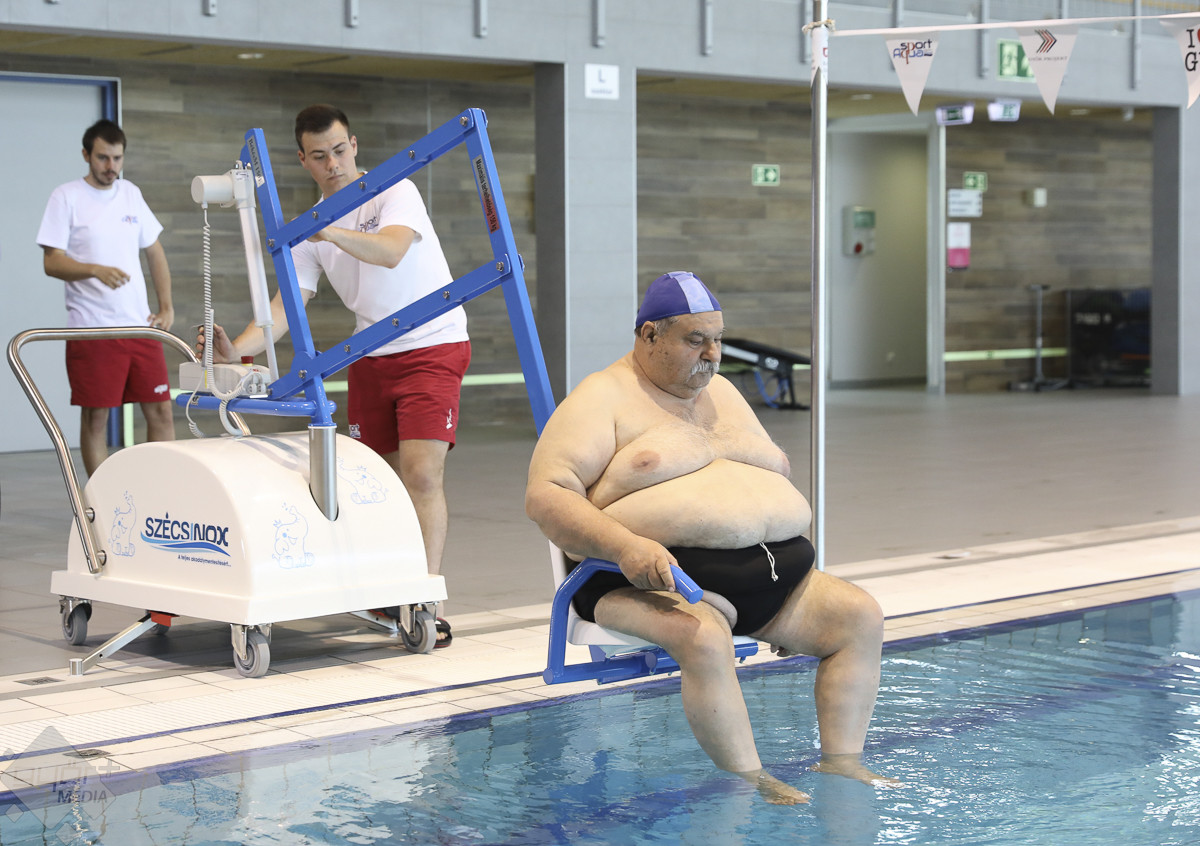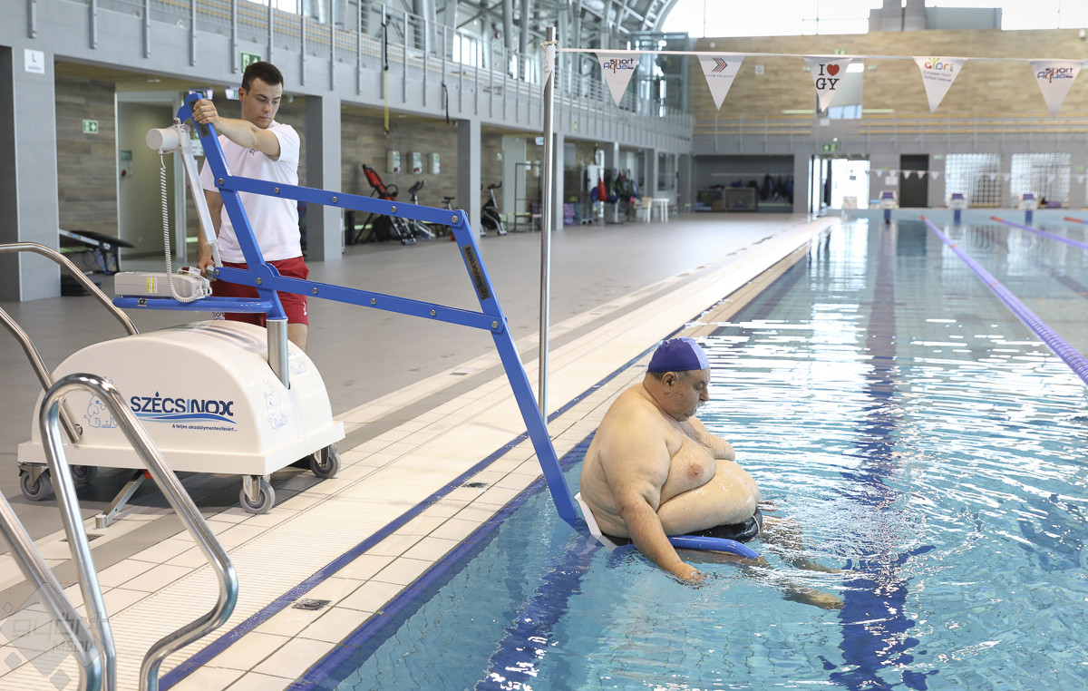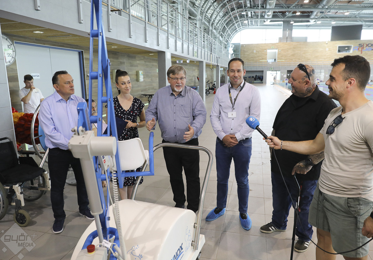 „Mindent meg kell tenni annak érdekében, hogy Győr a mozgáskorlátozottak számára is élhető legyen” - mondta Dr. Dézsi Csaba András Győr polgármestere az Aqua Sportközpontban, ahol egy olyan berendezést adott át, ami megkönnyíti a mozgáskorlátozottak medencébe jutását. Az Aqua Sportközpontban már csak ez az egyetlen láncszem hiányzott ahhoz, hogy az egész létesítmény teljesen akadálymentessé váljon.