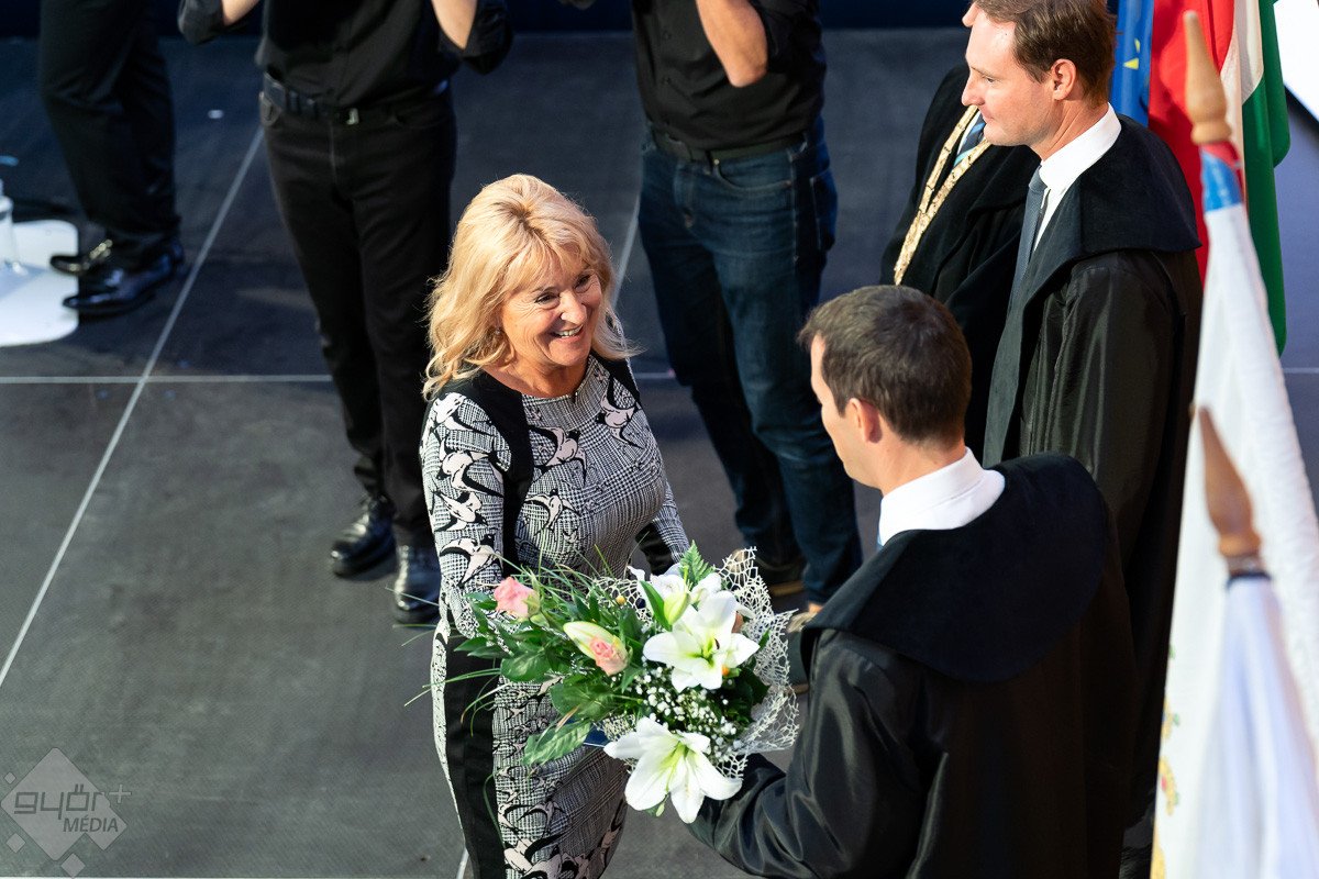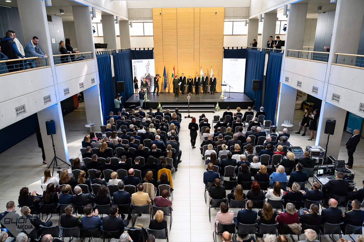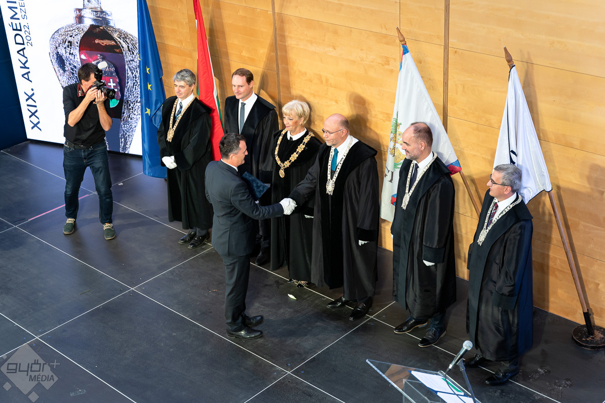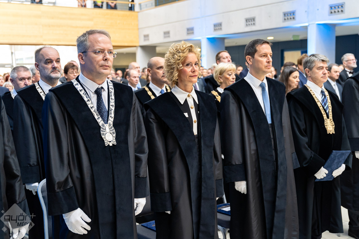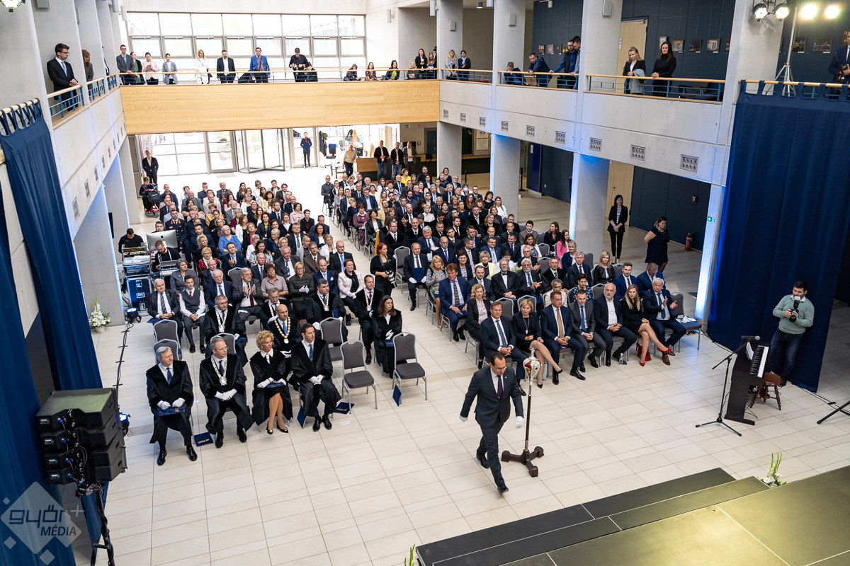 A közel három évtizedes hagyomány az idén is folytatódott, a keddi jeles esemény az egyetem szenátusának ünnepi nyilvános ülésével vette kezdetét a győri campuson. Fanfárok kíséretében, a zászlóvivő és a paedumhordozók felvezetésével vonult be az elnökség. Az ünnepségen a doktorrá avatásukra váró hallgatók mellett az intézmény legrangosabb elismeréseinek várományosai, a nyugdíjba vonuló munkatársak, egyetemi polgárok és az intézménnyel együttműködésben dolgozók egyaránt megjelentek.