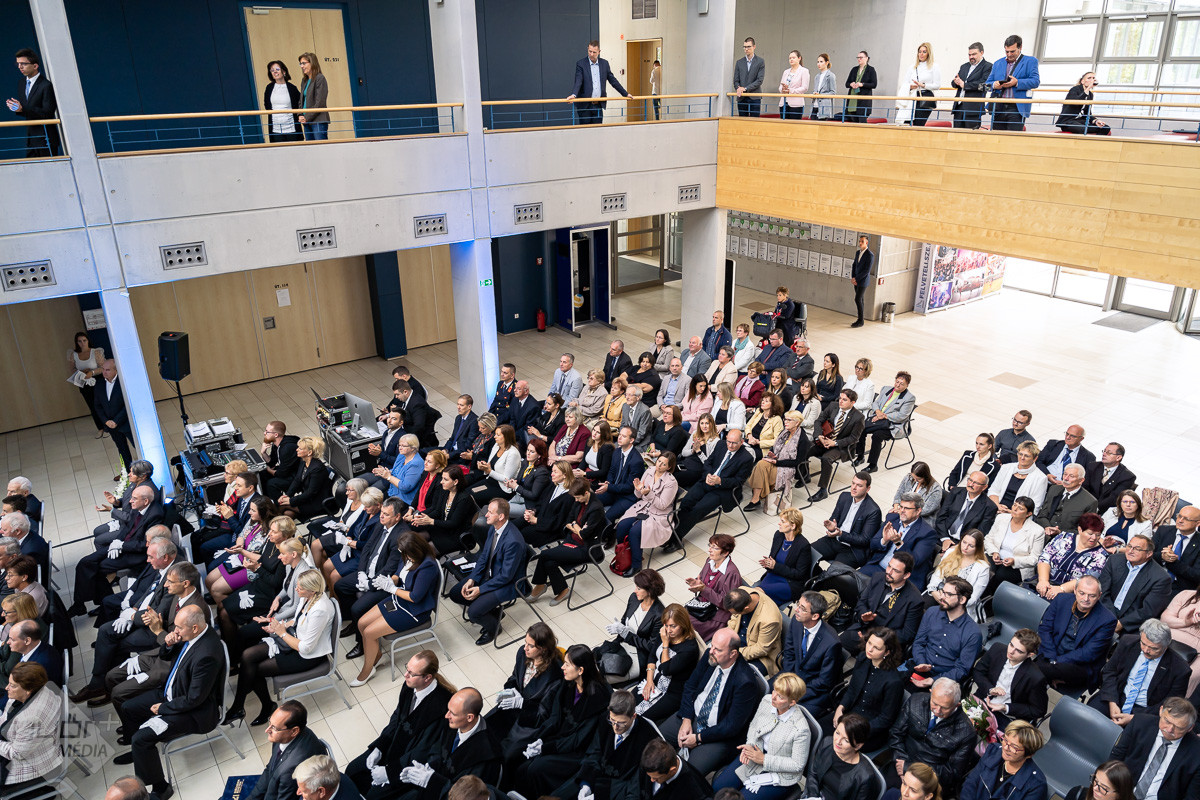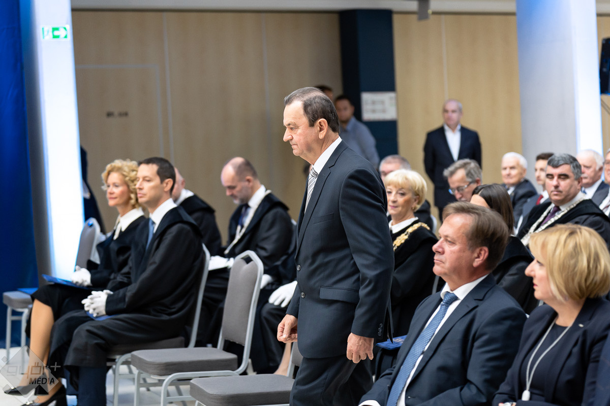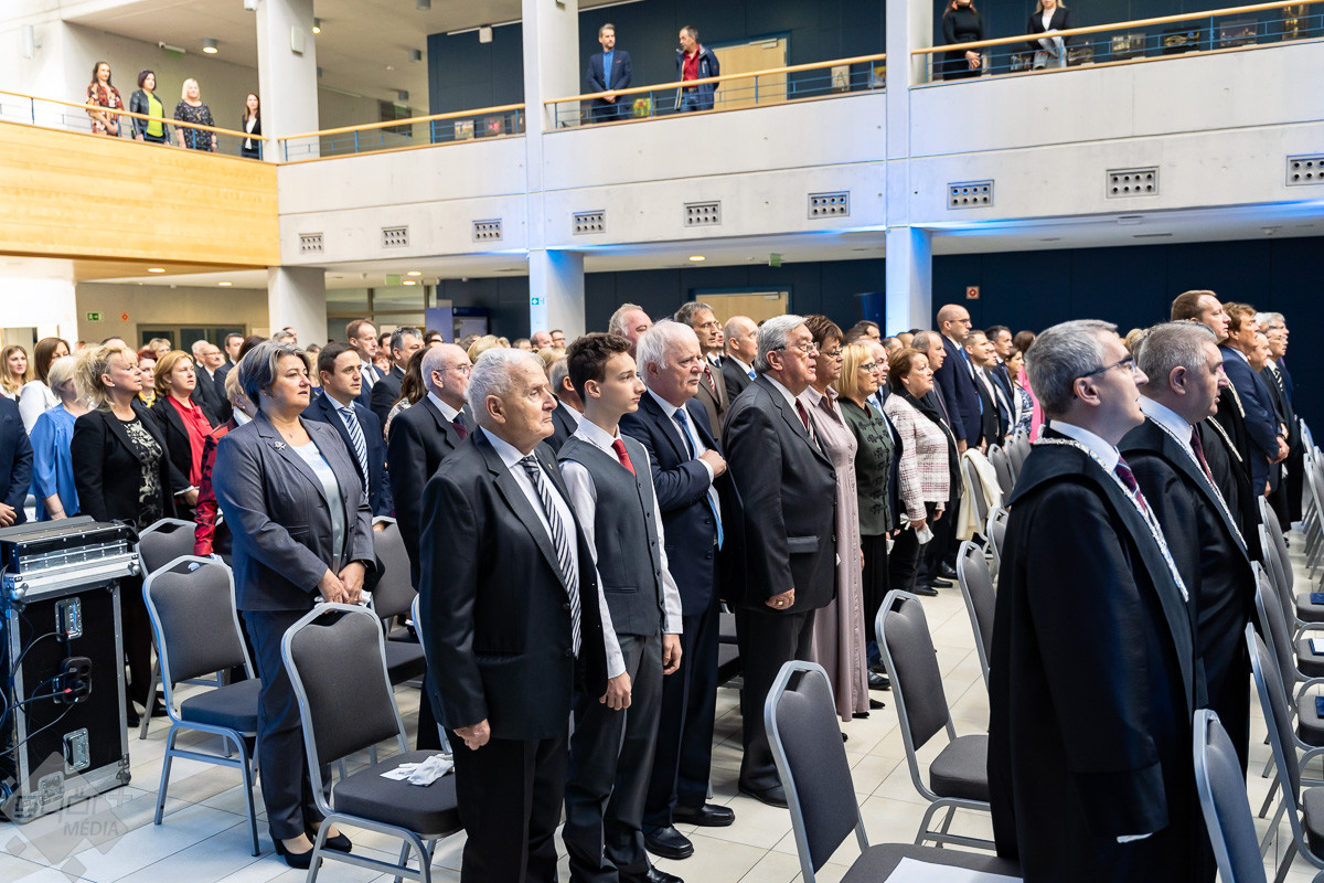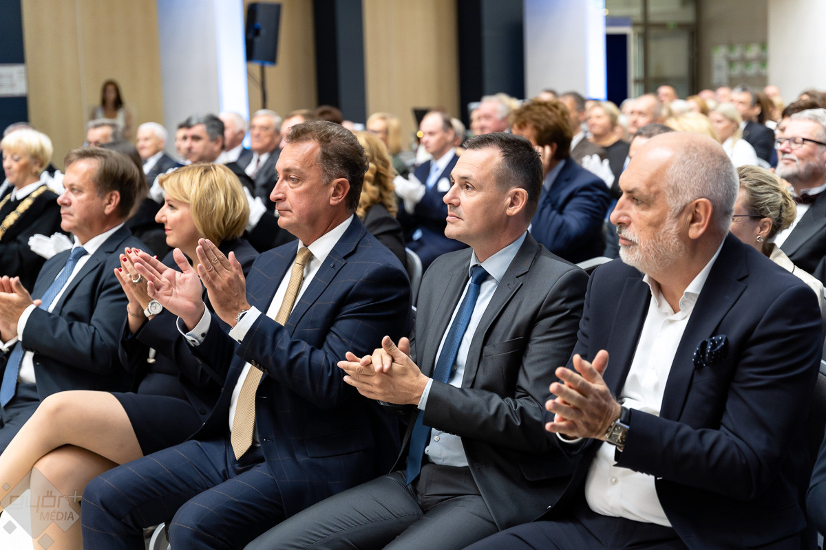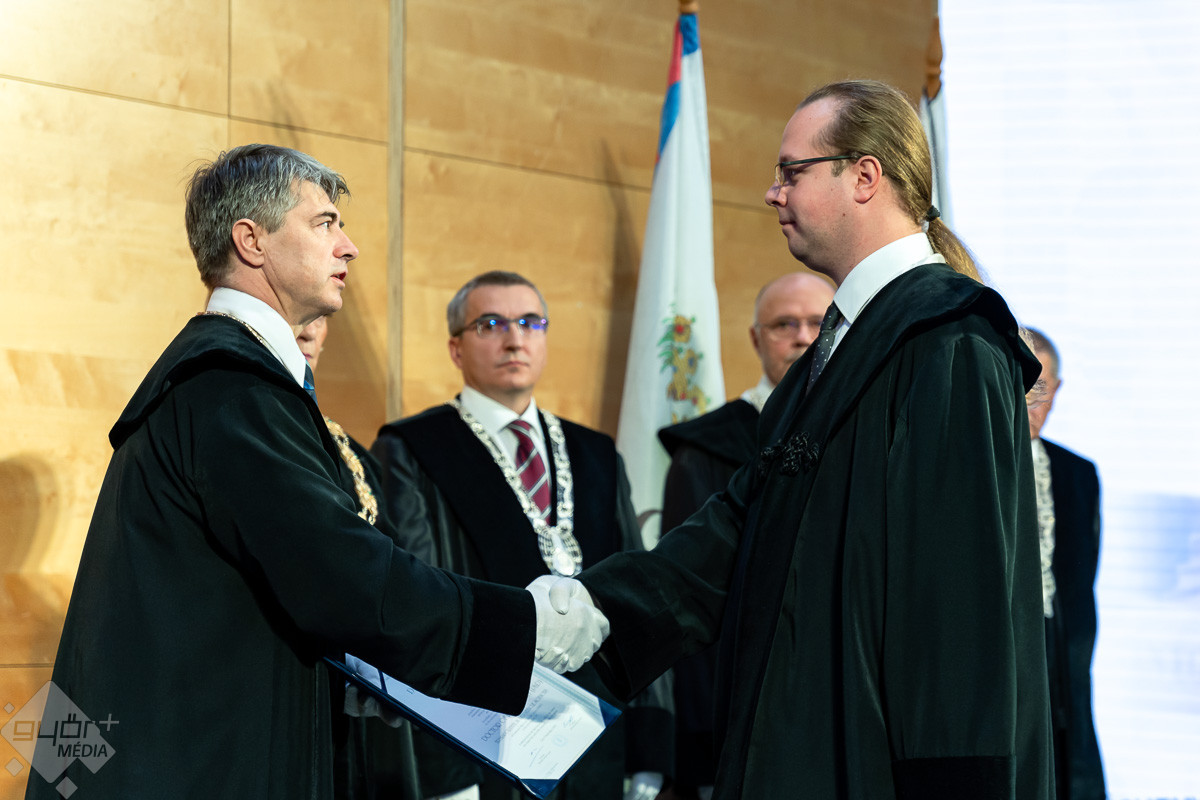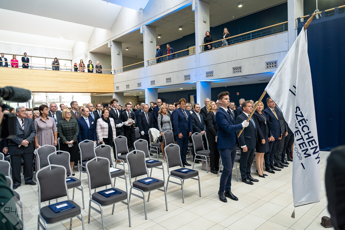 A közel három évtizedes hagyomány az idén is folytatódott, a keddi jeles esemény az egyetem szenátusának ünnepi nyilvános ülésével vette kezdetét a győri campuson. Fanfárok kíséretében, a zászlóvivő és a paedumhordozók felvezetésével vonult be az elnökség. Az ünnepségen a doktorrá avatásukra váró hallgatók mellett az intézmény legrangosabb elismeréseinek várományosai, a nyugdíjba vonuló munkatársak, egyetemi polgárok és az intézménnyel együttműködésben dolgozók egyaránt megjelentek.