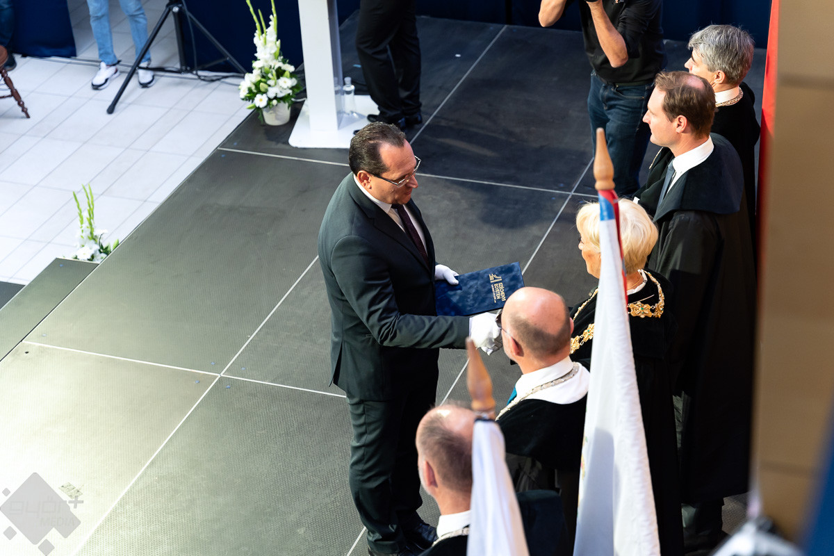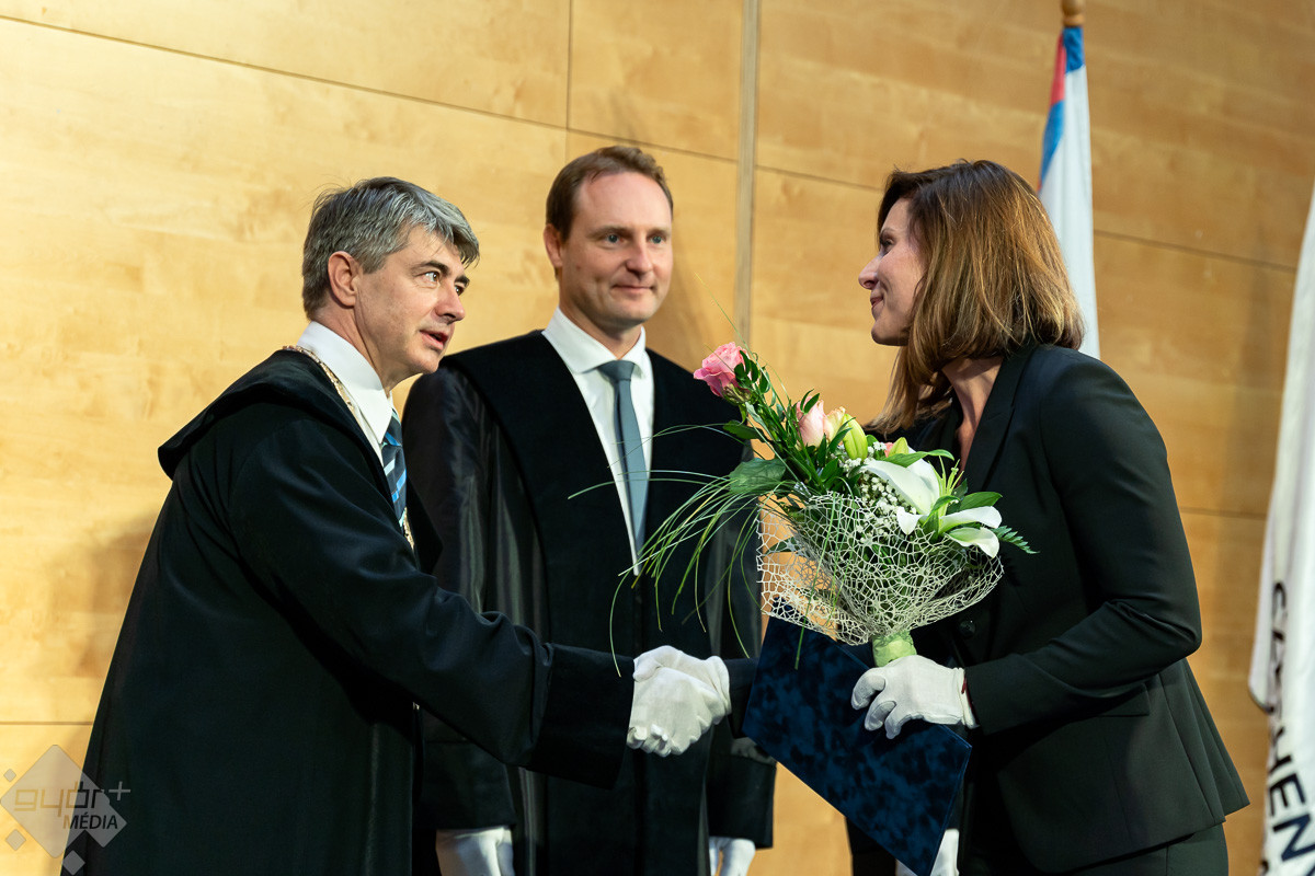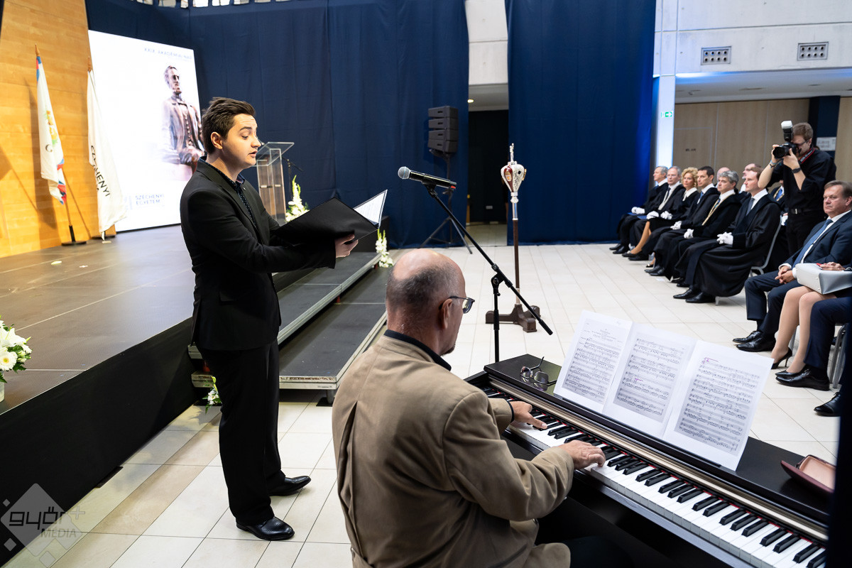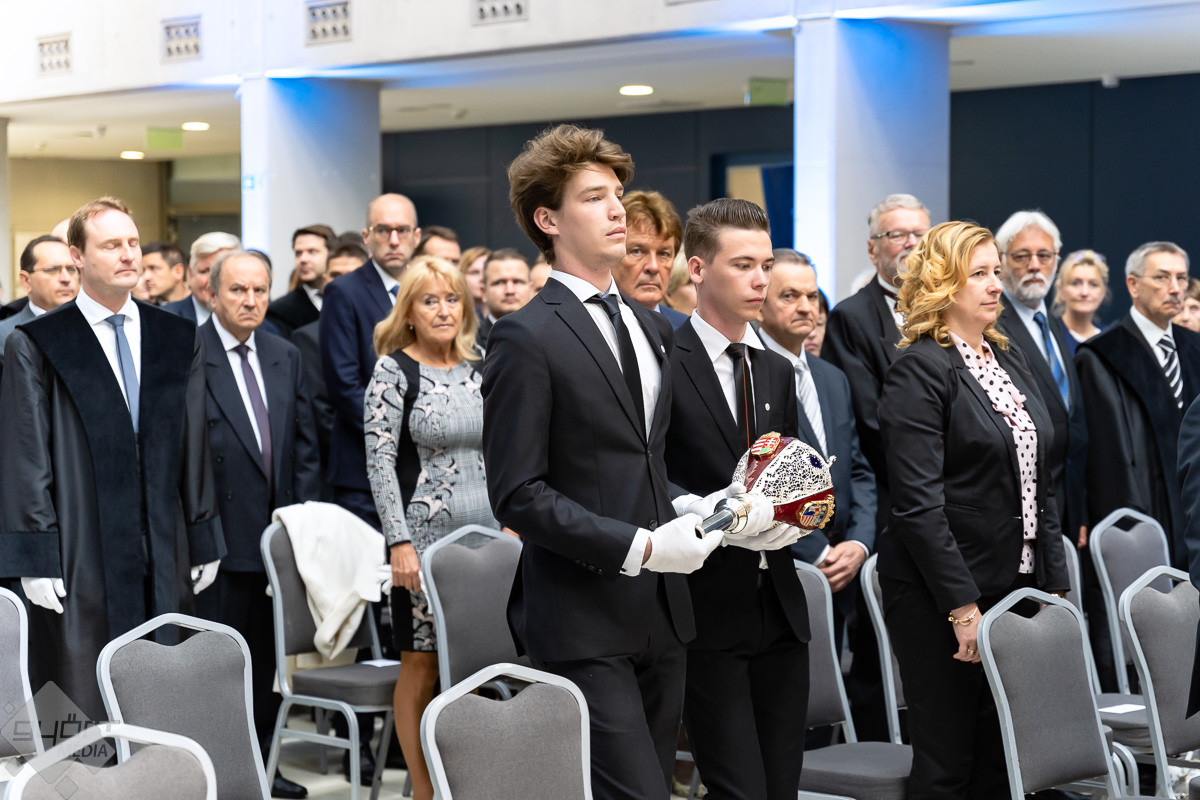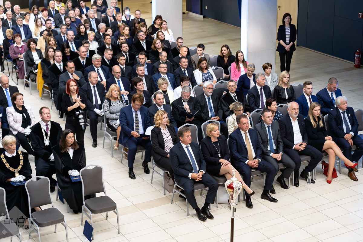 A közel három évtizedes hagyomány az idén is folytatódott, a keddi jeles esemény az egyetem szenátusának ünnepi nyilvános ülésével vette kezdetét a győri campuson. Fanfárok kíséretében, a zászlóvivő és a paedumhordozók felvezetésével vonult be az elnökség. Az ünnepségen a doktorrá avatásukra váró hallgatók mellett az intézmény legrangosabb elismeréseinek várományosai, a nyugdíjba vonuló munkatársak, egyetemi polgárok és az intézménnyel együttműködésben dolgozók egyaránt megjelentek.