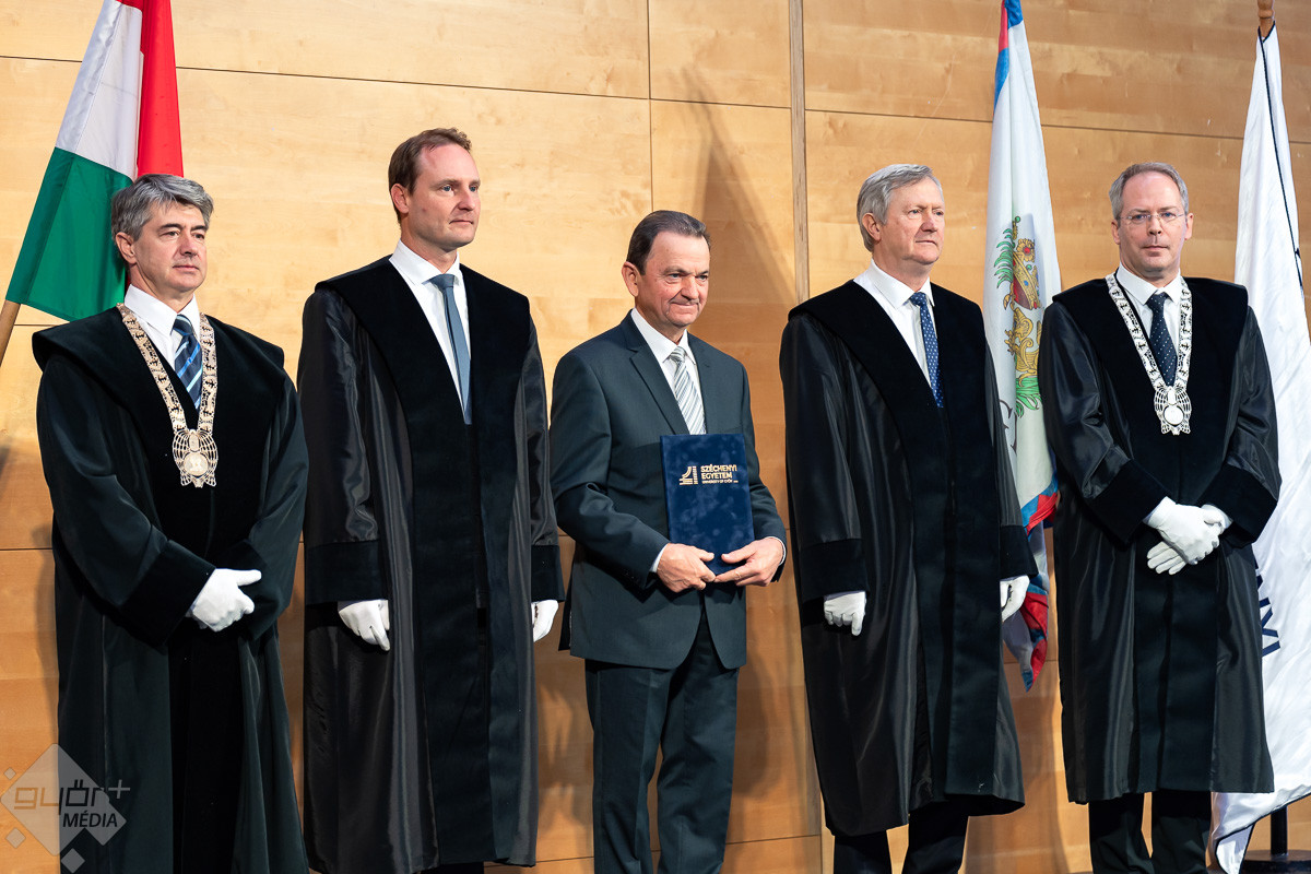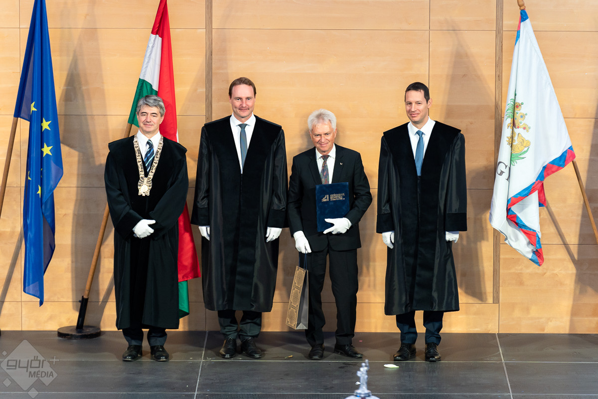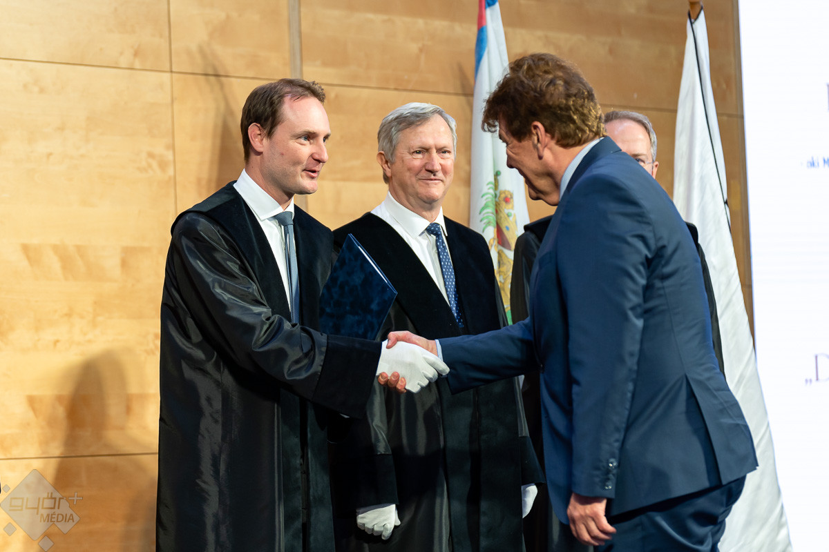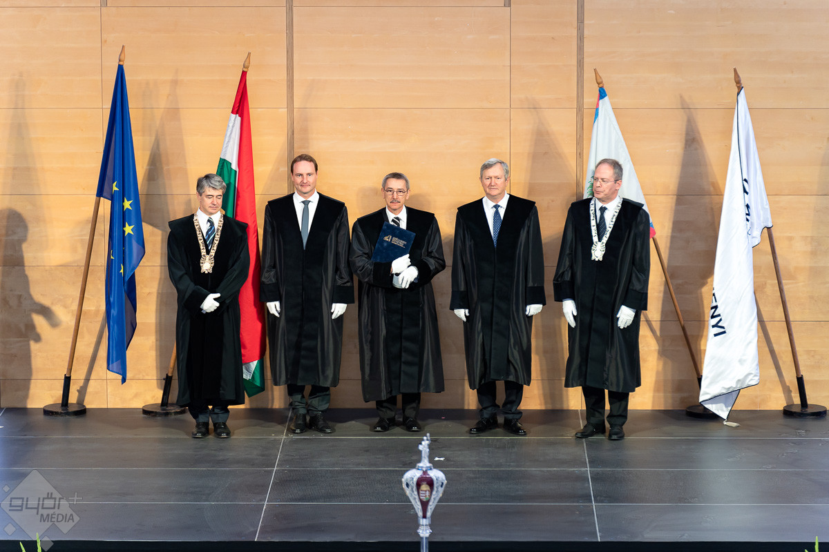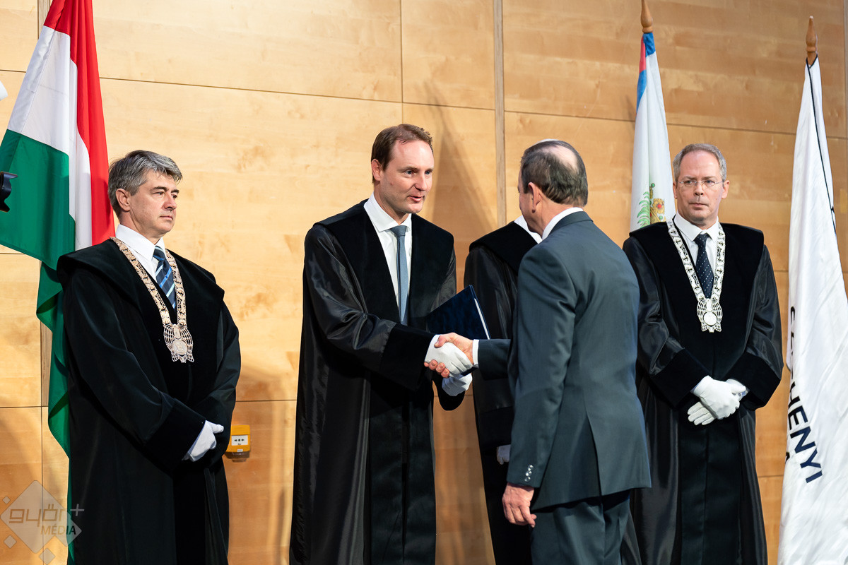 A Széchenyi István Egyetem tiszteletbeli doktori címmel ismerte el dr. Miszlivetz Ferenc professzor több évtizedes szakmai, kutatói munkáját, amelyet a térségi felsőoktatás fejlesztése, az intézmények közötti együttműködés erősítése, a tudományos teljesítmény láthatóvá tétele érdekében fejtett ki. Dr. Veisz Ottó akadémikus, „óvári gazdász” a klímaváltozékonyság kedvezőtlen hatásainak csökkentését elméleti és gyakorlati oldalról megközelítő, az adaptáció lehetőségeit vizsgáló, a növényi rezisztenciát középpontba állító kutatási irány prominens képviselője, aki iskolateremtő tevékenységével jelentősen hozzájárult szakterülete fejlődéséhez. Munkássága elismeréseként szintén tiszteletbeli doktori címmel tüntették ki. A magas rangú elismerést vehette át dr. Jiří Jaromír Klemeš is, a nemzetközi élvonalban végzett kutatásaiért, kiemelkedő nemzetközi tudományos tevékenységéért, a tudományos eredmények színvonalas publikálását lehetővé tevő nemzetközi szervezet létrehozásáért, a modern technológiák fejlesztéséért, valamint a magyar felsőoktatás nemzetközi elismertetésével kapcsolatos tevékenységéért.