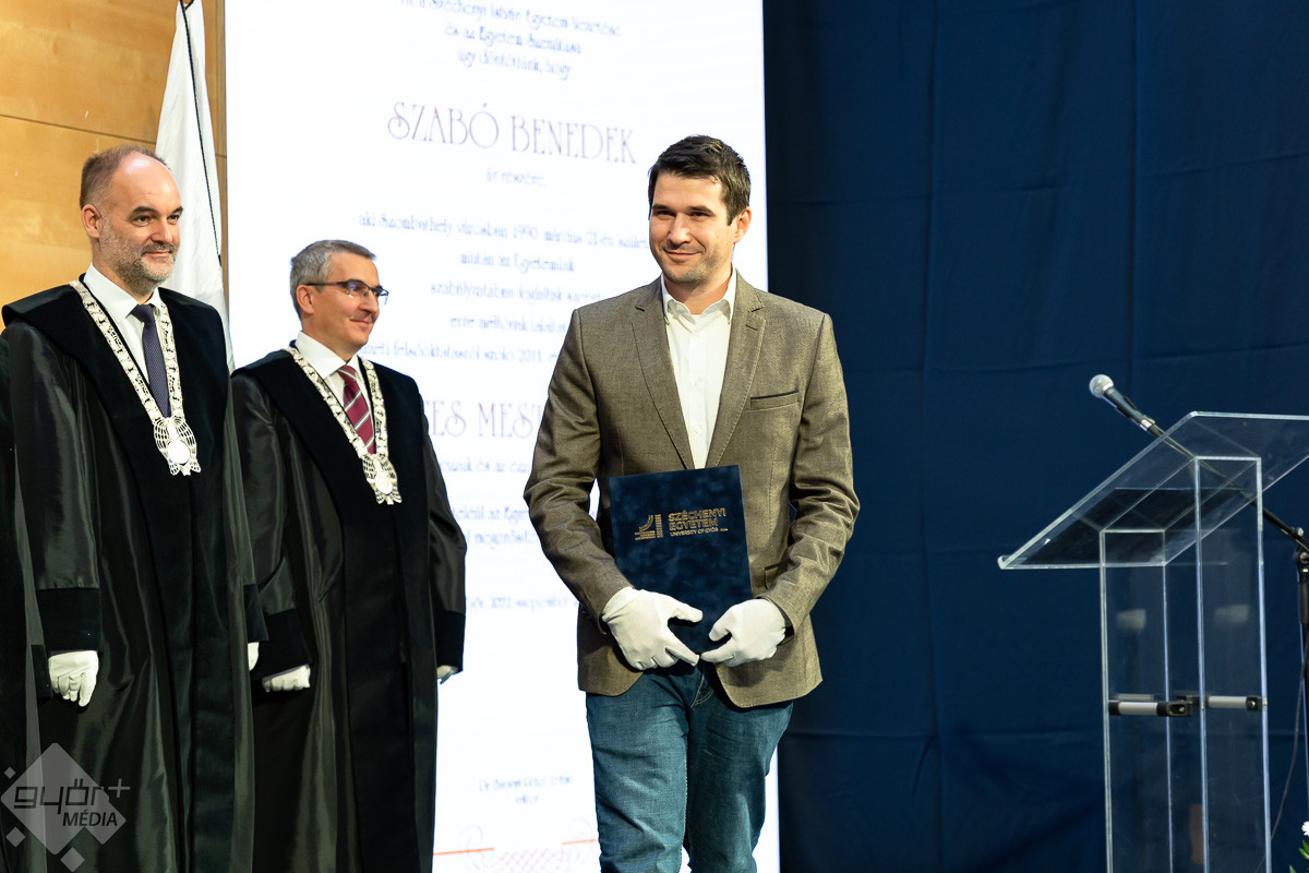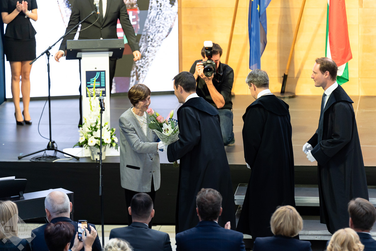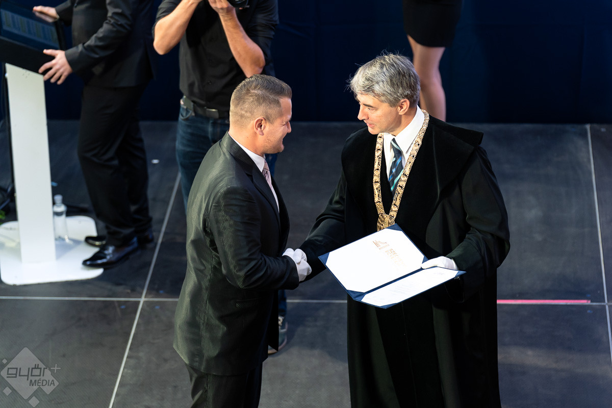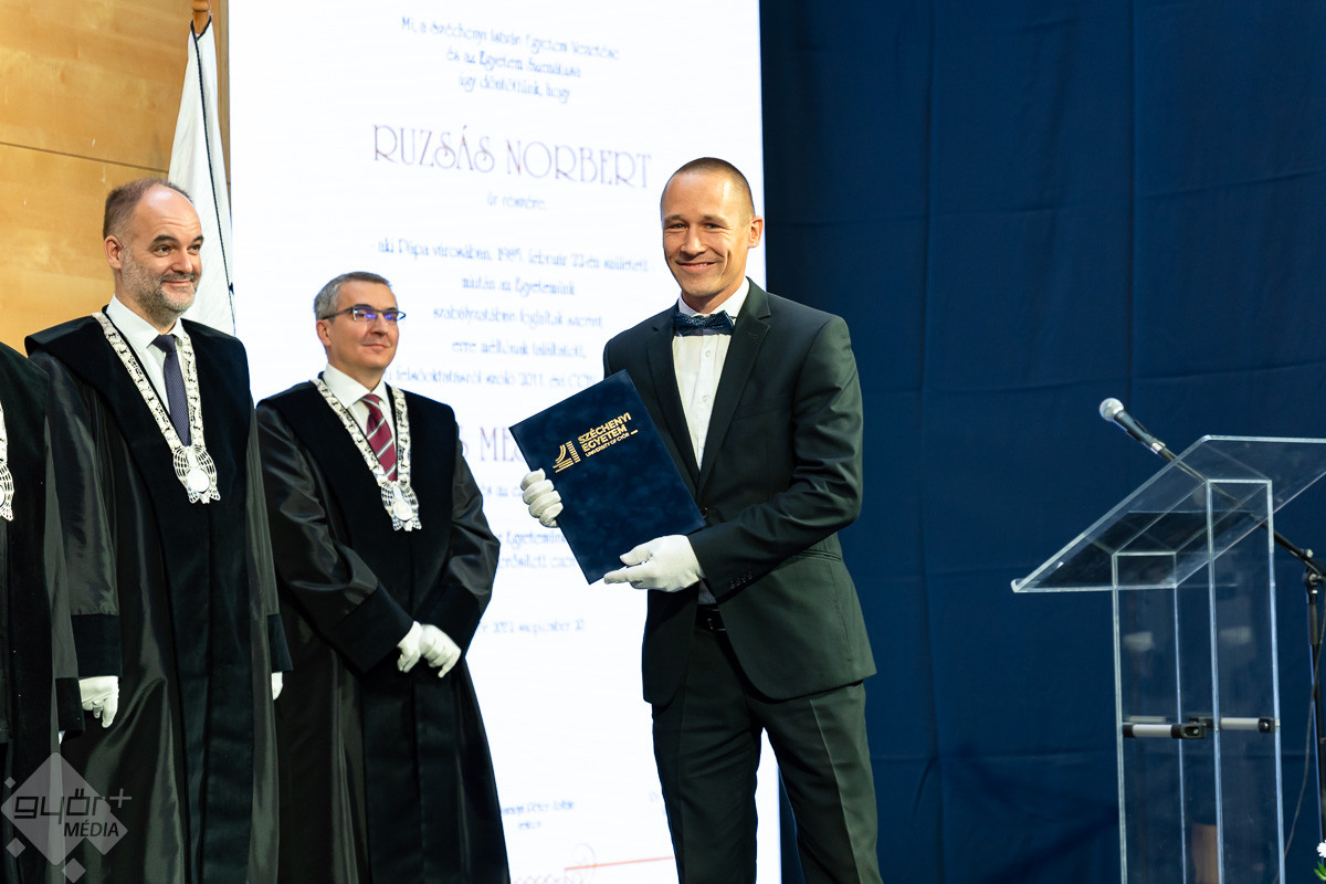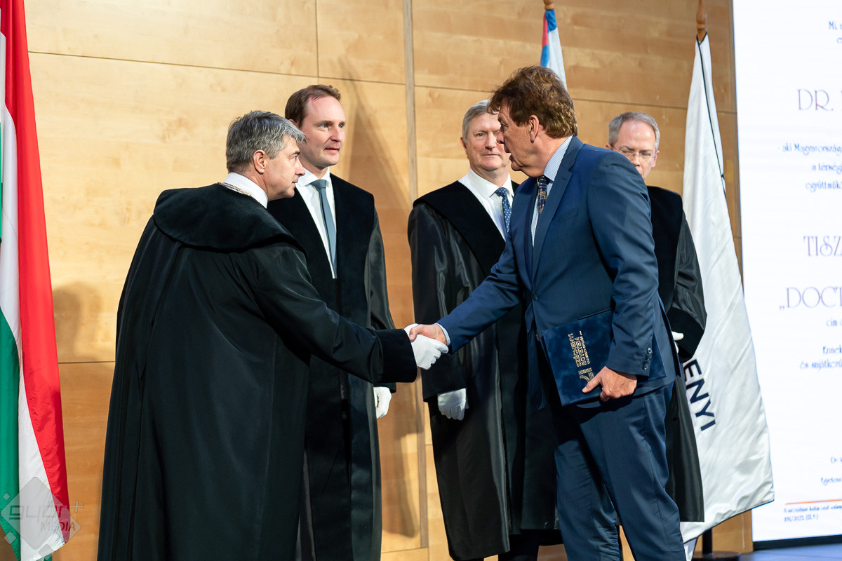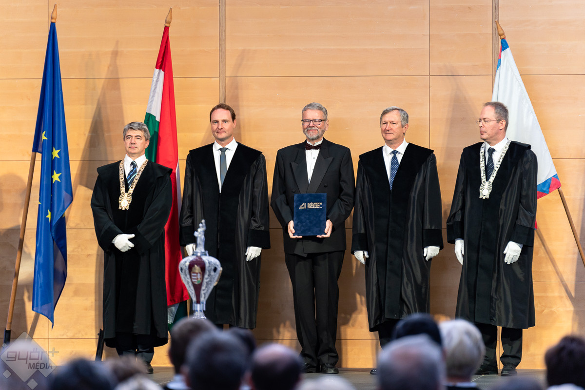 A Széchenyi István Egyetem tiszteletbeli doktori címmel ismerte el dr. Miszlivetz Ferenc professzor több évtizedes szakmai, kutatói munkáját, amelyet a térségi felsőoktatás fejlesztése, az intézmények közötti együttműködés erősítése, a tudományos teljesítmény láthatóvá tétele érdekében fejtett ki. Dr. Veisz Ottó akadémikus, „óvári gazdász” a klímaváltozékonyság kedvezőtlen hatásainak csökkentését elméleti és gyakorlati oldalról megközelítő, az adaptáció lehetőségeit vizsgáló, a növényi rezisztenciát középpontba állító kutatási irány prominens képviselője, aki iskolateremtő tevékenységével jelentősen hozzájárult szakterülete fejlődéséhez. Munkássága elismeréseként szintén tiszteletbeli doktori címmel tüntették ki. A magas rangú elismerést vehette át dr. Jiří Jaromír Klemeš is, a nemzetközi élvonalban végzett kutatásaiért, kiemelkedő nemzetközi tudományos tevékenységéért, a tudományos eredmények színvonalas publikálását lehetővé tevő nemzetközi szervezet létrehozásáért, a modern technológiák fejlesztéséért, valamint a magyar felsőoktatás nemzetközi elismertetésével kapcsolatos tevékenységéért.
