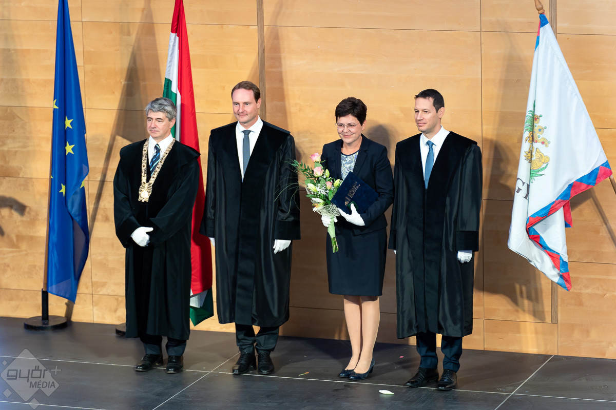 A Széchenyi István Egyetem Érdemes Polgára kitüntetésben részesült dr. Papp Ilona egyetemi docens, a Kautz Gyula Gazdaságtudományi Kar korábbi dékánja, Csikorné Horváth Gabriella, az Integritásért Felelős Igazgatóság igazgatója, Ruppert István egyetemi tanár, a Művészeti Kar korábbi dékánja és dr. Vásárhelyi Zsuzsanna főiskolai tanár, a Mérnöktanár Tanszék korábbi tanszékvezetője.