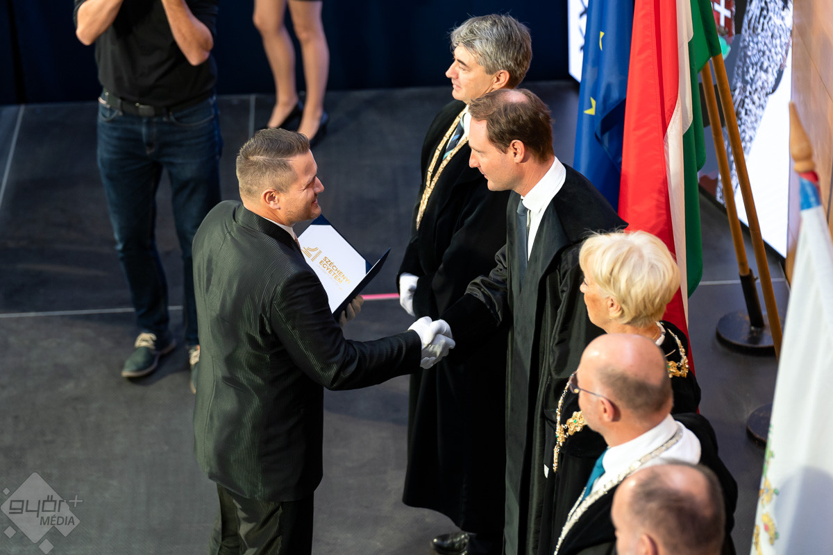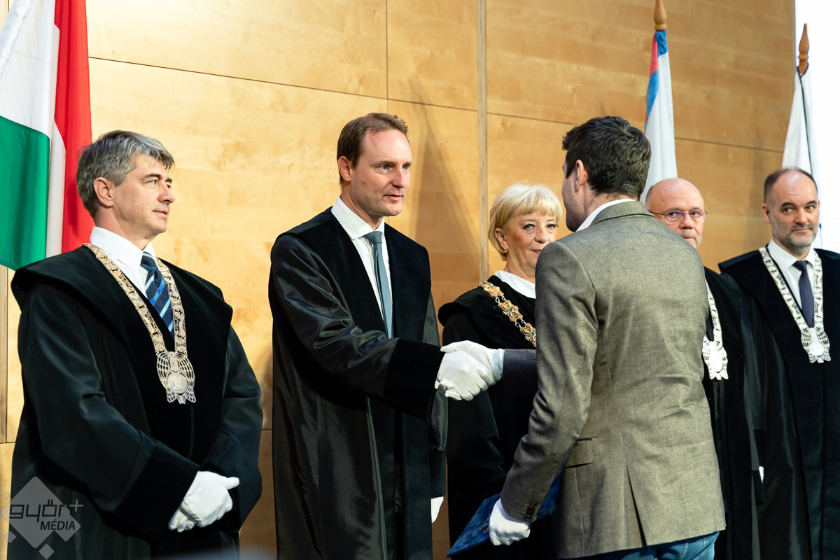 A Pro Scientia Arraboniensis kitüntetést kimagasló tudományos tevékenységért, értékes, kiemelkedő eredmény, tevékenység elismeréseként adományozta az intézmény Szabó Ferencnek, a Művészeti Kar művésztanárának, a Győri Symphonic Band karmesterének, Ménesi Gergelynek, a Művészeti Kar egyetemi docensének, a Győr Egyetemi Zenekar karmesterének, valamint dr. Fullér Róbertnek, a Gépészmérnöki, Informatikai és Villamosmérnöki Kar egyetemi tanárának, az Egyetemi Habilitációs Bizottság elnökének.