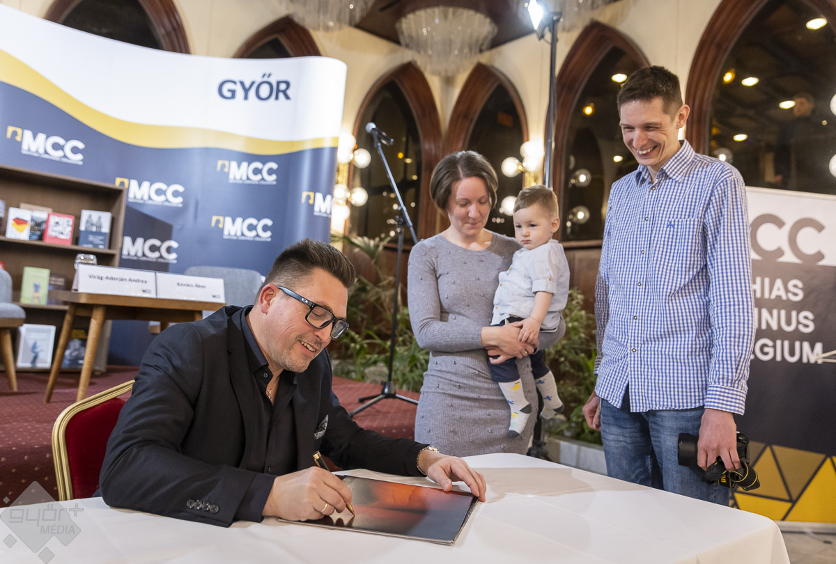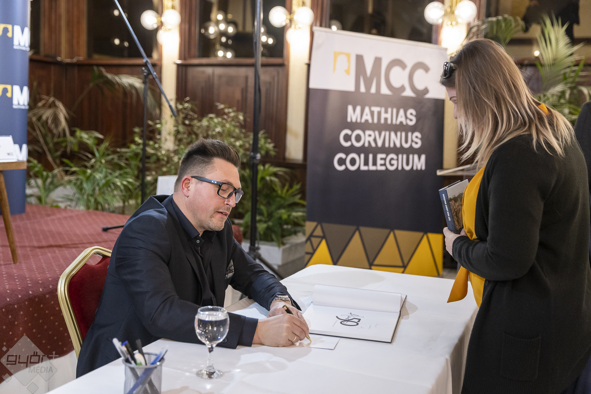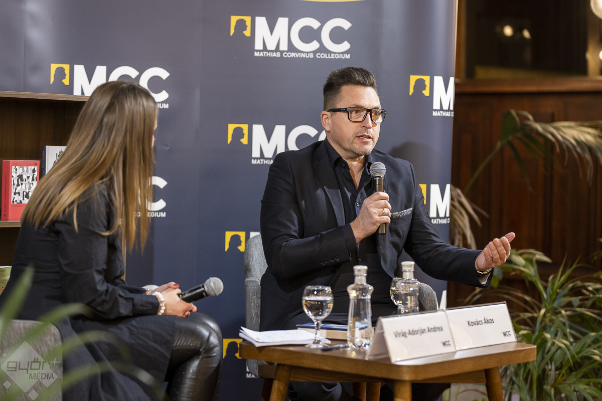 ,,A Mathias Corvinus Collegium egy igazi tudásközponttá nőtte ki magát az elmúlt időszakban. Nagyon komoly országos terjeszkedésen vagyunk túl. Az általános iskolától az egyetemi korosztályig kínálunk tehetséggondozó programokat hazánk, illetve a Kárpát-medence legtehetségesebb diákjainak. Emellett azon is dolgoztunk az elmúlt időszakban, hogy ezt a tudásközponti szerepet egy saját kiadóval erősítsük meg. Örömmel jelenthetem, hogy már Győrben is nagyon sok könyv bemutatójára került sor, amely az MCC Press kiadó gondozásában jelent meg. Kovács Ákos Kossuth-díjas művész novelláskötetét is az MCC adta ki. Természetesen örömmel vettük azt a lehetőséget, ha már az MCC adta ki a könyvet, akkor Ákos személyesen is eljöjjön Győrbe. Bemutatja azt az oldalát, ami talán egy picit kevesebben ismernek, mint az énekesi karrierjét” – jelentette ki dr. Fekete Dávid.
