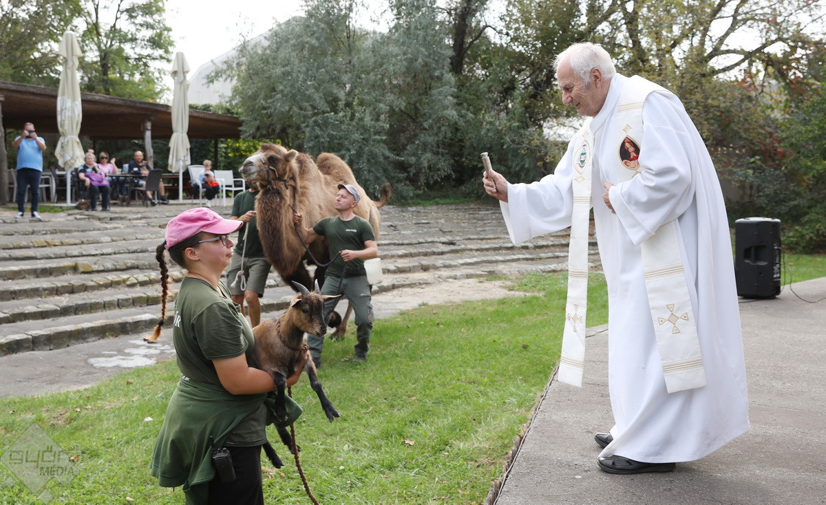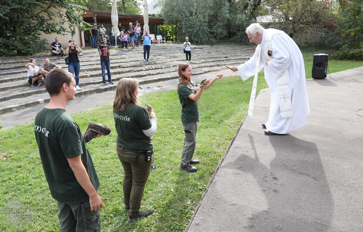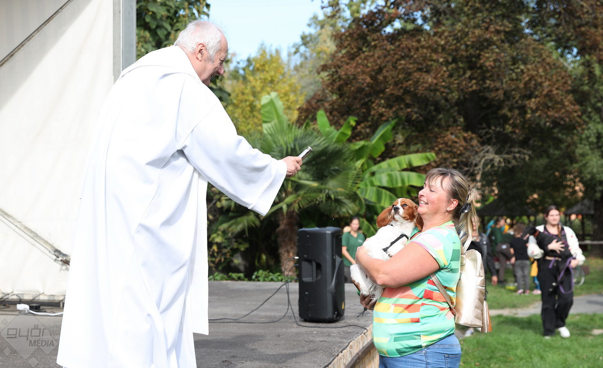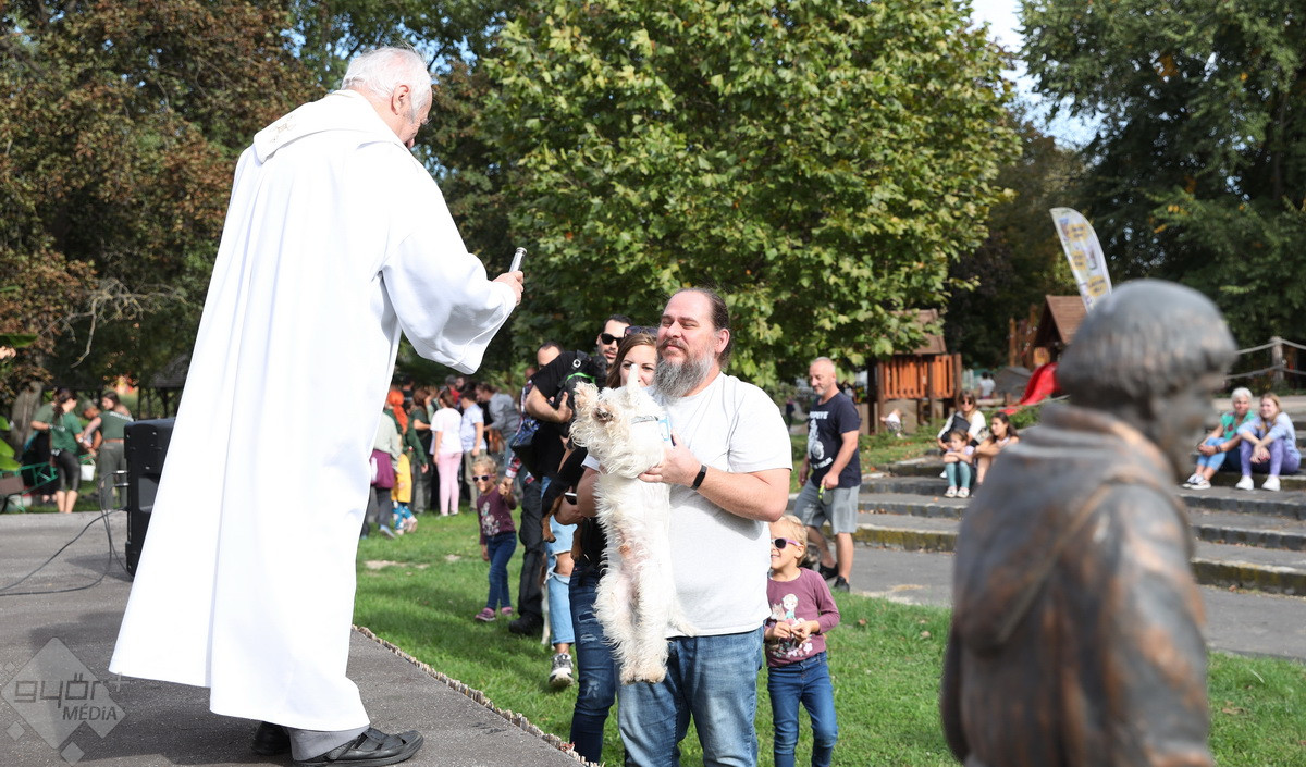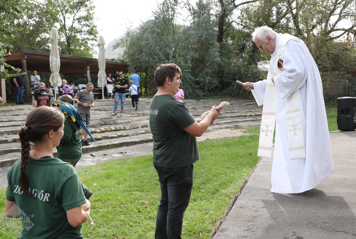 “Szent Ferenc Napi Állatáldás van ma nálunk. A katolikus egyház részéről érkezett pap megáldja az állatpark lakóit, ezt követően pedig, mivel ez az egyetlen olyan nap az évben, amikor a háziállatokat, tehát kutyákat és macskákat is be lehet hozni, megáldják a házi kedvenceket is. Rengetegen jöttek el idén is kimondottan erre a programra”– tájékoztatta a Győr+ Médiát Wenczel Flóra, az állatkert zoopedagógusa.