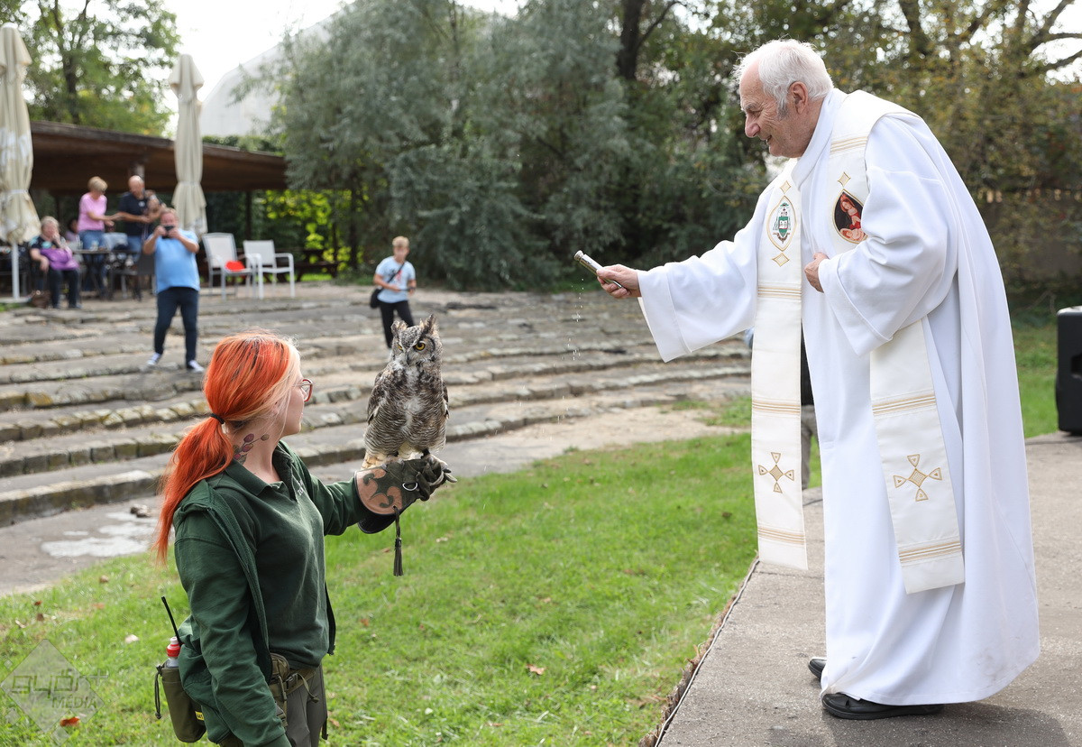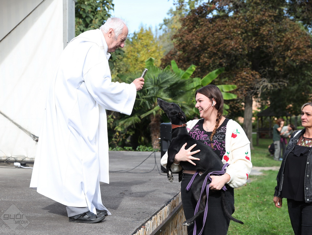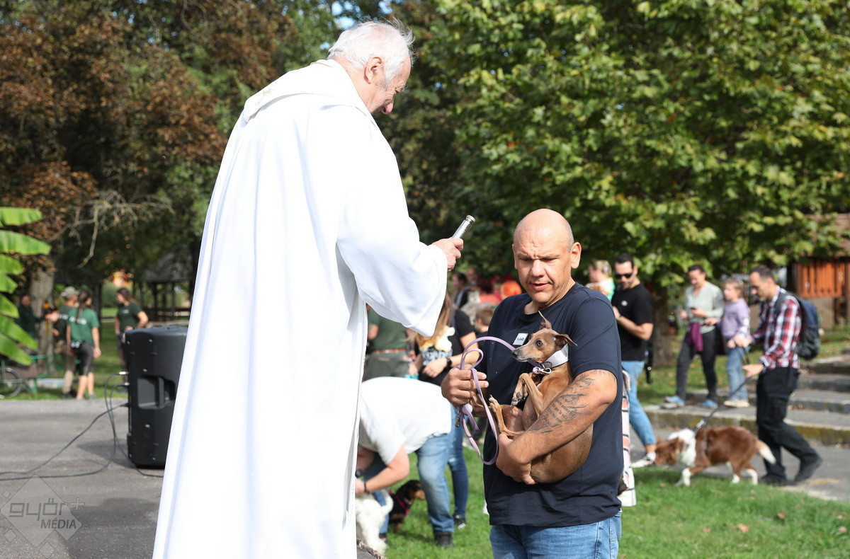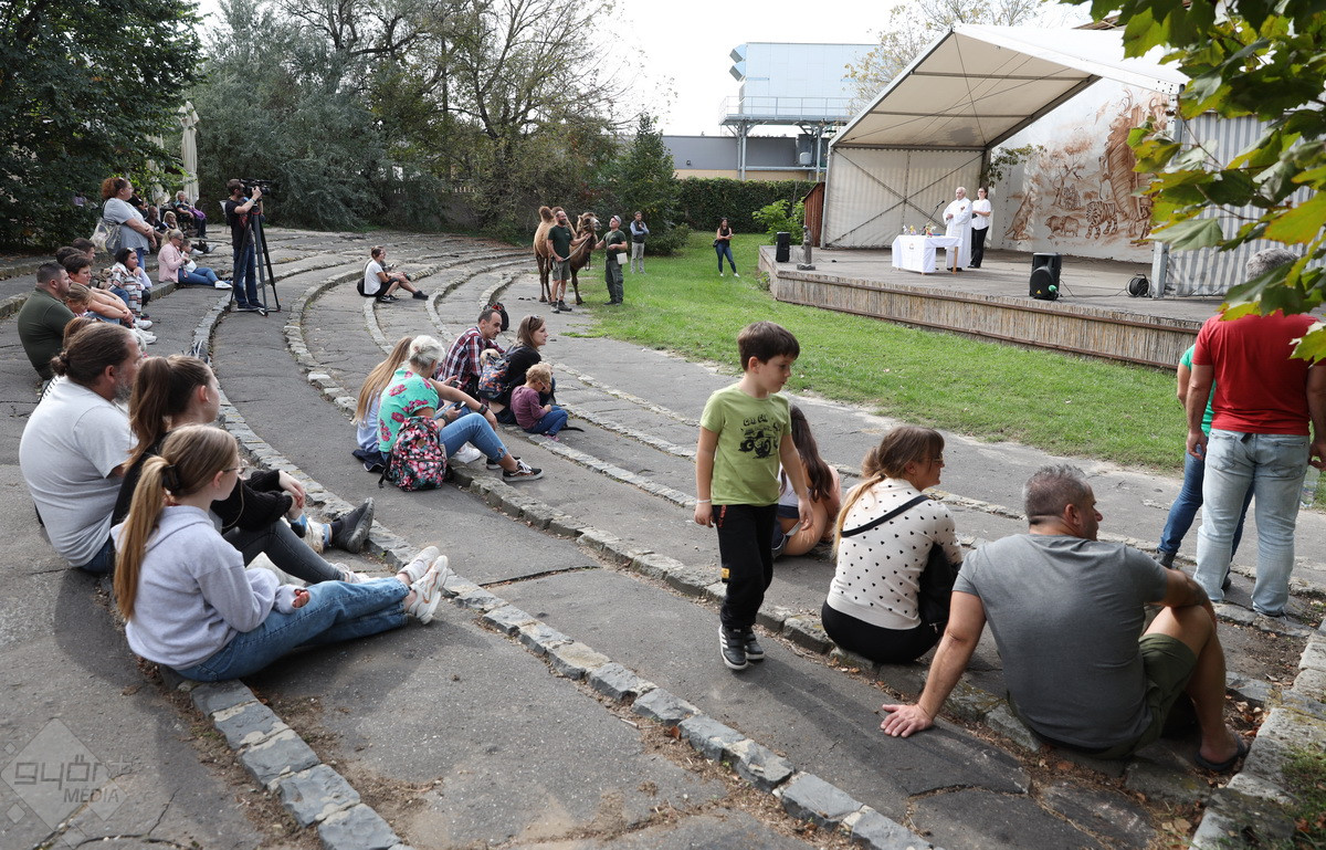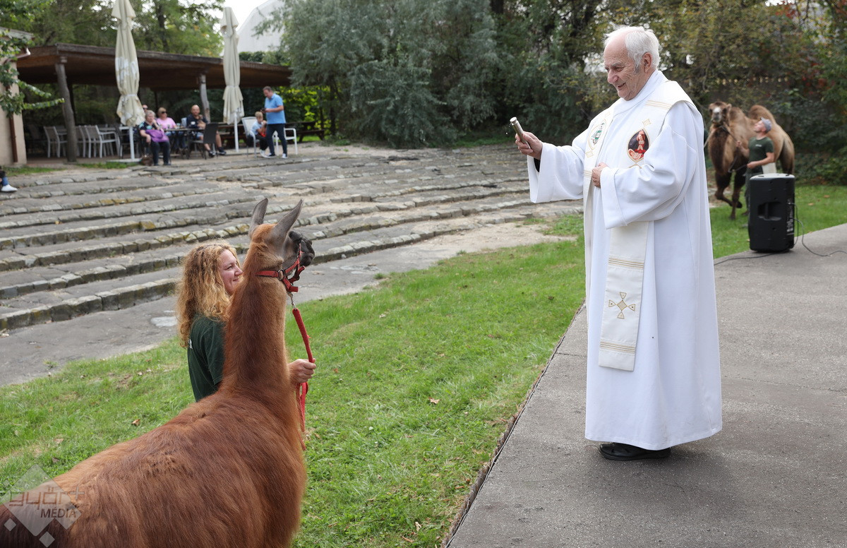 “Szent Ferenc Napi Állatáldás van ma nálunk. A katolikus egyház részéről érkezett pap megáldja az állatpark lakóit, ezt követően pedig, mivel ez az egyetlen olyan nap az évben, amikor a háziállatokat, tehát kutyákat és macskákat is be lehet hozni, megáldják a házi kedvenceket is. Rengetegen jöttek el idén is kimondottan erre a programra”– tájékoztatta a Győr+ Médiát Wenczel Flóra, az állatkert zoopedagógusa.