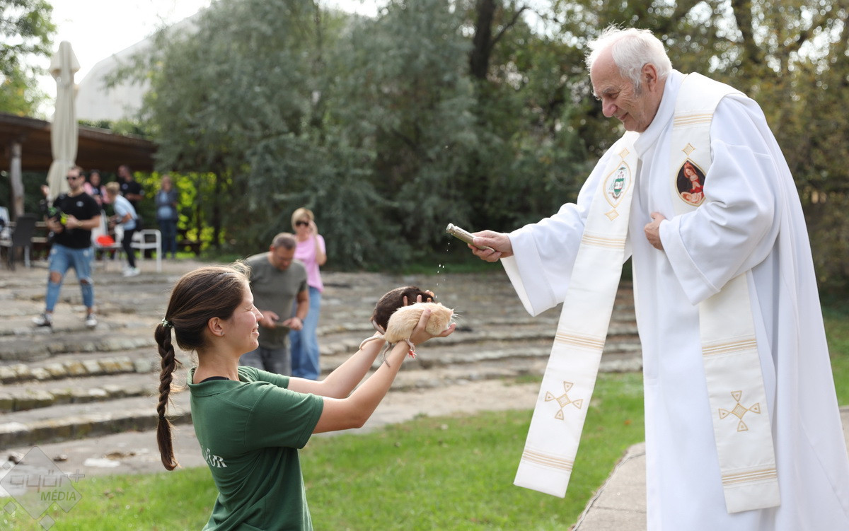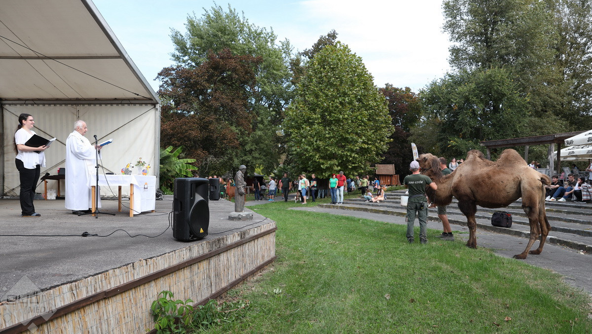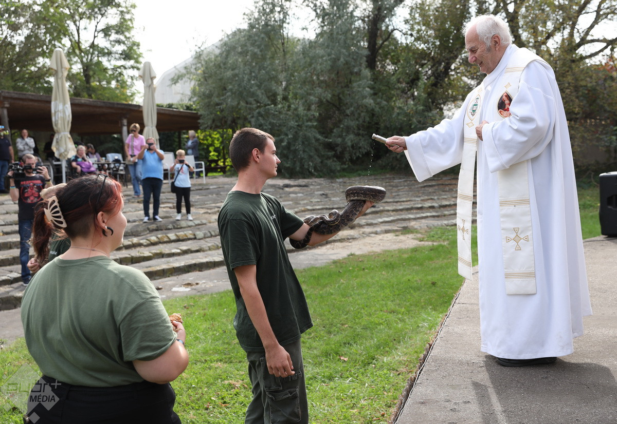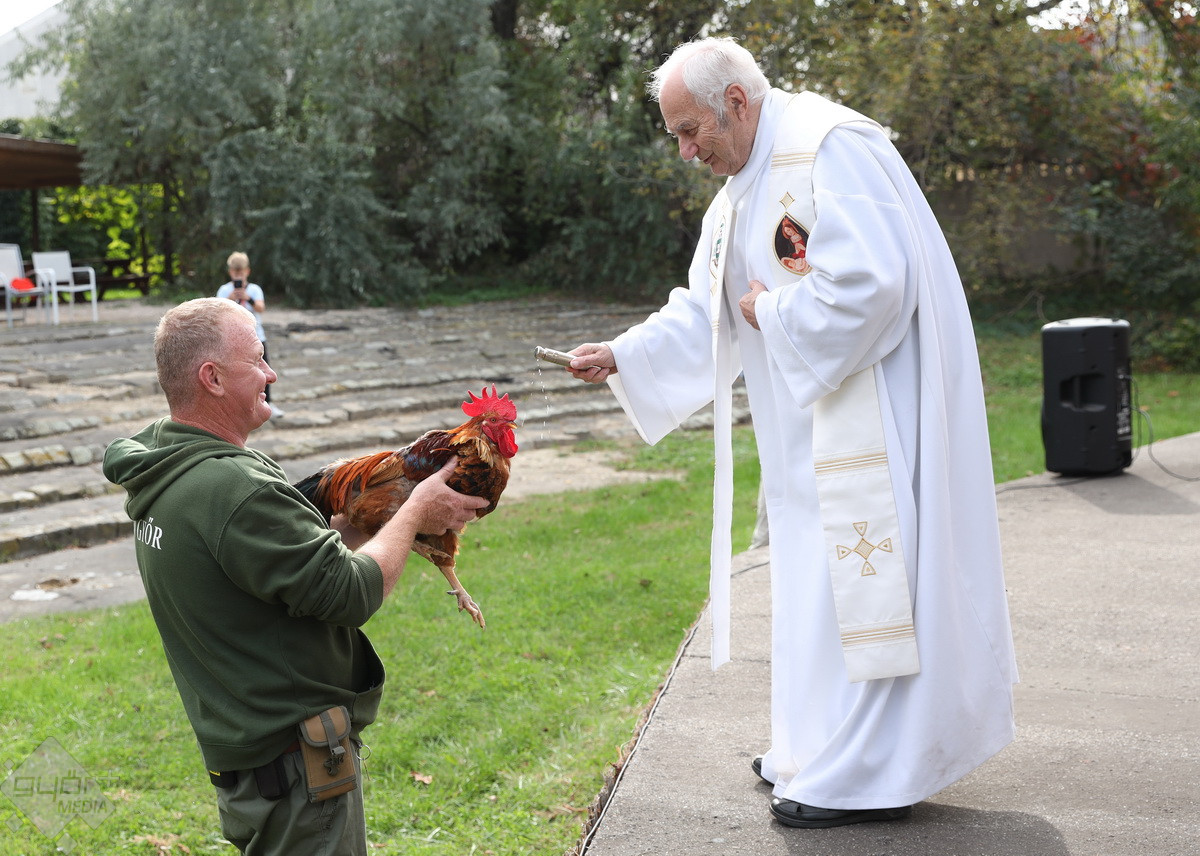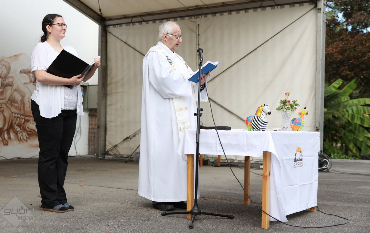“Szent Ferenc Napi Állatáldás van ma nálunk. A katolikus egyház részéről érkezett pap megáldja az állatpark lakóit, ezt követően pedig, mivel ez az egyetlen olyan nap az évben, amikor a háziállatokat, tehát kutyákat és macskákat is be lehet hozni, megáldják a házi kedvenceket is. Rengetegen jöttek el idén is kimondottan erre a programra”– tájékoztatta a Győr+ Médiát Wenczel Flóra, az állatkert zoopedagógusa.