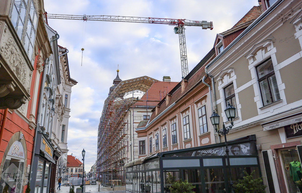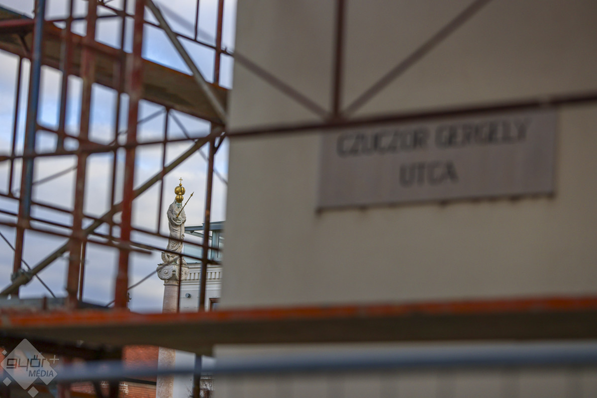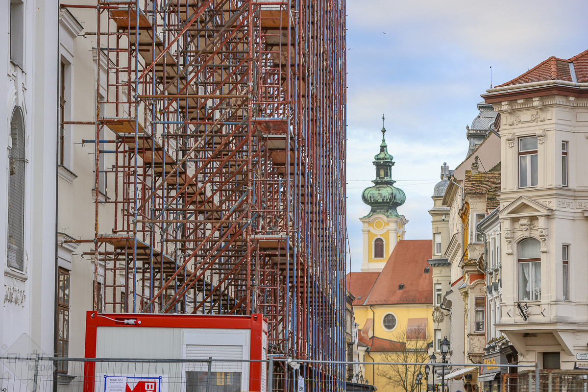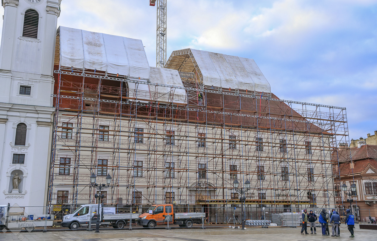 Látványos munkálatok folynak a Széchenyi téren, a bencés rendház és iskolaközpont megújítása kapcsán. A novemberben kezdődött felújítás során beépítik a rendház tetőterét és megtörténik az épületek tetőcseréje is.