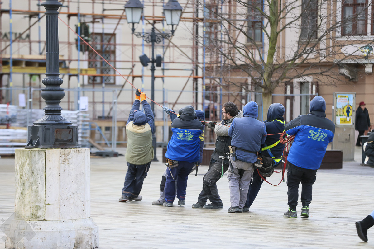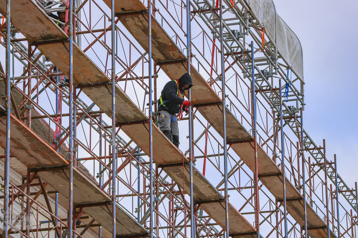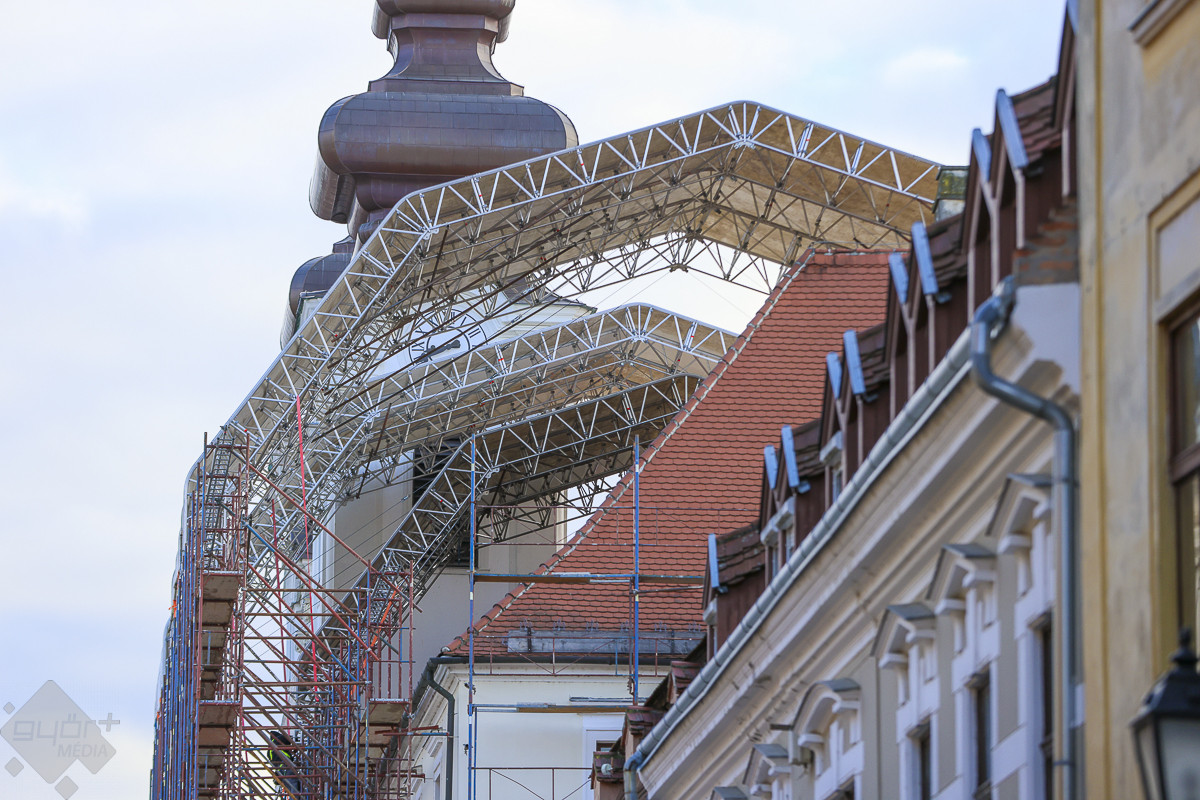Jelenleg az áltetőt helyezik fel a szakemberek, amely alatt elbontják a jelenlegi tető szerkezetet, majd beépítik a tetőteret és végül helyére kerül az új tető is.