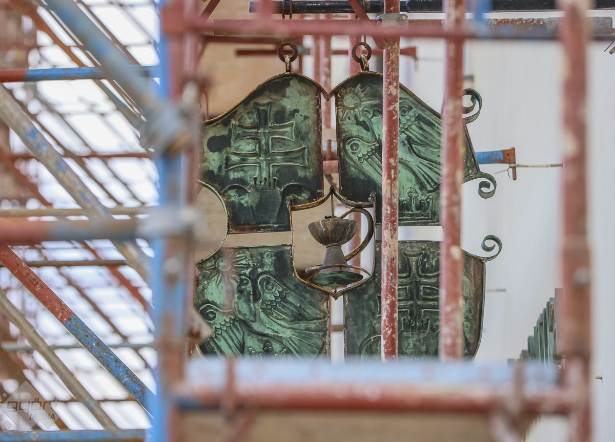 A perjel szerint érzékeny dolog ez a felújítás, ugyanis a templomtető alatt Magyarország első barokk temploma van. A megelőző munkálatok során a rendház udvarában egy vasbeton aljzatot alakítottak ki egy óriásdaru számára, amely mozgatja az anyagokat.