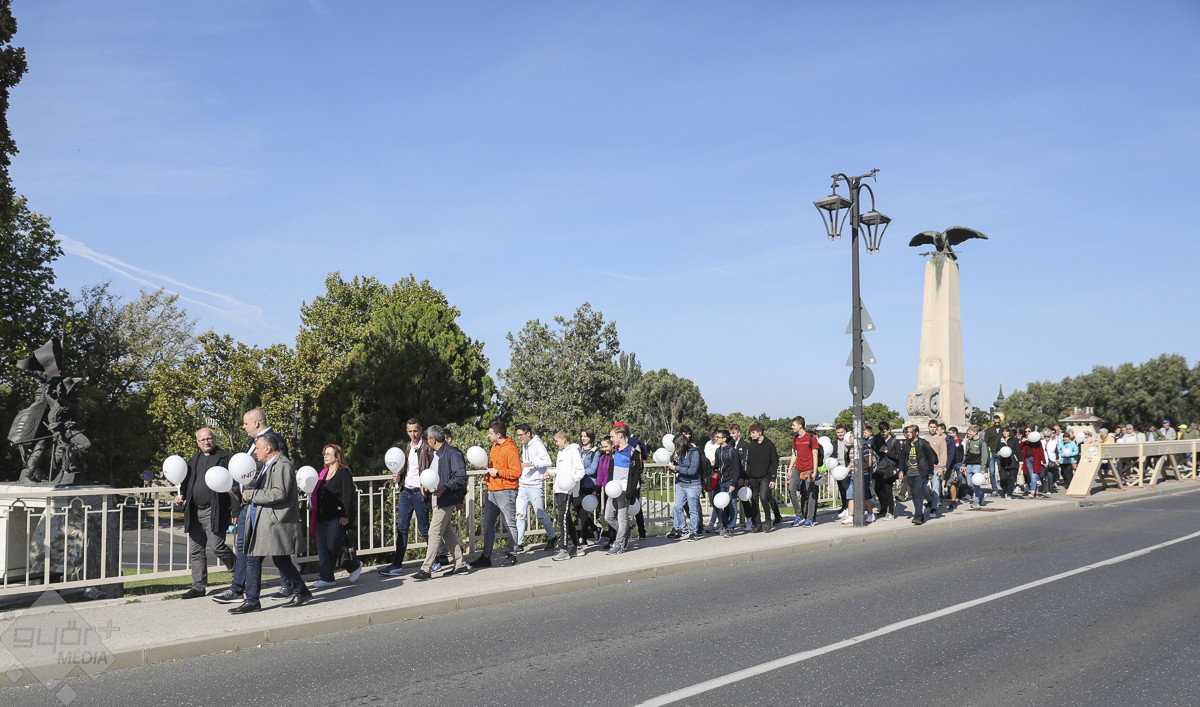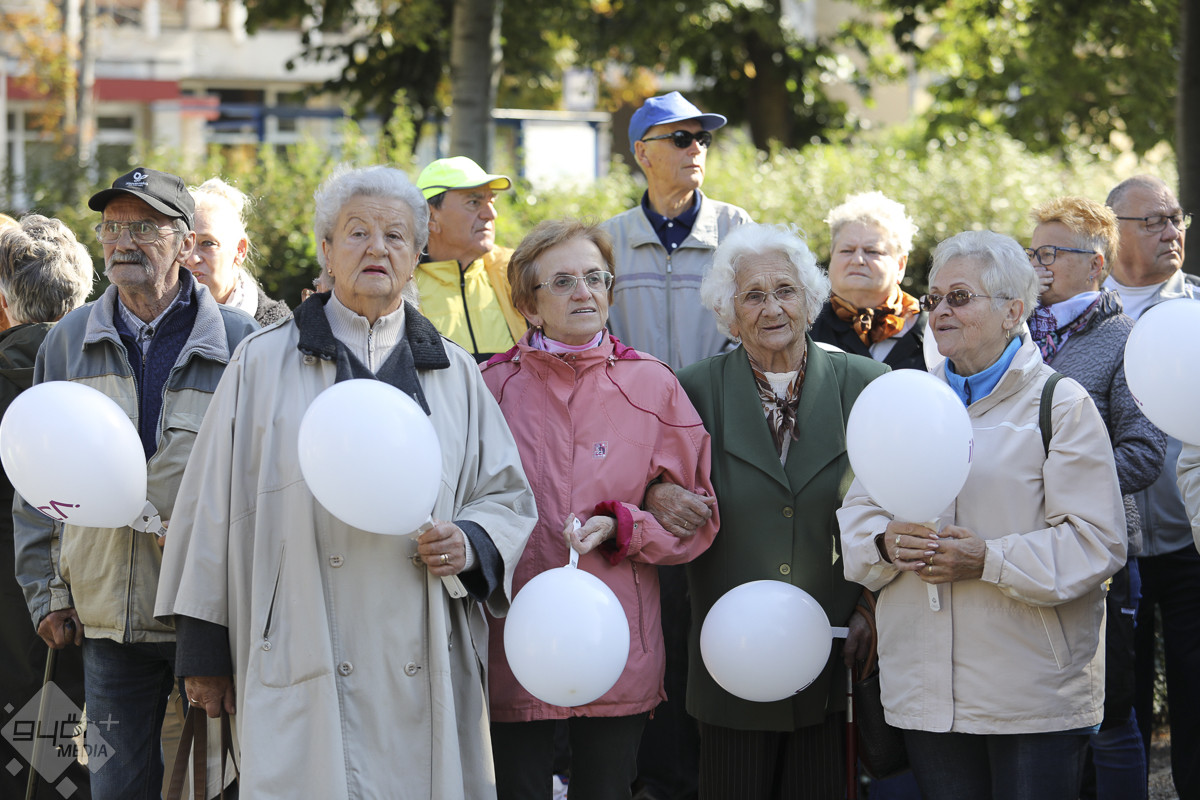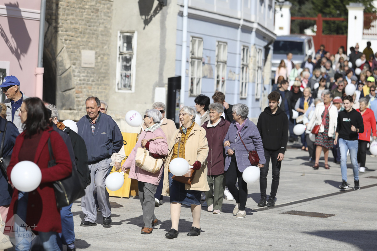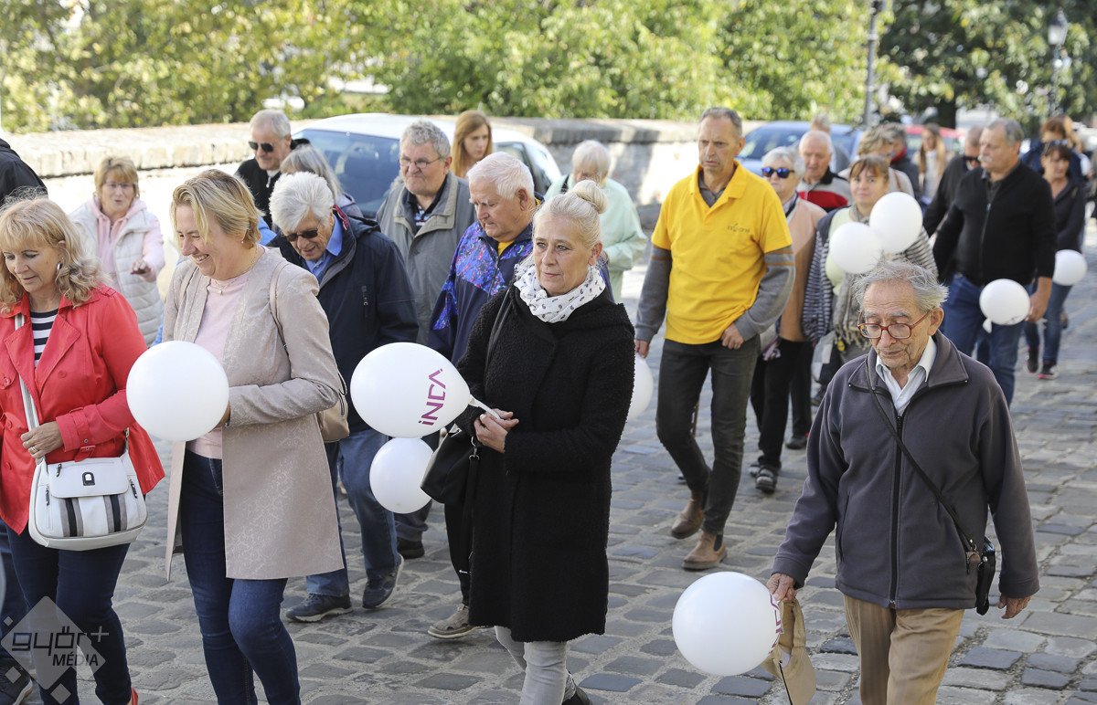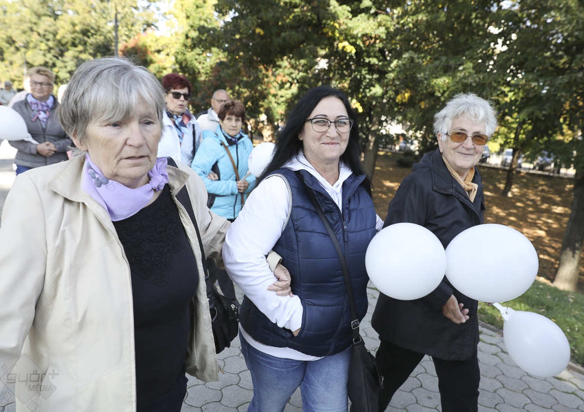 Fehér lufival a kezükben várakoztak a résztvevők a Kálóczy téren. A séta előtt elsőként Szeles Szabolcs, a város alpolgármestere köszöntötte őket.