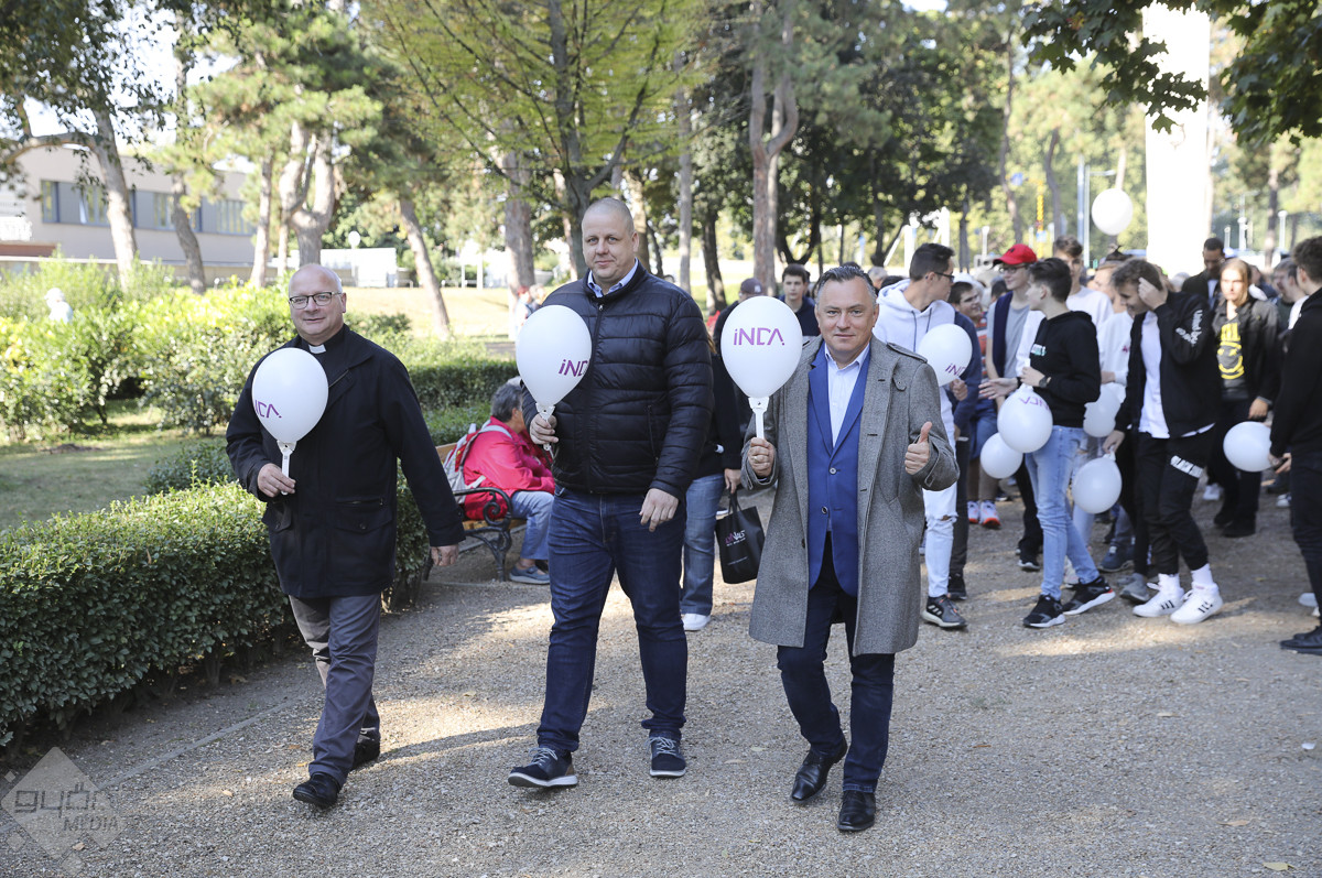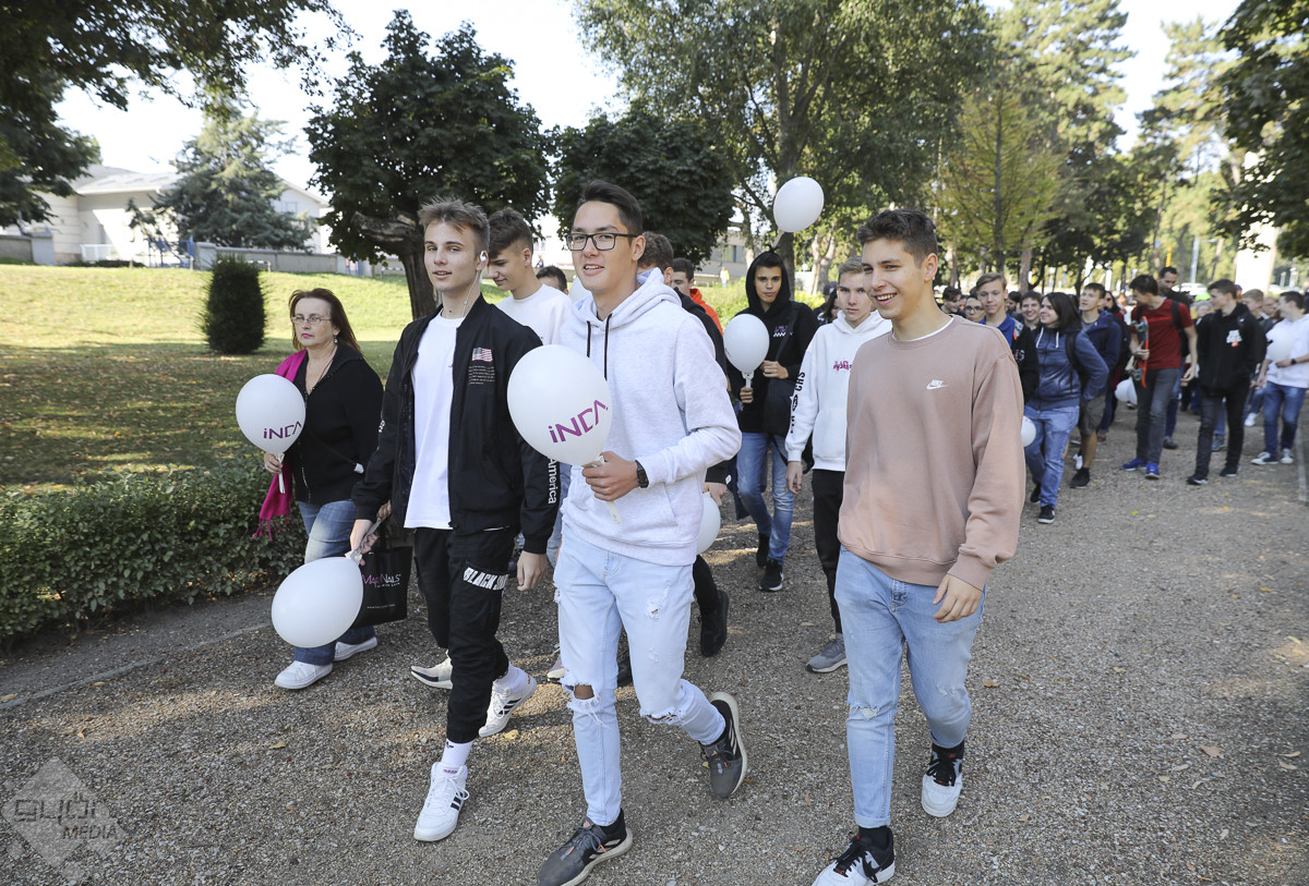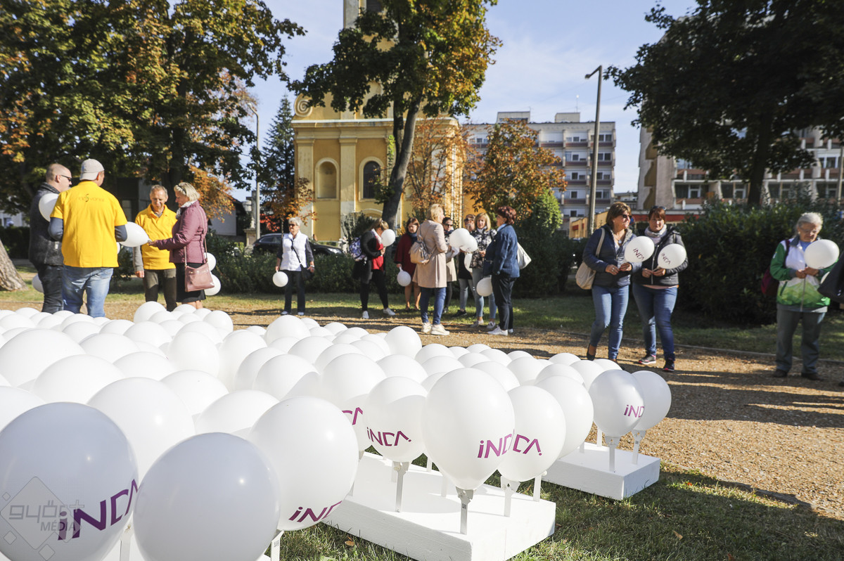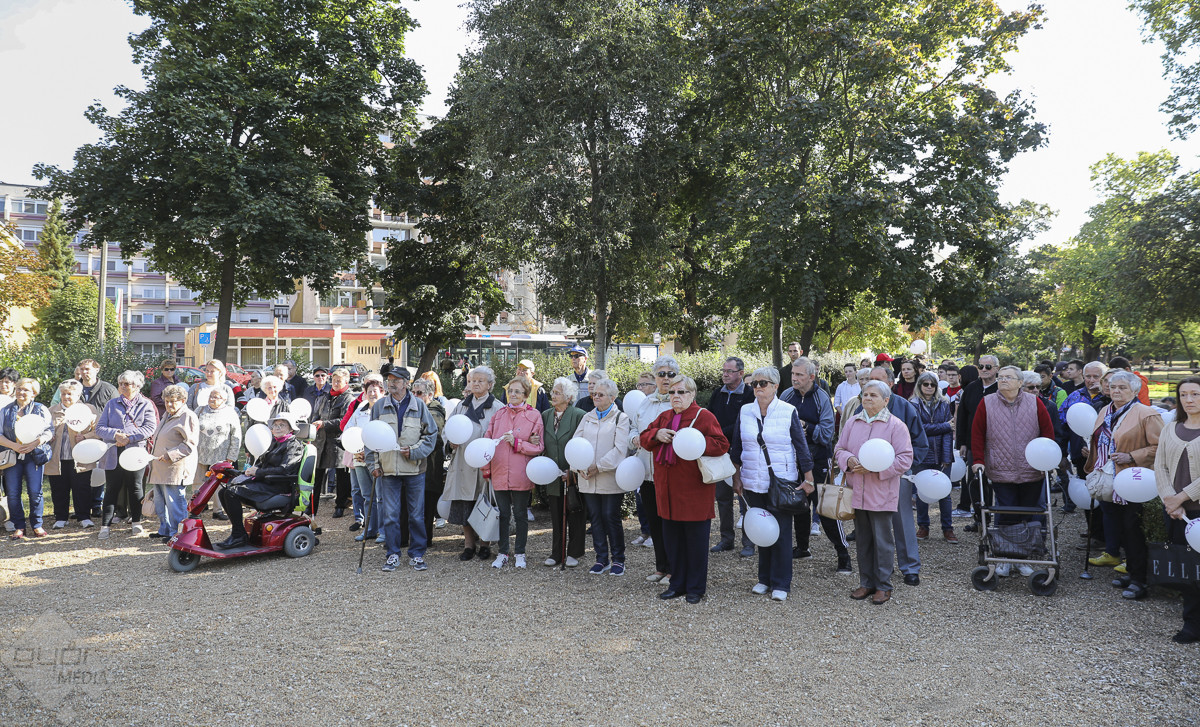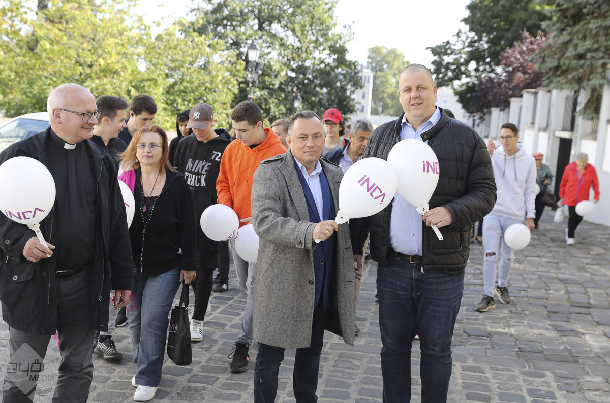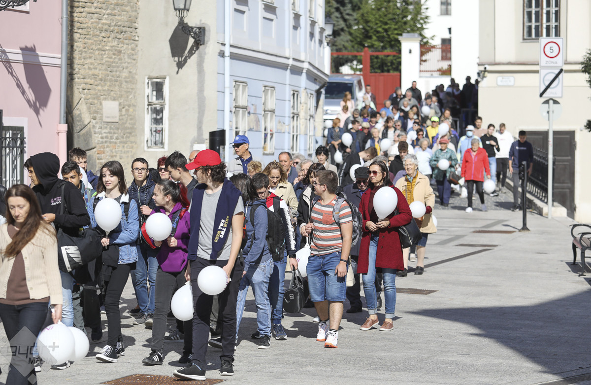 Fehér lufival a kezükben várakoztak a résztvevők a Kálóczy téren. A séta előtt elsőként Szeles Szabolcs, a város alpolgármestere köszöntötte őket.