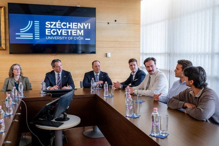 Az Amerikai Egyesült Államok magyarországi nagykövetségének delegációja látogatott nemrég a győri Széchenyi István Egyetemre. A márciusban hivatalba lépett vezető diplomata, Robert Palladino ügyvivő és munkatársai megismerkedtek az intézmény kutatás-fejlesztési fókuszterületeivel, találkoztak hallgatóival, és elismerően nyilatkoztak jövőformáló tevékenységéről.