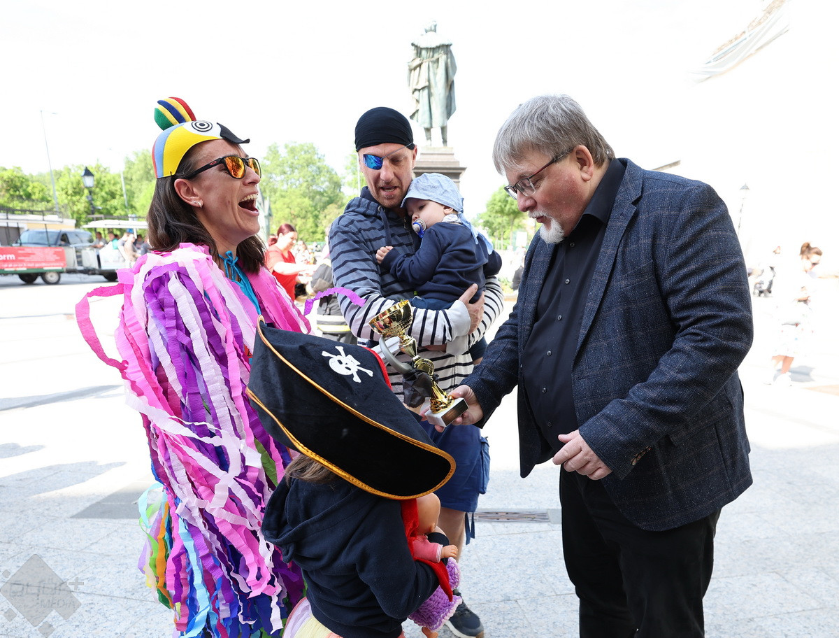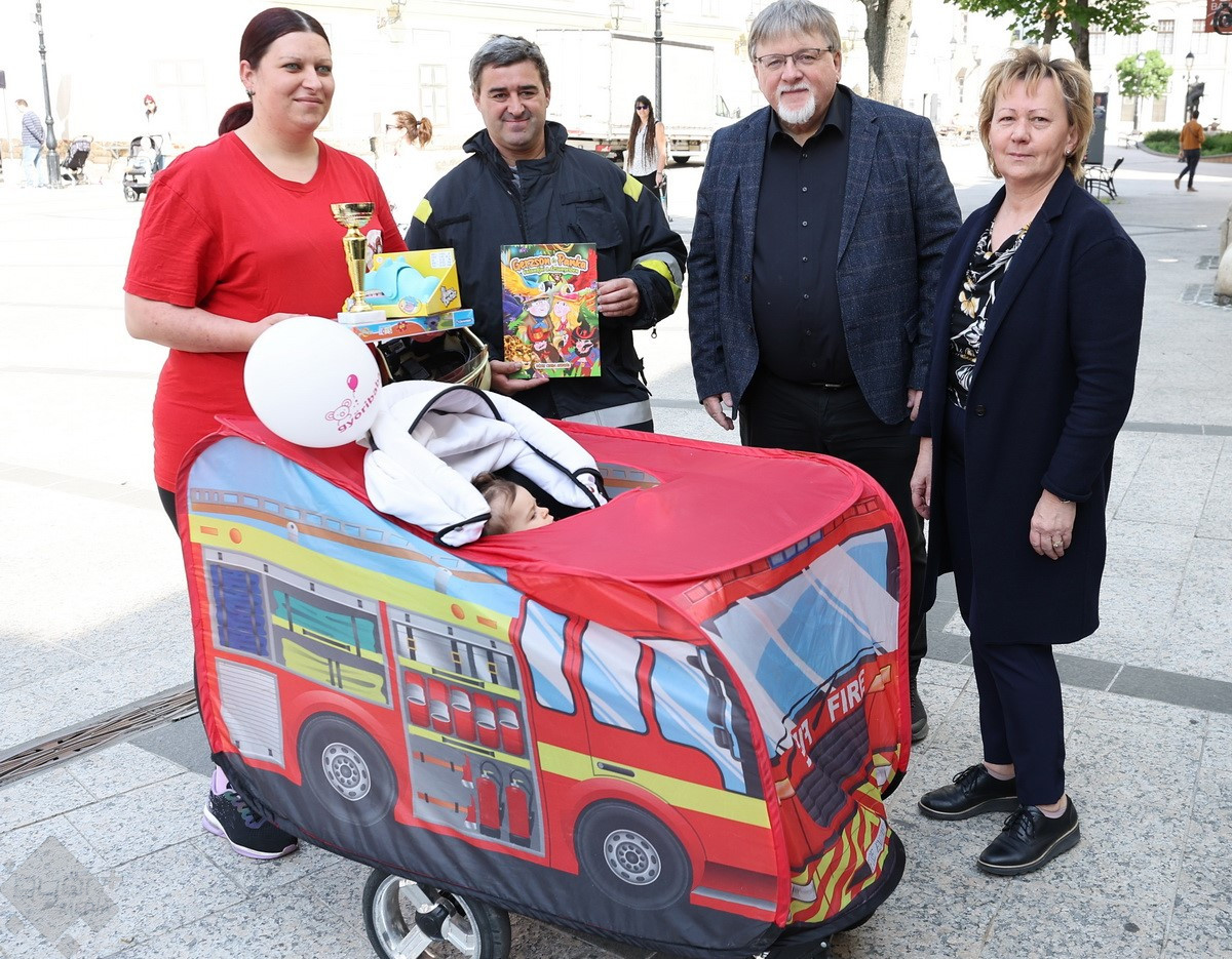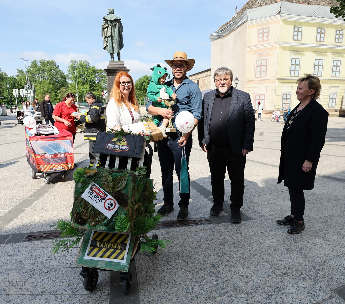 A felvonulókat a Bécsi kapu térre érkezve díjazták is. A harmadik helyen a Tűzoltók napja alkalmából, tűzoltó egyenruhába öltözött család és a babakocsijuk végzett. A második díjat a kalóznak öltözött család kapta, ahol apa volt a félszemű, anya pedig a papagáj. Az első díjat a Jurassic world babakocsi, az igényes jelmezbe öltözött szülők és a dínó baba kapták. Különdíjban pedig a Flintstone maskarába bújt család részesült.