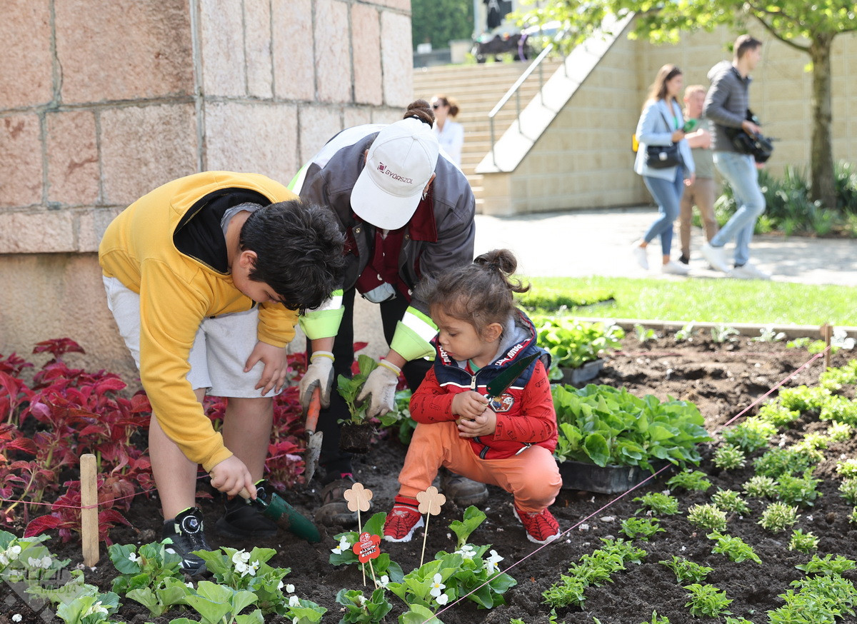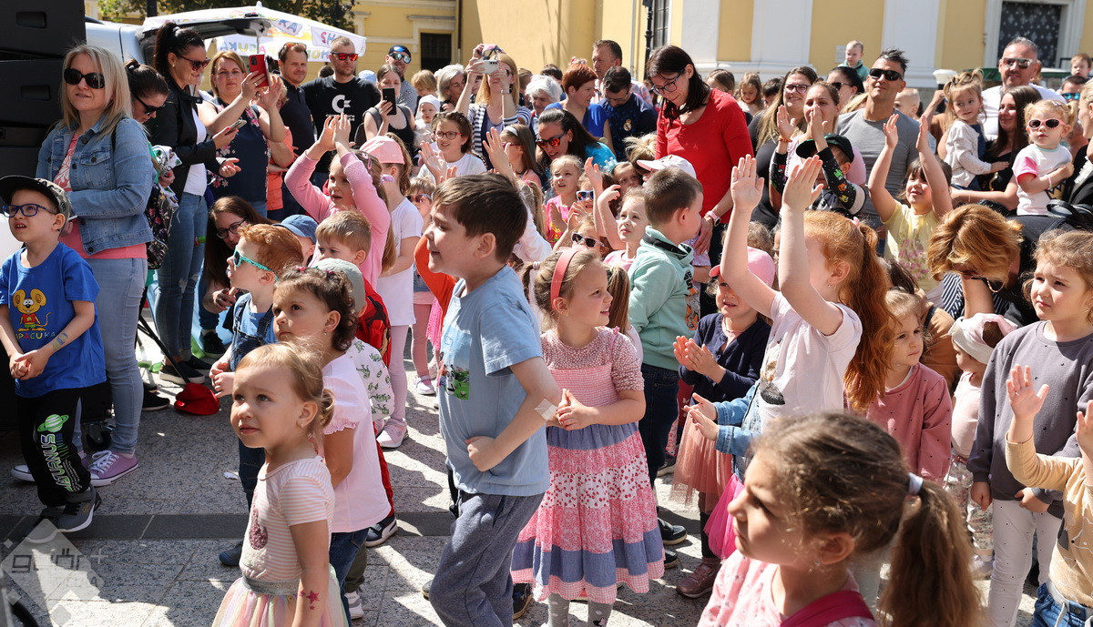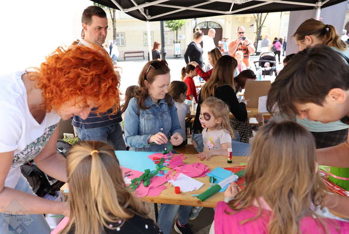 A téren tehát közös virágültetés zajlott, ahol a kicsik egy virágkitűzőre írhatták fel saját és édesanyjuk nevét, majd arcfestés és kézműveskedés várta őket. Tizenegy órakor mindenki a magasba emelkedett, majd jött az Apacuka gyermekkoncertje, ahol mindenki táncra perdült és dalra fakadt.