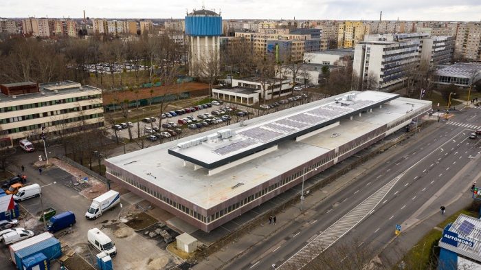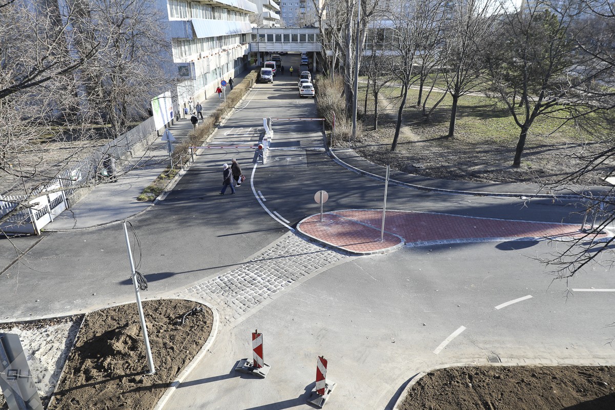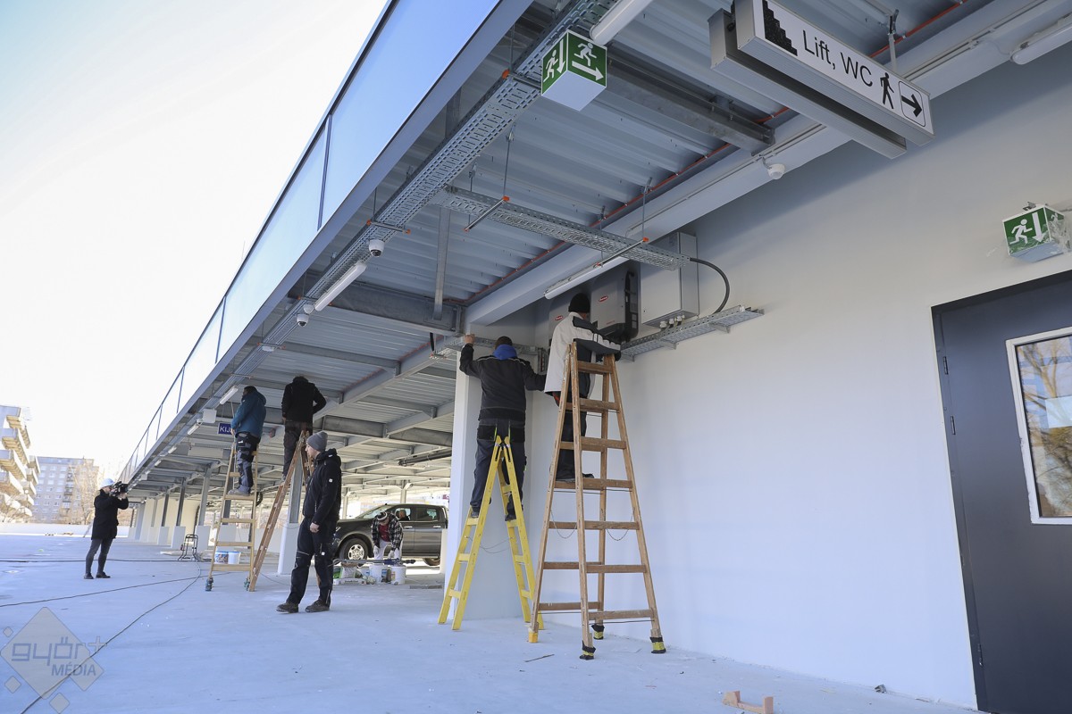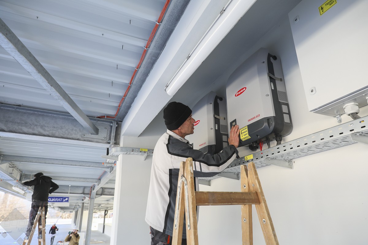 A tetőtérben már felszerelték a napelemeket. Kialakítottak négy elektromos töltőállomást, ezek számát igény szerint növelni tudják. Márciusban külön választják a Parkolólemez és a kórházi autóbehajtási lehetőségét.