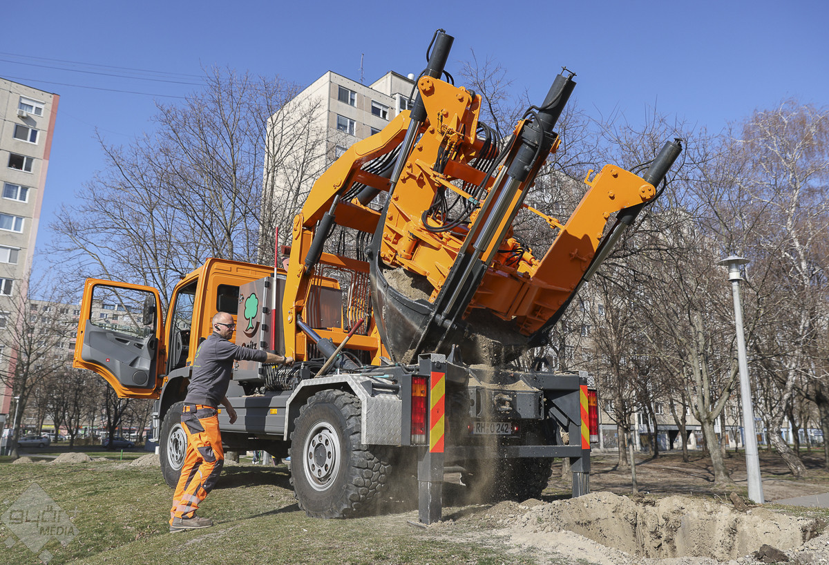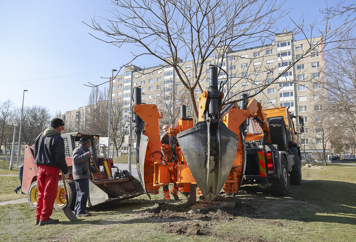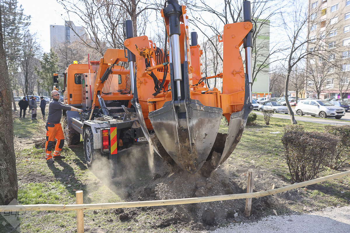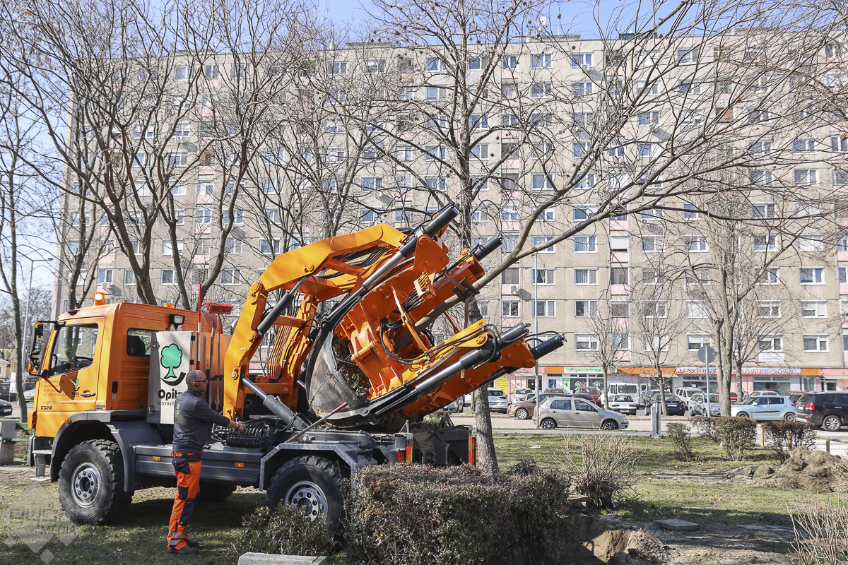 – A fák átültetését még a rügyfakadás előtt el kell végezni, ezért a március eleji időpont – mondta portálunknak Máté-Tóth Péter, a Győri Útkezelő Szervezet vezetője. A szakemberek felmérték a park fáinak állapotát és hét olyan egészséges, fiatalnak számító fát találtak, amelyek átültethetők. A műveletet egy speciális, hidraulikus emelőkanállal rendelkező faátültető gép végzi, mely Németországból érkezett. A gép olyan mélyen ássa ki a növényt, hogy ne sérüljenek a gyökerei, így szállítja át a már kiásott új helyére, ahol el is ülteti. Így 90 százalékos biztonsággal megmaradnak. Az egy napos munkafolyamat eredményeképpen a fák kijelölt új helyük, többek között a Kodály Zoltán utca 2–10. számú épület mögött és az adyvárosi tó körül élnek majd tovább.