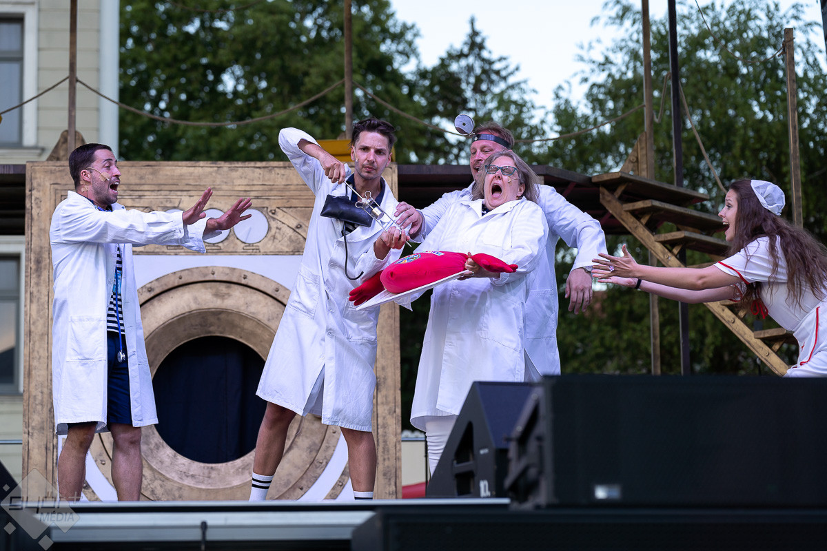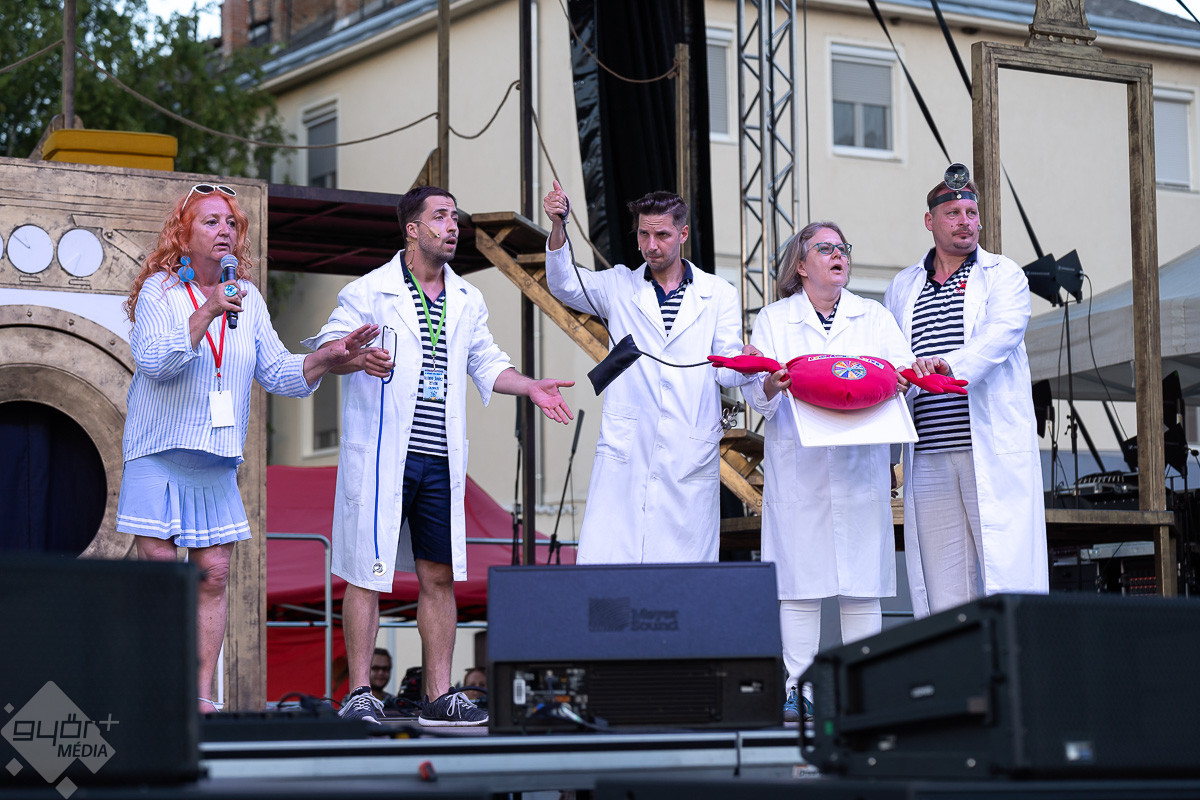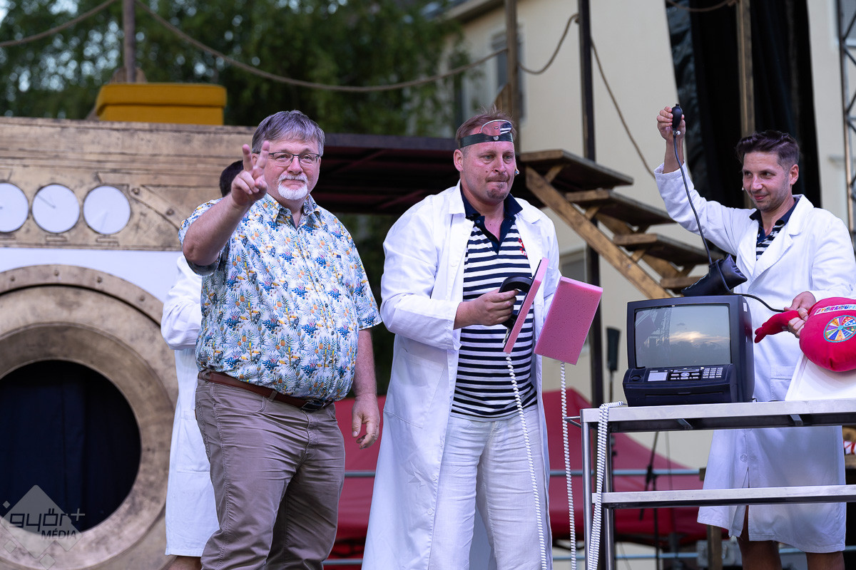 Az átadás előtt a Vaskakas Bábszínház színészei egy mókás műtői jelenetnek álcázott előadás keretében újraélesztették a Győrkőcfesztivál szívét. “Két év után újra dobog a Győrkőc szíve!” – jelentette be Kocsis Rozi, a gyerekek ezt hangos üdvrivalgással fogadták.