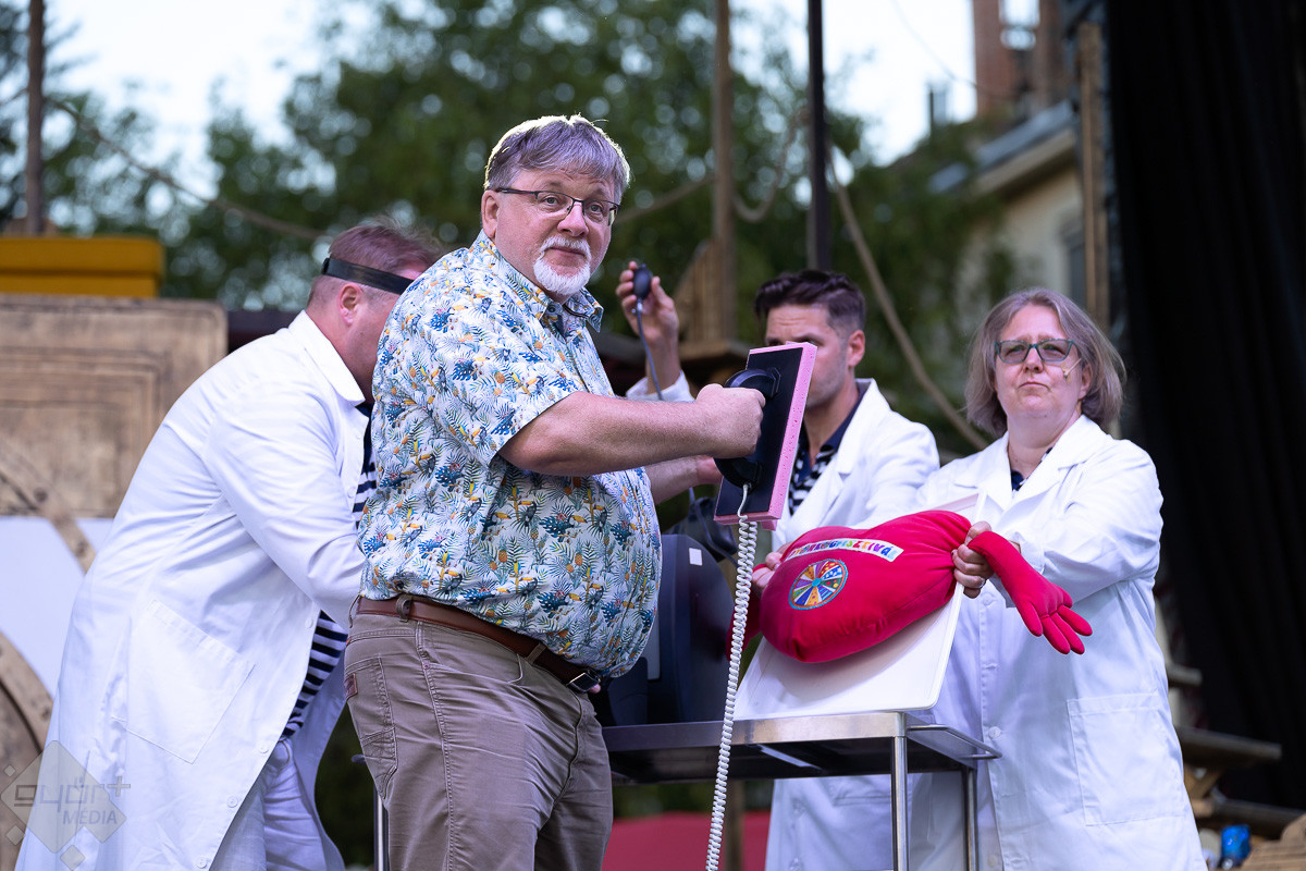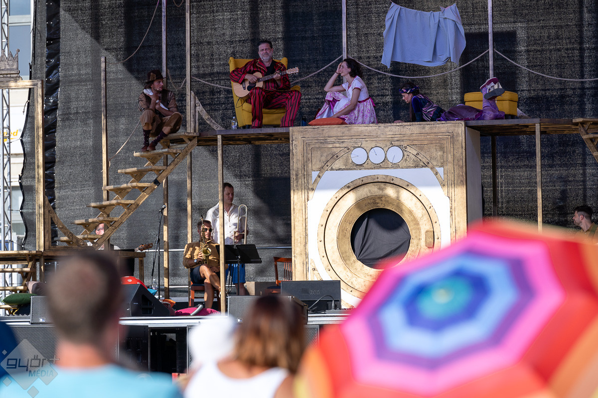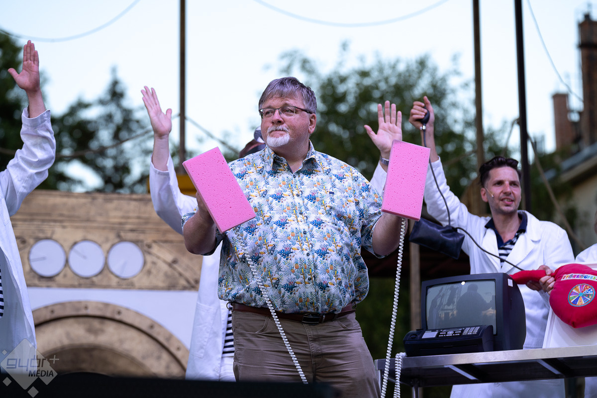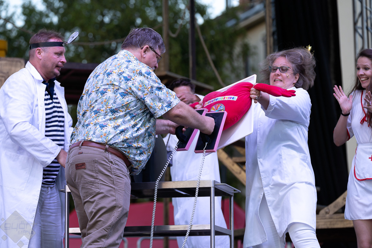 Az átadás előtt a Vaskakas Bábszínház színészei egy mókás műtői jelenetnek álcázott előadás keretében újraélesztették a Győrkőcfesztivál szívét. “Két év után újra dobog a Győrkőc szíve!” – jelentette be Kocsis Rozi, a gyerekek ezt hangos üdvrivalgással fogadták.