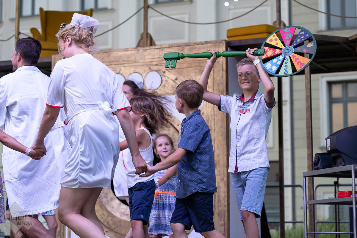 Ezután a színpadra lépő gyerekek átvették a város kulcsát: “Átvesszük a kulcsot és a hatalmat a város felett! A polgármester bácsi nyugodtan szabadságra mehet!” Az egész napos kánikula után ekkor kezdett feltámadni a viharos éjszakát előre jelző szél, de a Dunakapu téren kialakított tánctér megtelt a gyerekekkel és szüleikkel, és utcabál kezdődött. Szombaton és vasárnap egész napos programokkal várják a családokat a belvárosban.