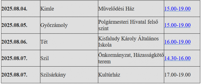 A megadott programon kívül az alábbi nyitva tartásban várják a Regionális Vérellátó Központban a vért adni szándékozókat (Győr, Magyar u. 8.):