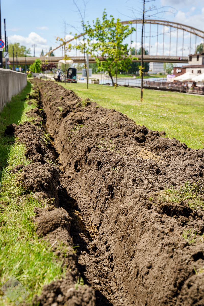 A Móricz Zsigmond rakparton a Dunapart Rezidenciától a Kossuth-hídig építik ki az öntözőrendszert, amely üde zöldfelületet, a növényeknek megfelelő vízellátást biztosít a területen.