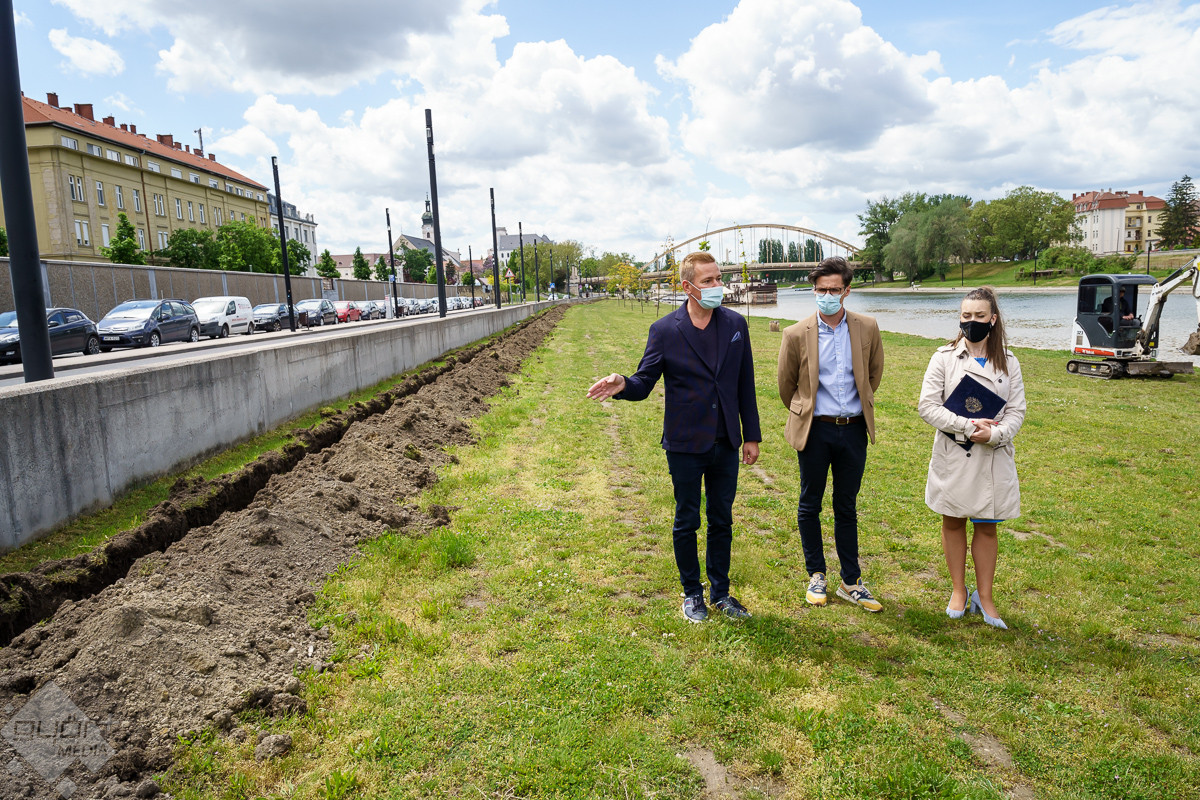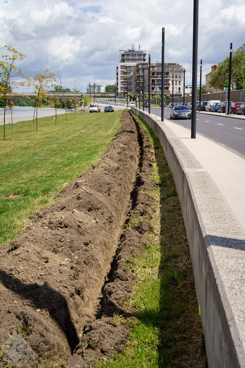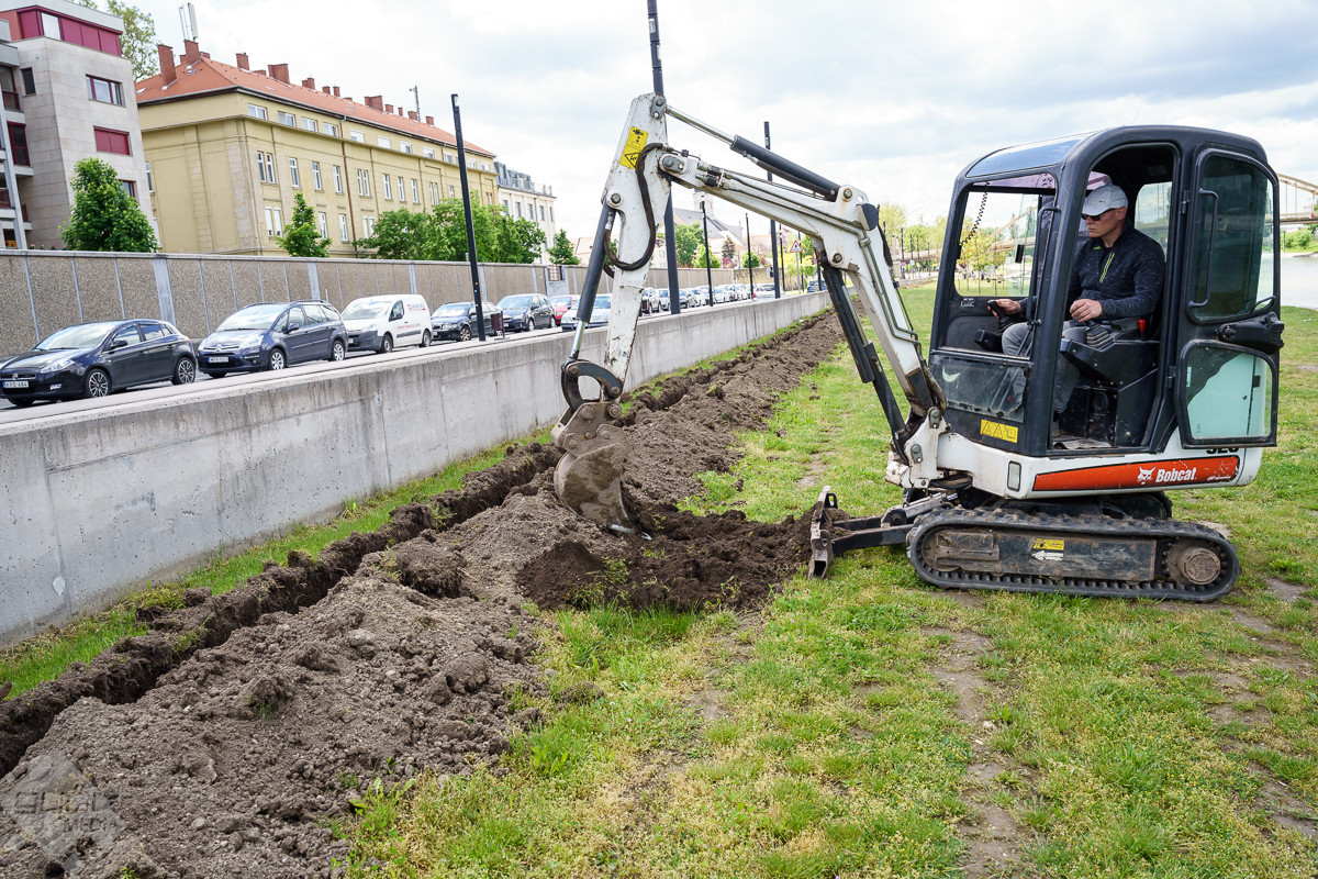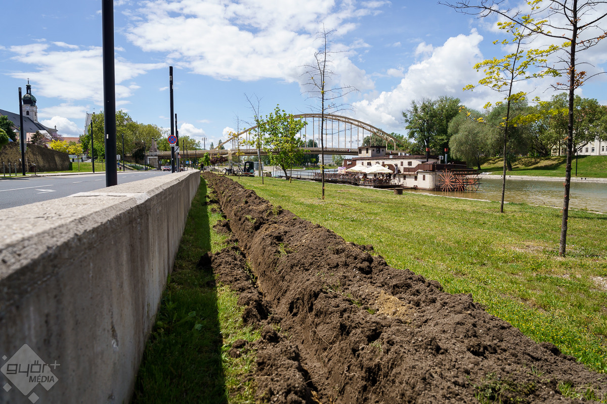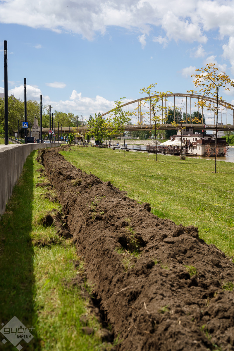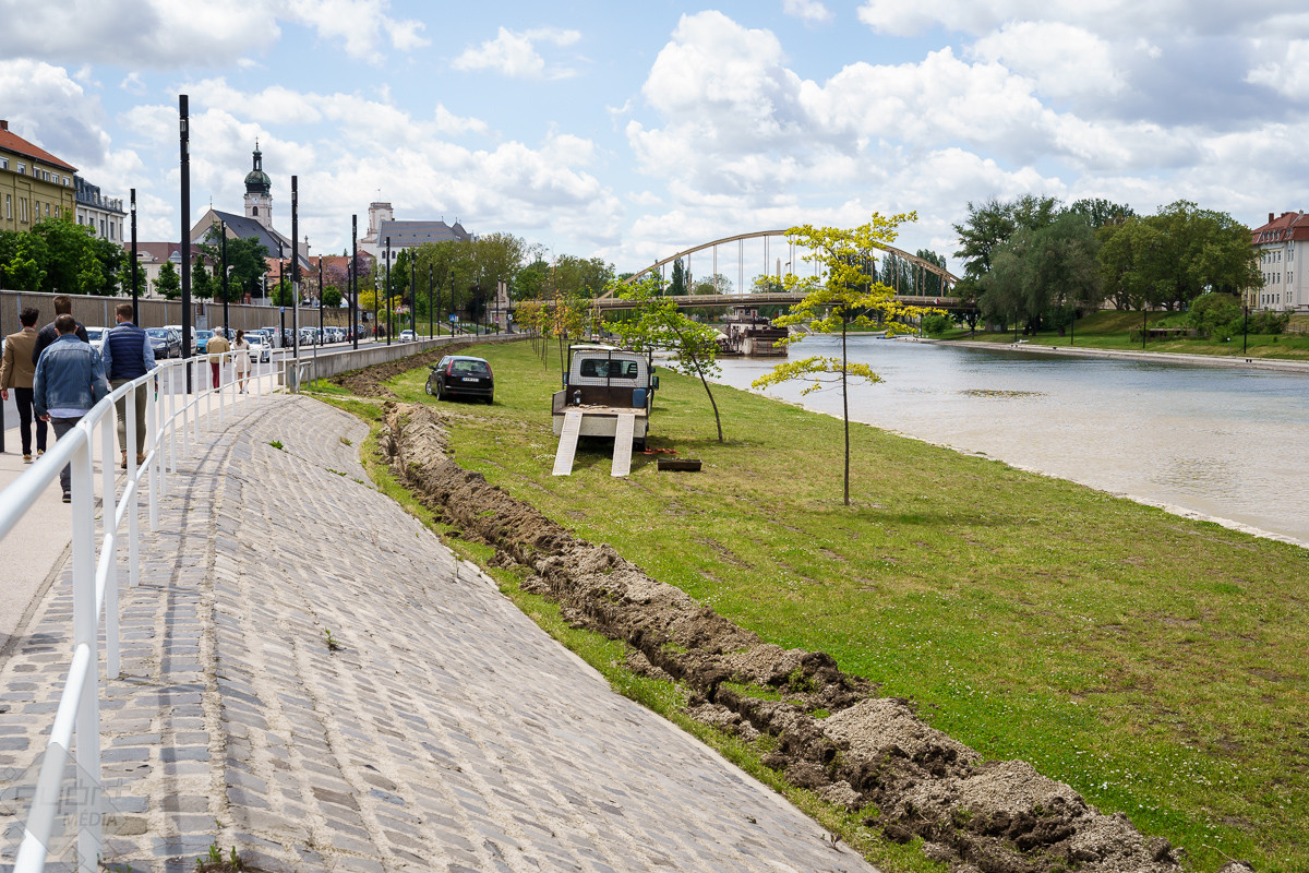 Radnóti Ákos városüzemeltetésért is felelős alpolgármester a helyszínen elmondta, a munka már megkezdődött, amelynek keretében közel egy kilométer hosszú csővezetéket helyeznek el, s 55 öntözőfej biztosítja majd a megfelelő vízellátást. Hozzátette, a város mintegy negyven helyszínén működik már hasonló rendszer, és nagyon pozitívak a tapasztalatok. A közelben a Várfal sétánynál, illetve a szemközti oldalon a Kálóczy tér alatt is működik az automata rendszer, mert bár ártérről van szó, a száraz nyári időszakokban itt is nagy szűkség van az öntözésre.