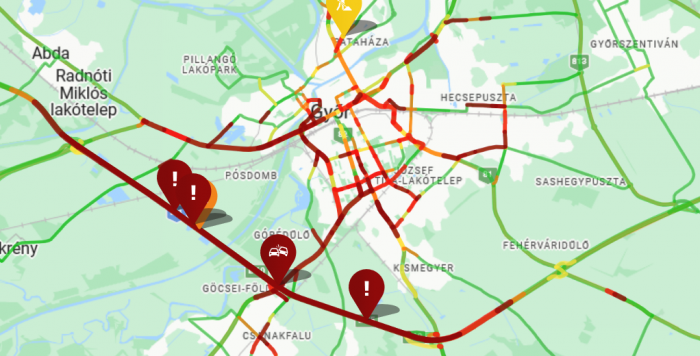 Közben a dugó már visszatorlódott egészen Győr belvárosáig, de a város számos más szakaszán rendkívül nehéz a közlekedés – jelezte a Győr+ Rádió hallgatója, aki fotót is küldött.