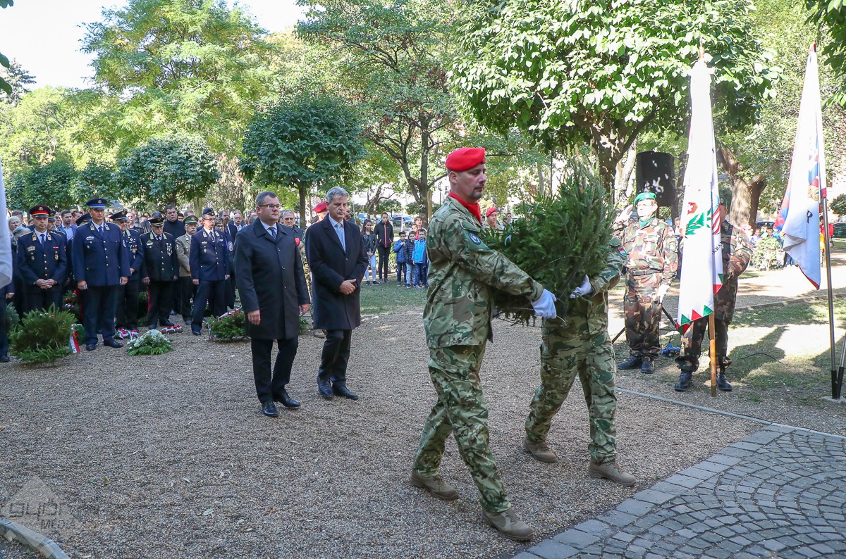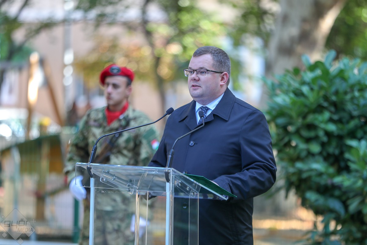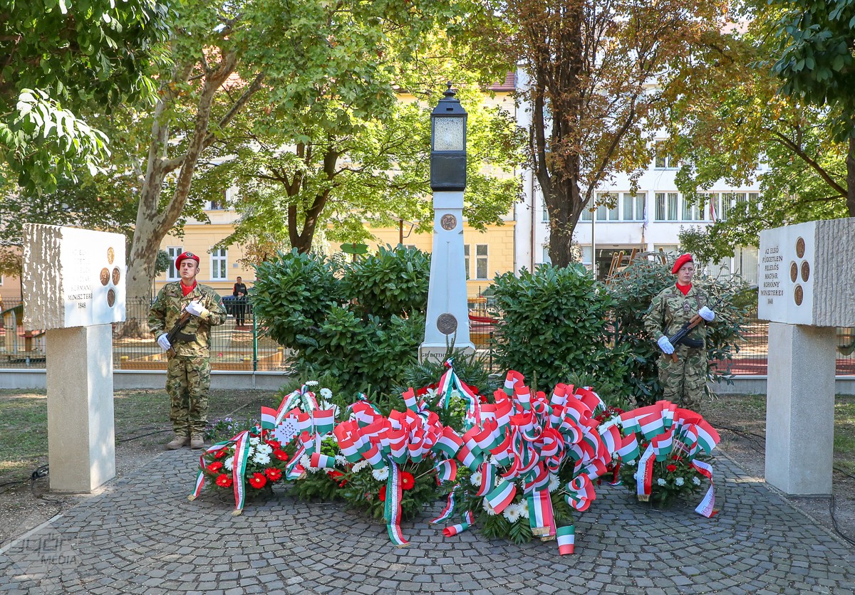 „Éppen 170 éve annak, hogy hőseinket az embertelenség elragadta közülünk. 170 éve a szabadságért vívott harcunk elbukott, 170 éve valami összetört, több millió szív megszakadt, 170 éve egy kicsit minden magyar meghalt. De 170 éve valami más is történt! Ugyanis 170 évvel ezelőtt világossá vált, hogy bár megtorolhatják bátor kiállásunkat, gőgösen arcul csaphatnak minket, zárójelbe tehetik a mi véleményünket a világról, a szabadságvágyat, a haza és a nemzet szeretetét, a nemzettestvéreink iránt érzett szeretetet és összetartozás érzését nem tudják kiölni belőlünk!” – fogalmazott emlékező beszédében dr. Fekete Dávid alpolgármester.