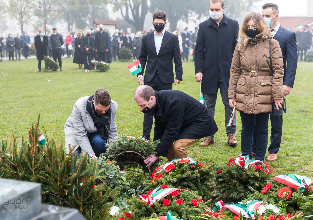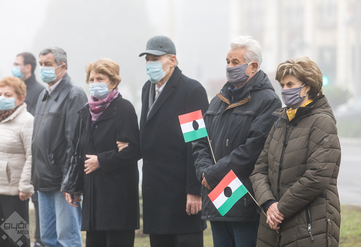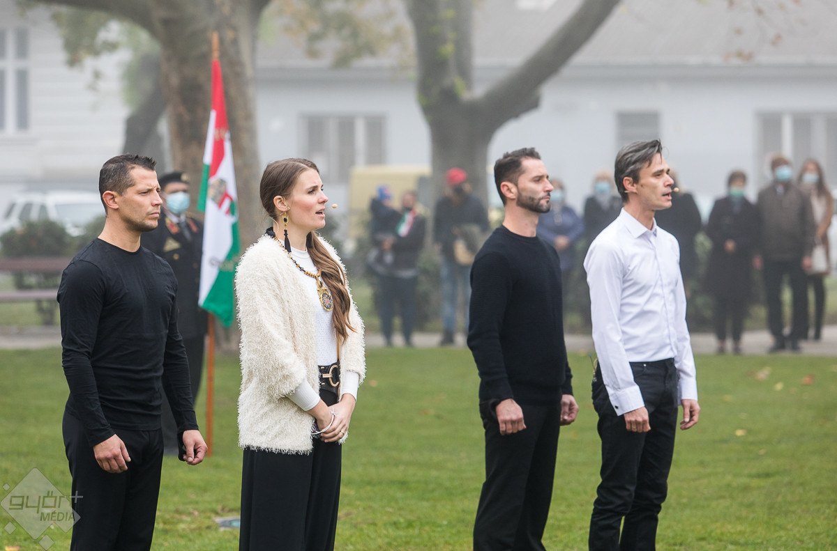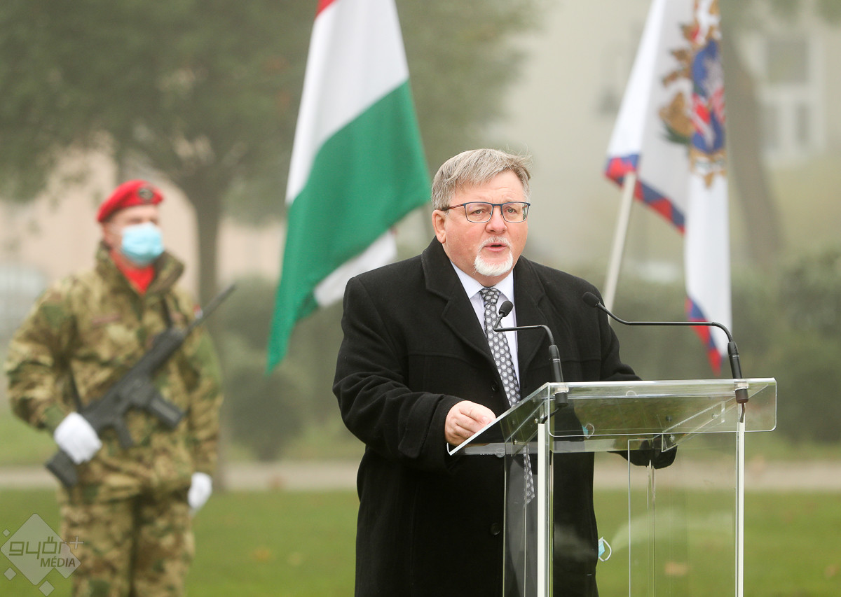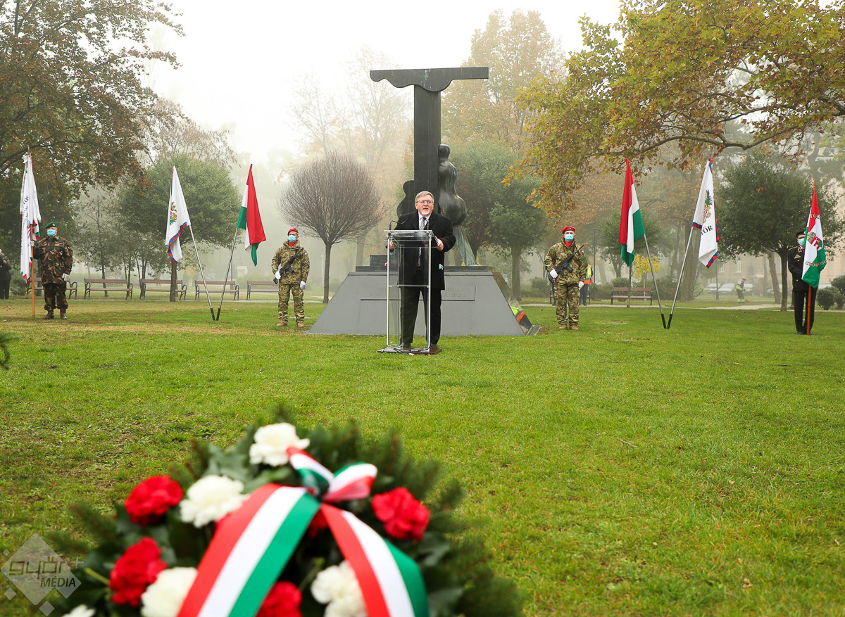 „Az ember és a nemzet természetes létállapota a szabadság. Ezt a szabadságot átmenetileg korlátozhatják az ordas eszmék szolgálatába álló zsarnoki hatalmak. Meggyalázhatják a nemzet múltját, átírhatják történelmét, polgáraiba belefojthatják a szót, börtönbe zárhatják őket, akár az életüket is elvehetik tőlük. De a történelmi példák mind azt mutatják: a szabadságvágy utat tör magának, elsodor minden hamis eszmét, s ha van hozzá nemzeti erő, akarat, összefogás, akkor, ha áldozatok árán is, de a nemzet fönnmarad, polgárai pedig visszaveszik szabadságukat.” – mondta emlékező beszédében Dr. Dézsi Csaba András polgármester. Hozzátette, büszkék lehetünk a saját hőseinkre, akik meghatározó történelmi egyéniségei lettek a forradalomnak. Felidézte Szigethy Attila, Földes Gábor, Tihanyi Árpád, Török István alakját, a forradalomban betöltött történelmi jelentőségű szerepüket, és az áldozatot, amelyet a nemzetért hoztak.
