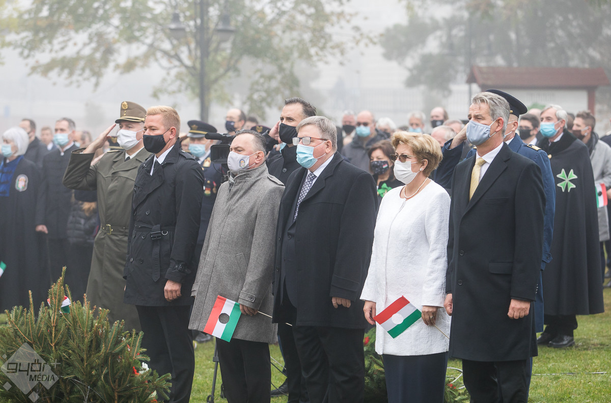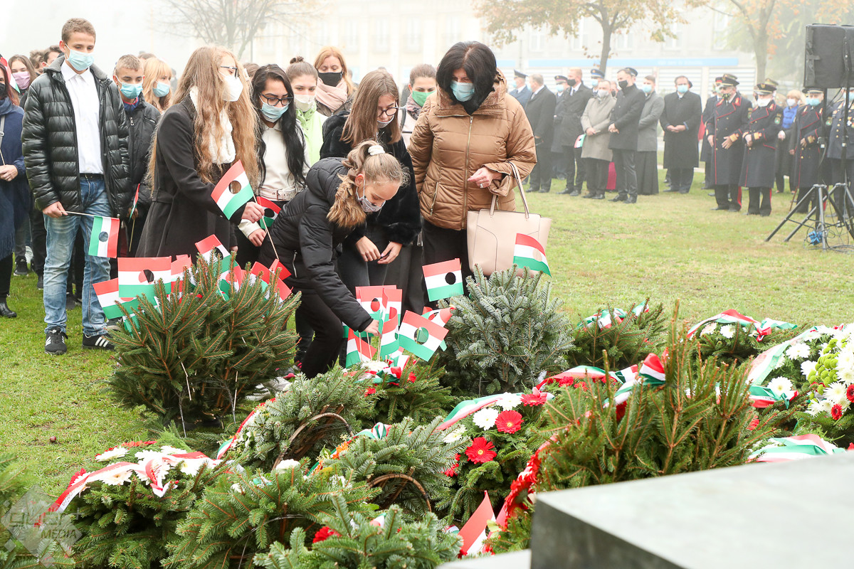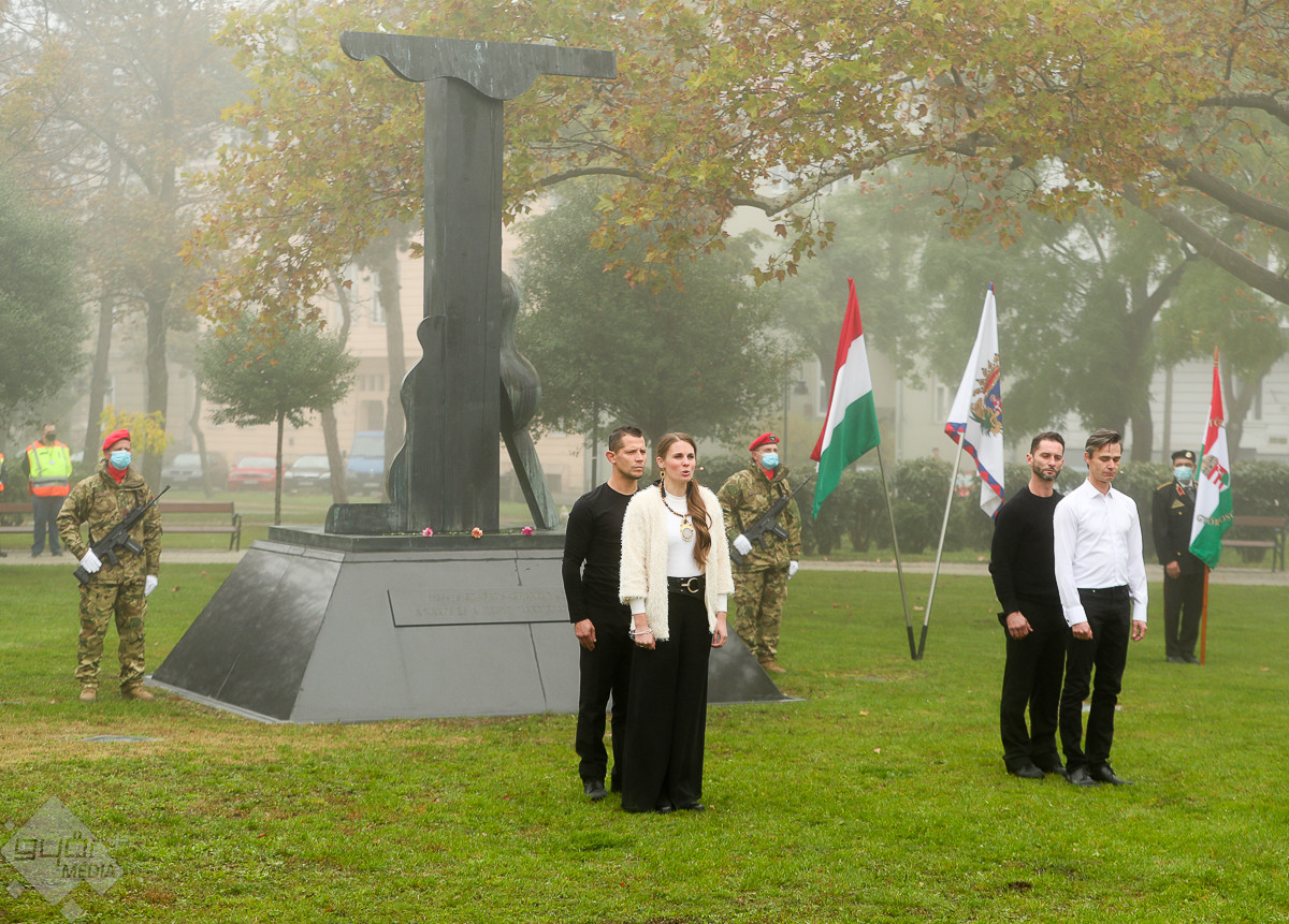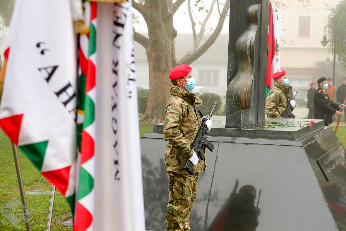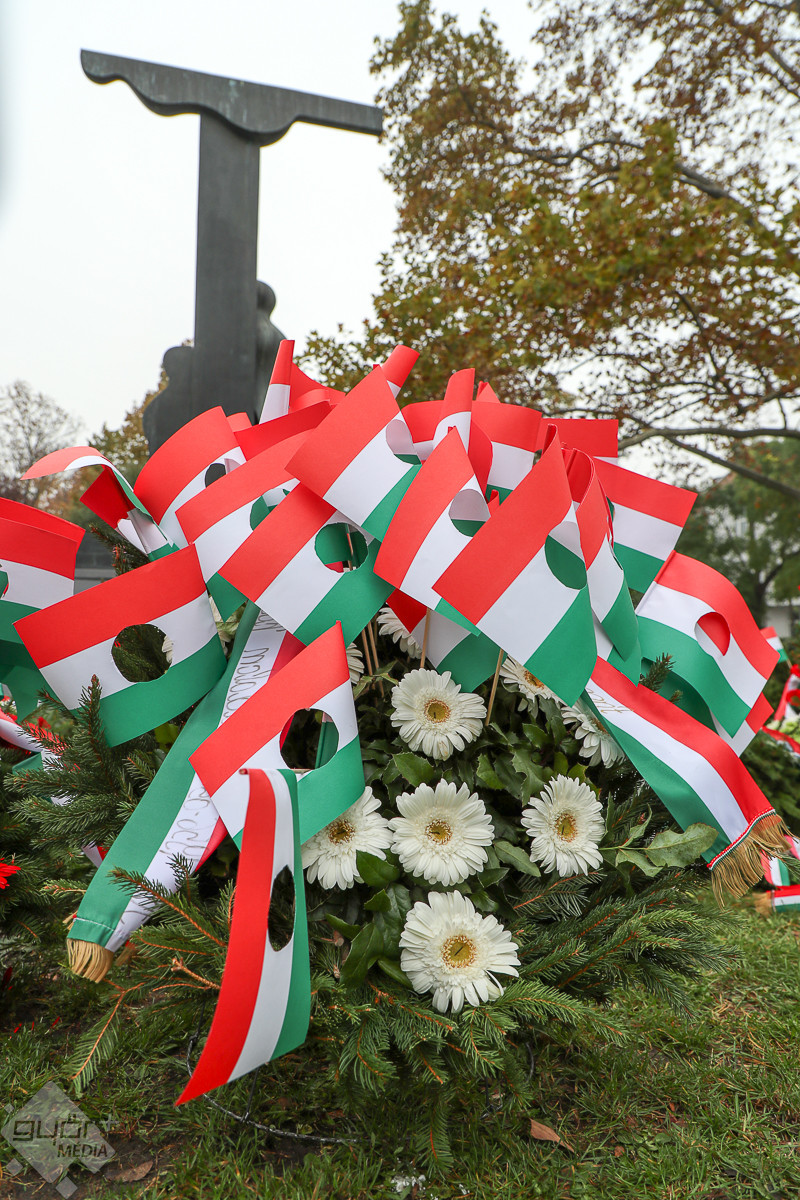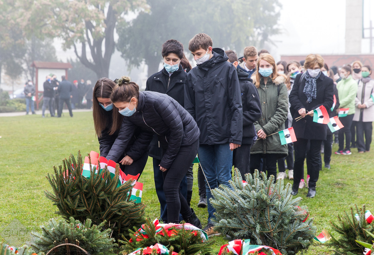 „Az ember és a nemzet természetes létállapota a szabadság. Ezt a szabadságot átmenetileg korlátozhatják az ordas eszmék szolgálatába álló zsarnoki hatalmak. Meggyalázhatják a nemzet múltját, átírhatják történelmét, polgáraiba belefojthatják a szót, börtönbe zárhatják őket, akár az életüket is elvehetik tőlük. De a történelmi példák mind azt mutatják: a szabadságvágy utat tör magának, elsodor minden hamis eszmét, s ha van hozzá nemzeti erő, akarat, összefogás, akkor, ha áldozatok árán is, de a nemzet fönnmarad, polgárai pedig visszaveszik szabadságukat.” – mondta emlékező beszédében Dr. Dézsi Csaba András polgármester. Hozzátette, büszkék lehetünk a saját hőseinkre, akik meghatározó történelmi egyéniségei lettek a forradalomnak. Felidézte Szigethy Attila, Földes Gábor, Tihanyi Árpád, Török István alakját, a forradalomban betöltött történelmi jelentőségű szerepüket, és az áldozatot, amelyet a nemzetért hoztak.