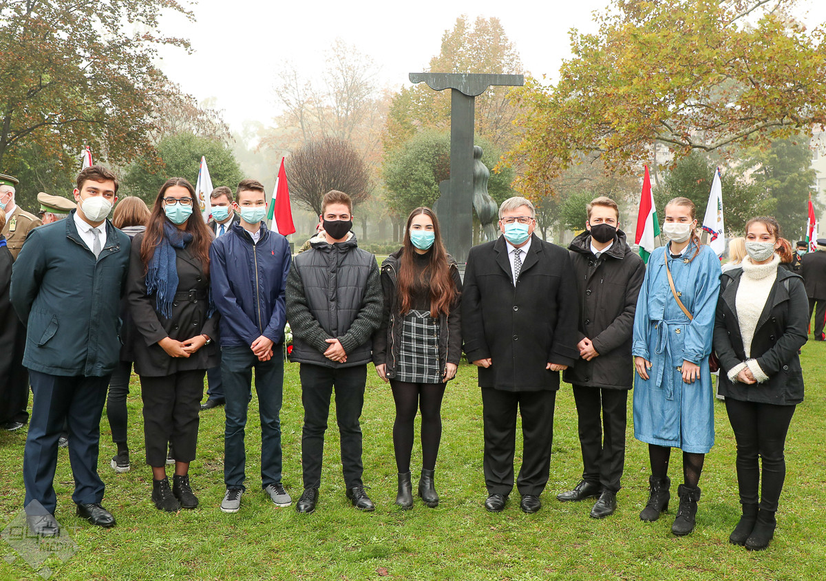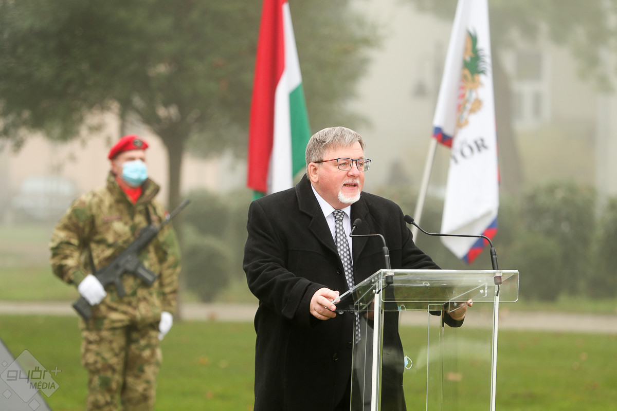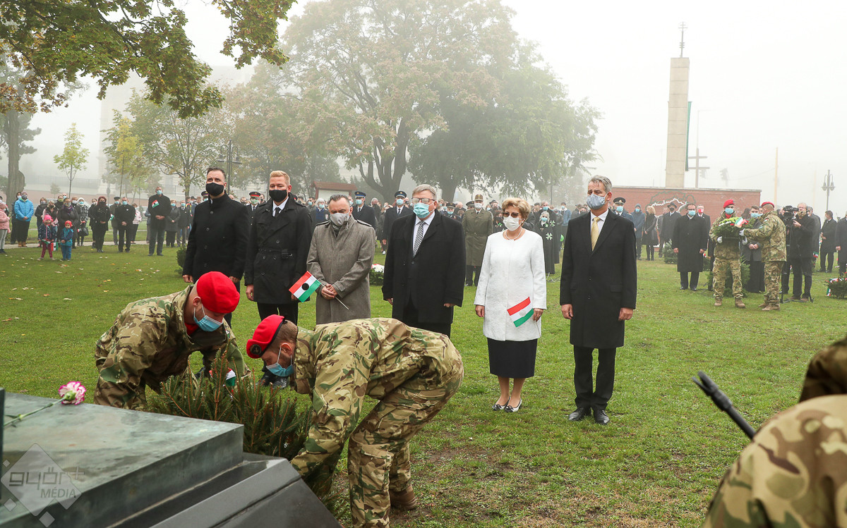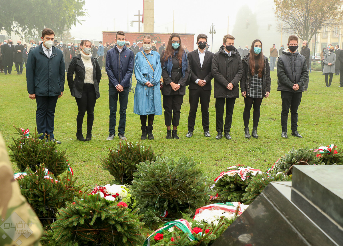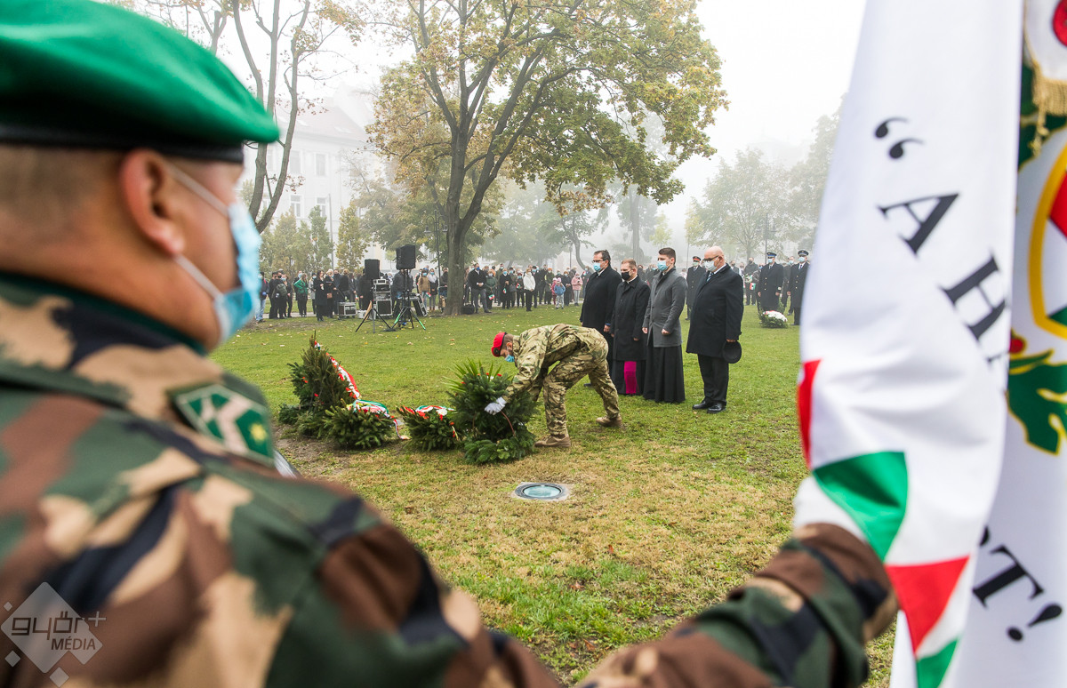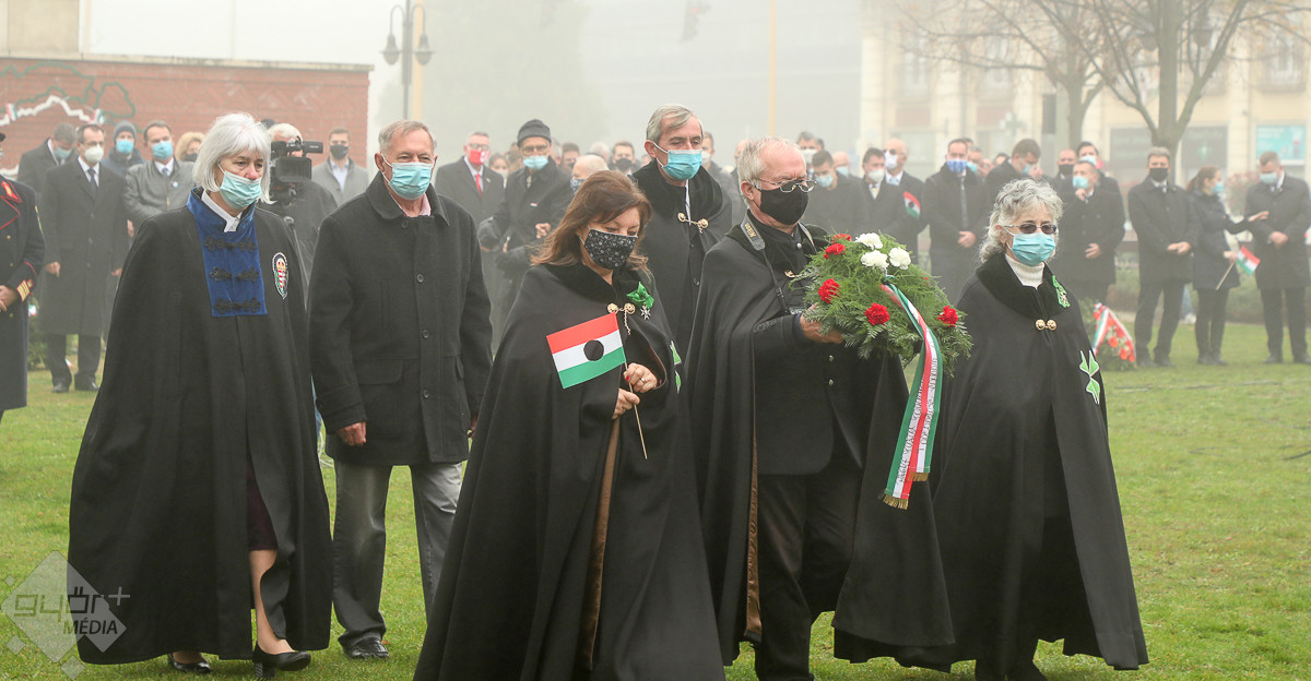 „Az ember és a nemzet természetes létállapota a szabadság. Ezt a szabadságot átmenetileg korlátozhatják az ordas eszmék szolgálatába álló zsarnoki hatalmak. Meggyalázhatják a nemzet múltját, átírhatják történelmét, polgáraiba belefojthatják a szót, börtönbe zárhatják őket, akár az életüket is elvehetik tőlük. De a történelmi példák mind azt mutatják: a szabadságvágy utat tör magának, elsodor minden hamis eszmét, s ha van hozzá nemzeti erő, akarat, összefogás, akkor, ha áldozatok árán is, de a nemzet fönnmarad, polgárai pedig visszaveszik szabadságukat.” – mondta emlékező beszédében Dr. Dézsi Csaba András polgármester. Hozzátette, büszkék lehetünk a saját hőseinkre, akik meghatározó történelmi egyéniségei lettek a forradalomnak. Felidézte Szigethy Attila, Földes Gábor, Tihanyi Árpád, Török István alakját, a forradalomban betöltött történelmi jelentőségű szerepüket, és az áldozatot, amelyet a nemzetért hoztak.