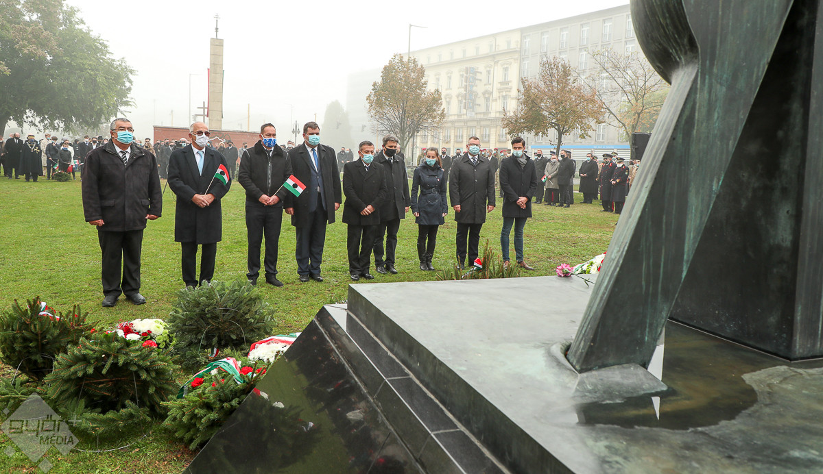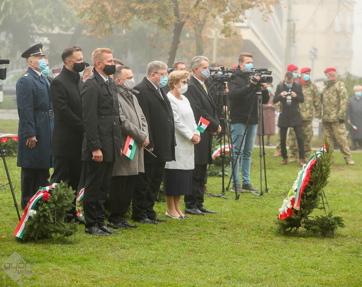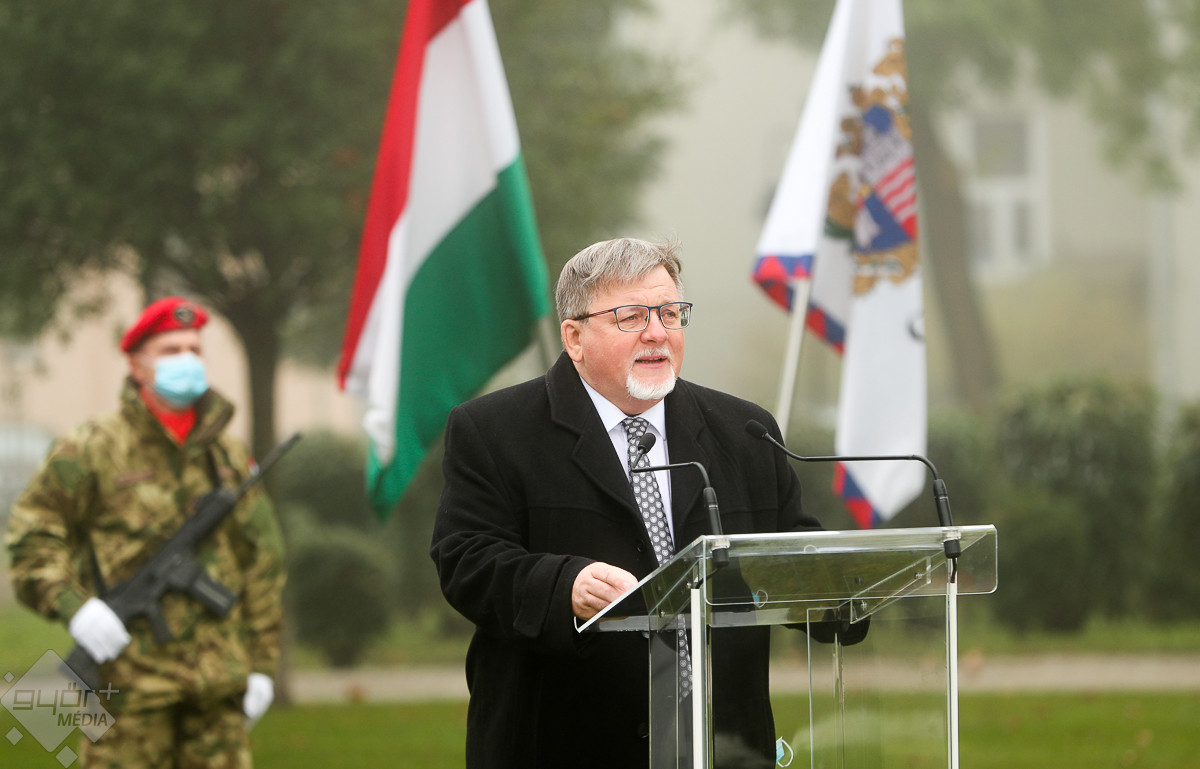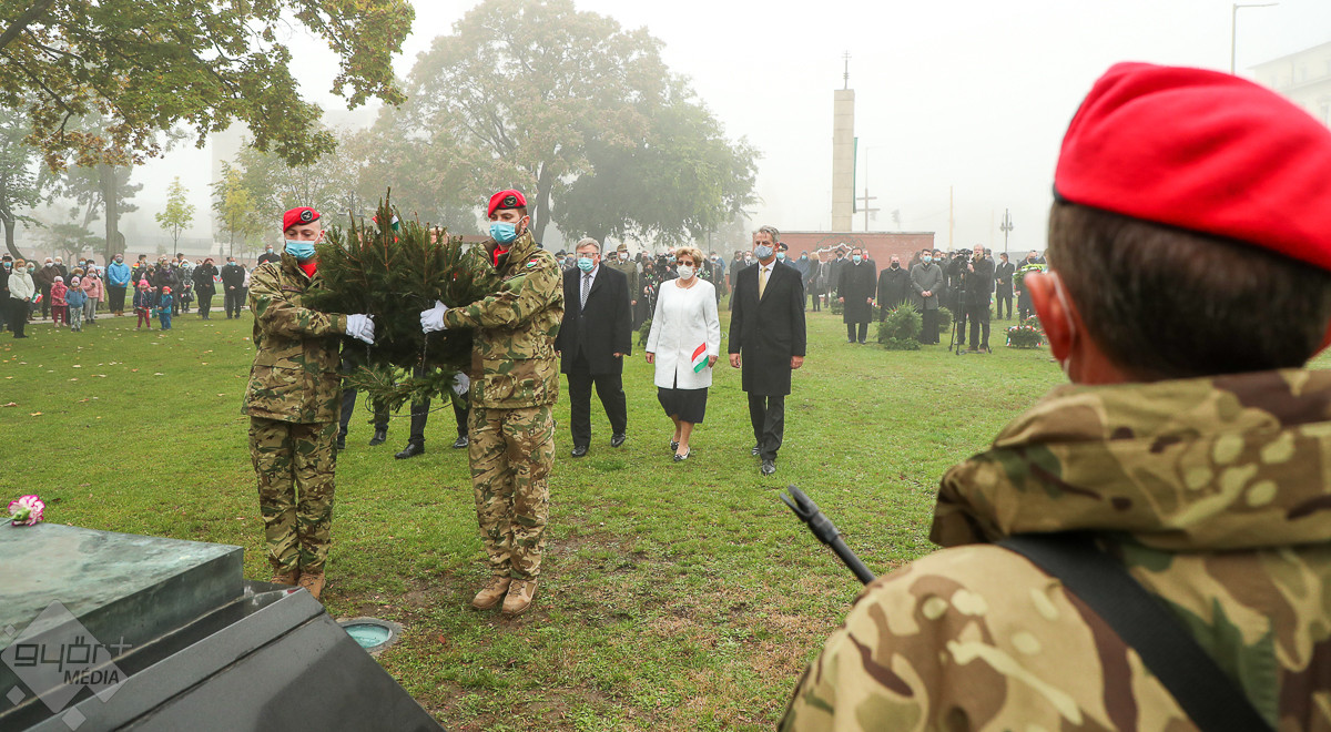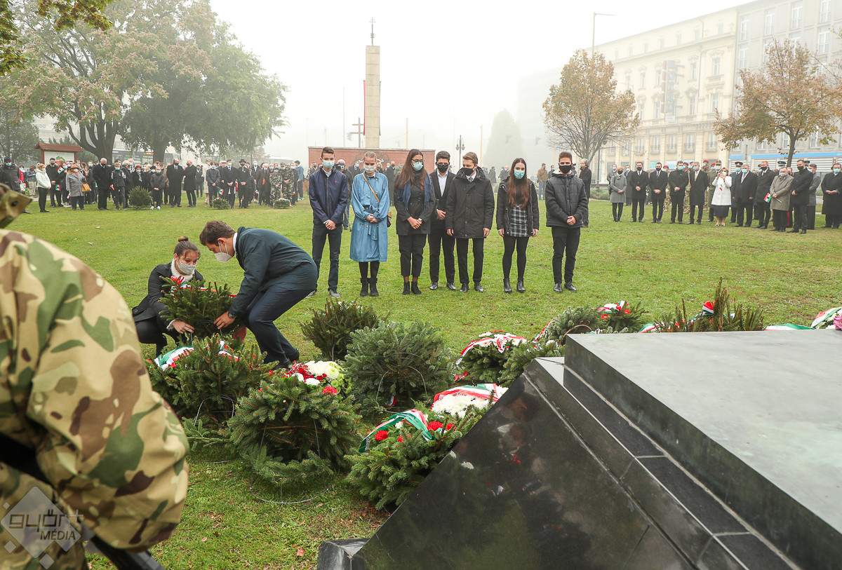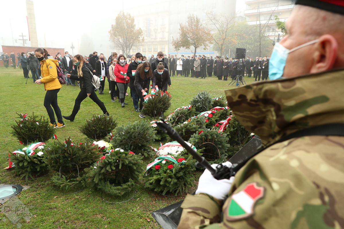 „Az ember és a nemzet természetes létállapota a szabadság. Ezt a szabadságot átmenetileg korlátozhatják az ordas eszmék szolgálatába álló zsarnoki hatalmak. Meggyalázhatják a nemzet múltját, átírhatják történelmét, polgáraiba belefojthatják a szót, börtönbe zárhatják őket, akár az életüket is elvehetik tőlük. De a történelmi példák mind azt mutatják: a szabadságvágy utat tör magának, elsodor minden hamis eszmét, s ha van hozzá nemzeti erő, akarat, összefogás, akkor, ha áldozatok árán is, de a nemzet fönnmarad, polgárai pedig visszaveszik szabadságukat.” – mondta emlékező beszédében Dr. Dézsi Csaba András polgármester. Hozzátette, büszkék lehetünk a saját hőseinkre, akik meghatározó történelmi egyéniségei lettek a forradalomnak. Felidézte Szigethy Attila, Földes Gábor, Tihanyi Árpád, Török István alakját, a forradalomban betöltött történelmi jelentőségű szerepüket, és az áldozatot, amelyet a nemzetért hoztak.