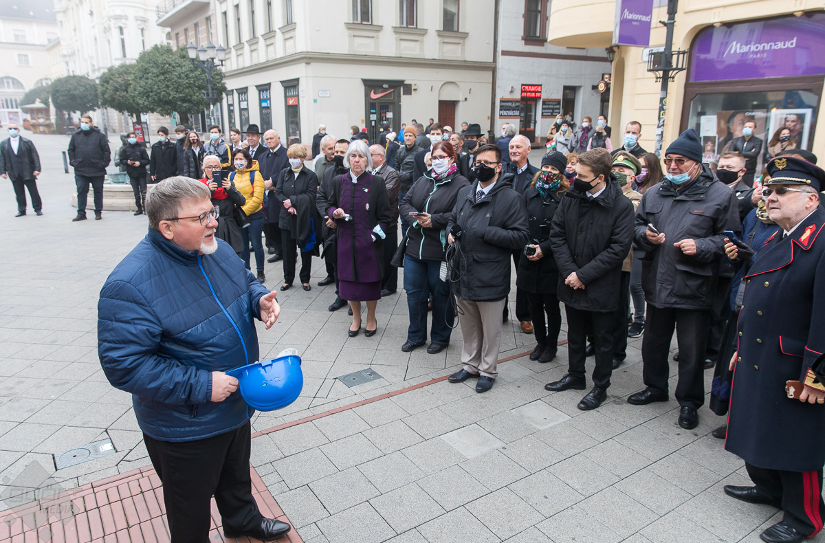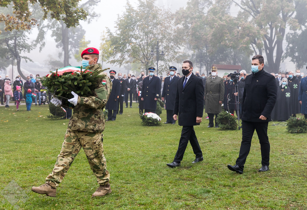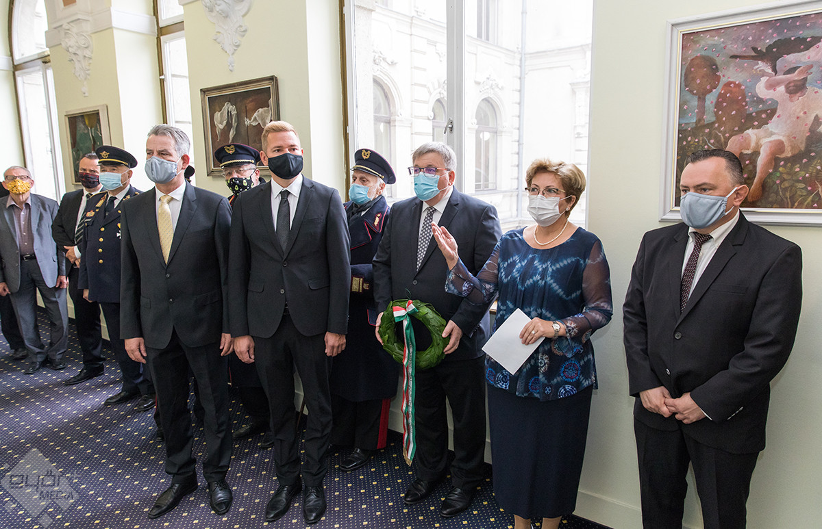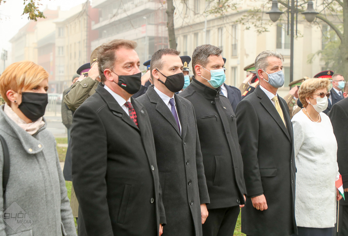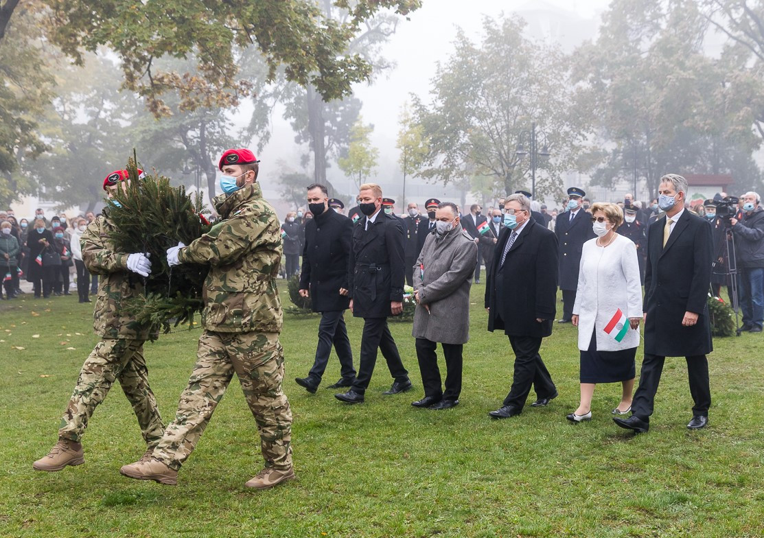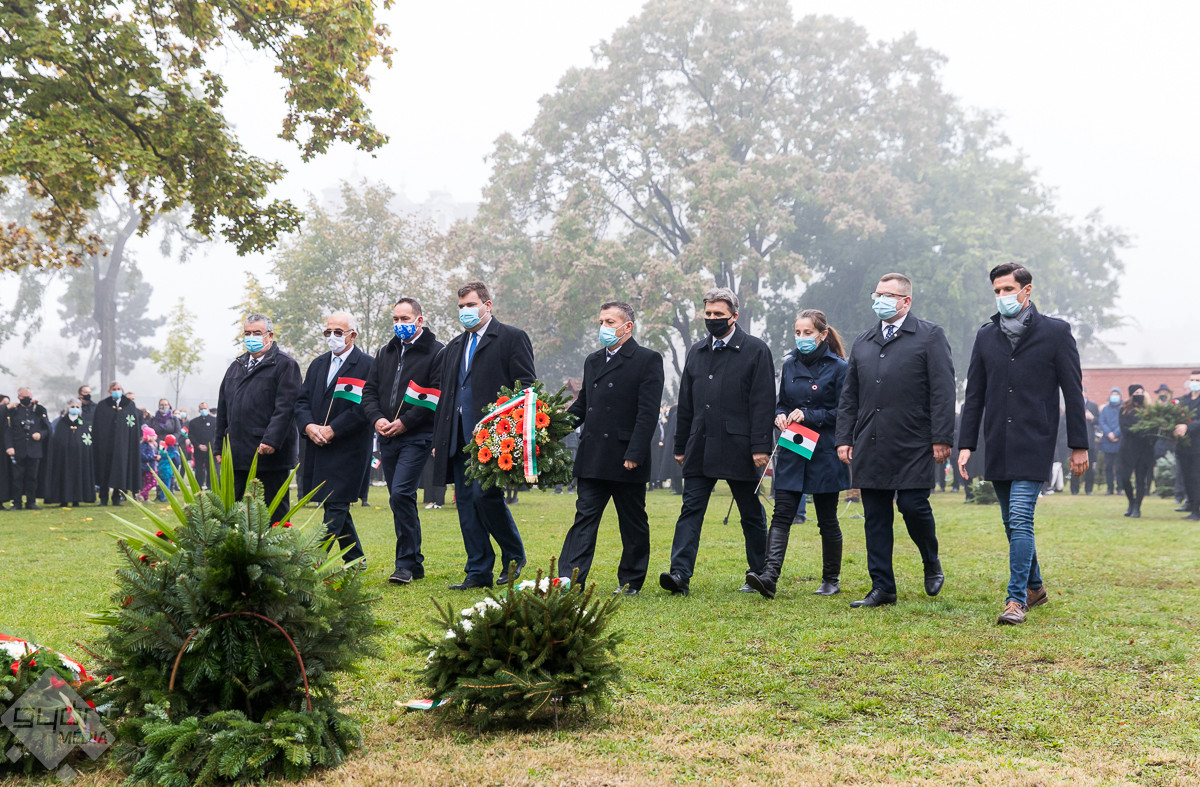 „Az ember és a nemzet természetes létállapota a szabadság. Ezt a szabadságot átmenetileg korlátozhatják az ordas eszmék szolgálatába álló zsarnoki hatalmak. Meggyalázhatják a nemzet múltját, átírhatják történelmét, polgáraiba belefojthatják a szót, börtönbe zárhatják őket, akár az életüket is elvehetik tőlük. De a történelmi példák mind azt mutatják: a szabadságvágy utat tör magának, elsodor minden hamis eszmét, s ha van hozzá nemzeti erő, akarat, összefogás, akkor, ha áldozatok árán is, de a nemzet fönnmarad, polgárai pedig visszaveszik szabadságukat.” – mondta emlékező beszédében Dr. Dézsi Csaba András polgármester. Hozzátette, büszkék lehetünk a saját hőseinkre, akik meghatározó történelmi egyéniségei lettek a forradalomnak. Felidézte Szigethy Attila, Földes Gábor, Tihanyi Árpád, Török István alakját, a forradalomban betöltött történelmi jelentőségű szerepüket, és az áldozatot, amelyet a nemzetért hoztak.