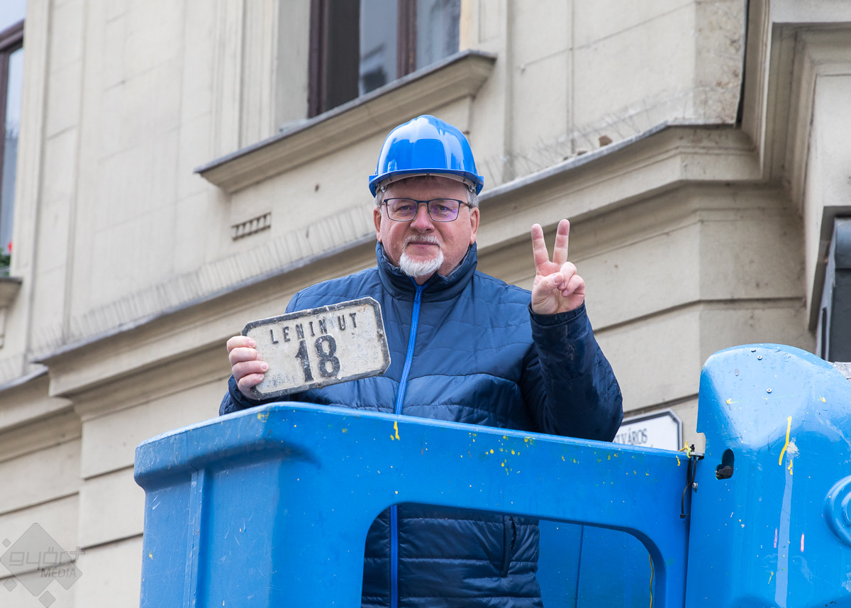 A polgármester az ünnepséget követően levéste az Arany János utca – Baross út sarkán álló épület homlokzatáról a „Lenin út” táblát. Mint mondta, a Baross út a győri belváros főutcája, amelyet a szocialista időkben Lenin útnak hívtak.