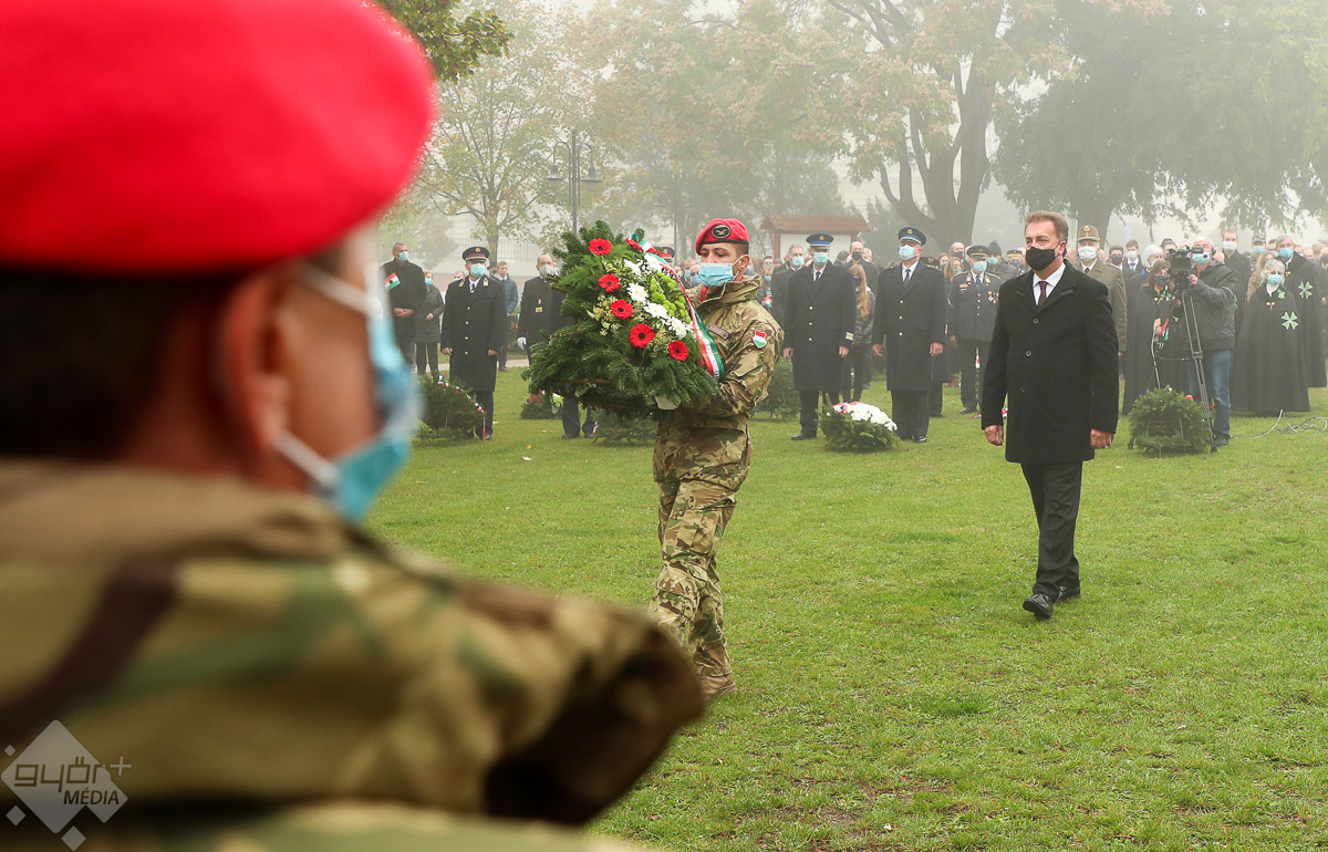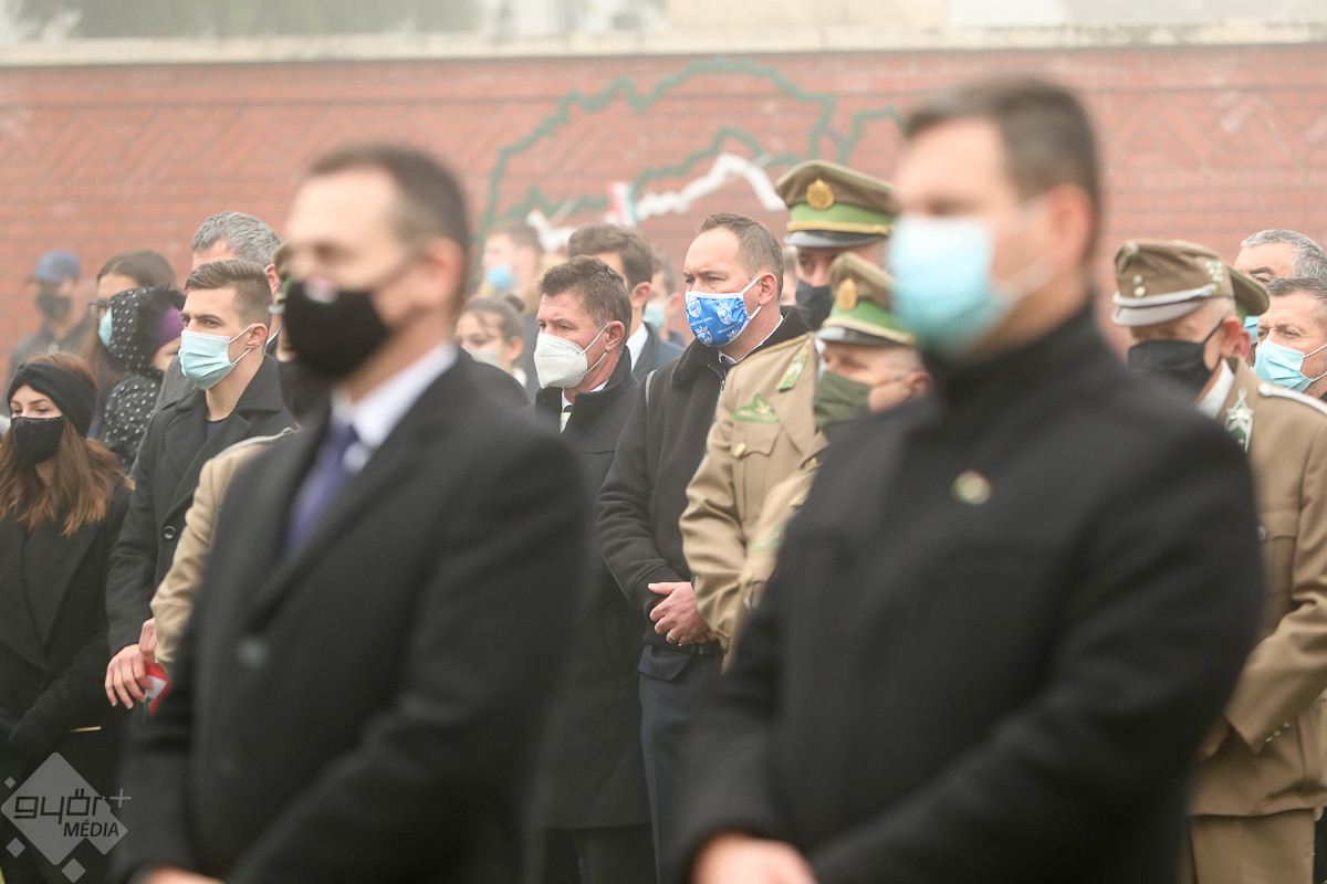 A szónok emlékeztetett arra, hogy városunk jövőre lesz 750 éves. Az ünnepségre való felkészülés során feltérképezték azokat a Győr kereszteket, melyek a város geopolitikai jelentőségét hirdetik, s nekünk köszönik meg, hogy Európát megvédtük a töröktől, amikor 1598-ban visszavettük a várat. A polgármester szólt a jelen értékeiről, a város gazdasági, oktatási, kulturális jelentőségéről is. „Győr tehát igenis meghatározó európai szereplője volt és marad a világnak úgy, hogy identitását, nemzeti elkötelezettségét soha nem veszíti el.”