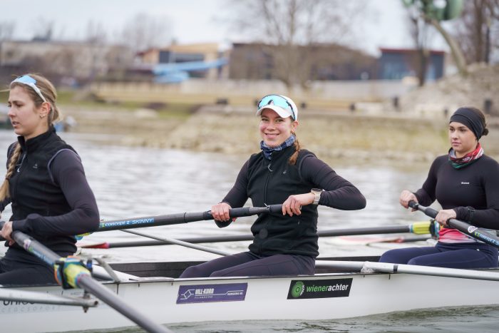 „Családi indíttatásból kezdtem evezni: édesapám is ebben a klubban sportolt fiatalon. Először az öcsém kezdte el űzni ezt a sportot, mi a nővéremmel kajakoztunk a közelben, de egy versenyen a közösség annyira magával ragadott, hogy mi is csatlakoztunk. Amikor már mindhárman eveztünk, apukánk is visszatért, és azóta is aktívan edz. Tavaly együtt teljesítettük a Budapest–Baja közötti 167 km-es versenyt – kezdte a fiatal lány, majd arról is beszélt, hogyan élte meg a váltást. – Laikusnak úgy tűnhet, hogy igazából átültem az egyik hajóból a másikba. Valójában így is történt, kivéve mondjuk az evezési irányt, hiszen az evezősök hátrafelé haladnak. Amúgy nehéz döntés volt, mert a kajakosoknál is erős, többgenerációs közösséghez tartoztam, és ott kellett hagynom a barátaimat. Bár az evezősök és a kajakosok jó viszonyban vannak, a vízen mégis rivalizálás is érezhető. Az edzők is látták, amikor először beültem az evezős hajóba, ami egyszerre könnyítette és nehezítette a helyzetet. Hosszú hetekig gondolkodtam, de végül jó döntést hoztam.”