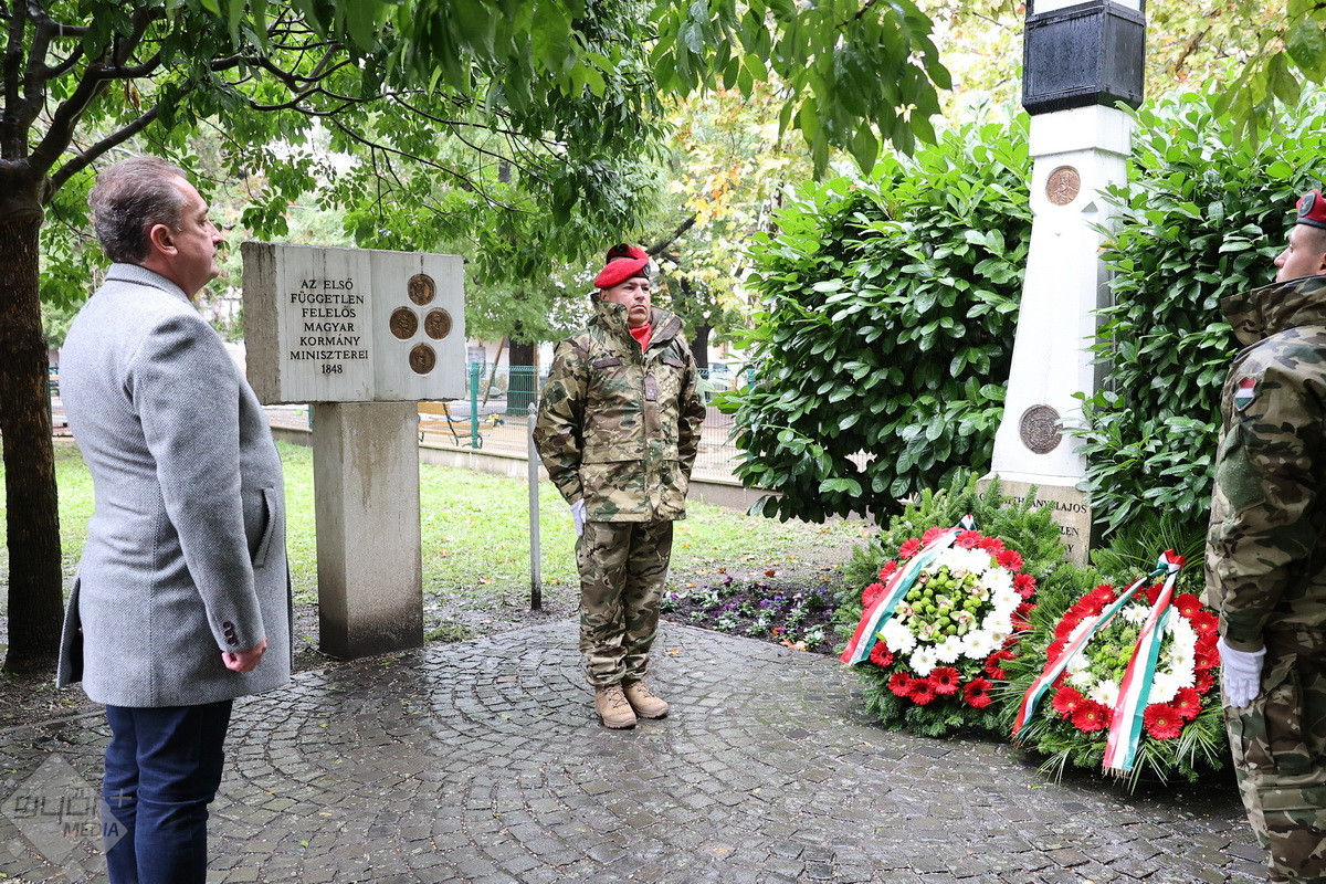 A Batthyányi téren álló emlékoszlopnál tartott megemlékezést október 6. tiszteletére a győri önkormányzat pénteken.