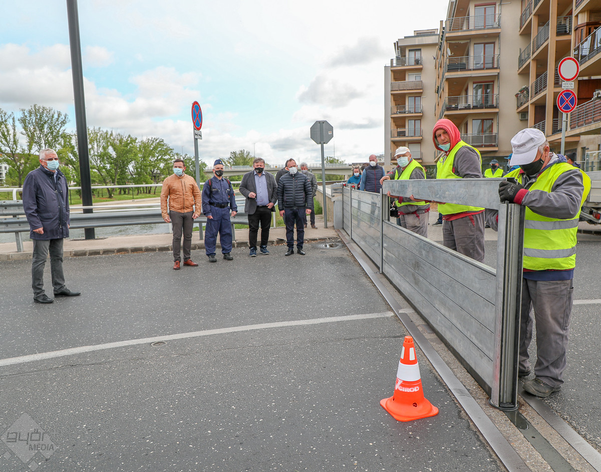 Az árvízi védekezést gyakorolták csütörtök reggel a belvárosban. A Győr-Szol szakemberei egy mobil kaput építettek be a Móricz Zsigmond alsó rakpart-Újkapu utca kereszteződésénél. Komolyabb árhullám csak 6-7 évente veszélyezteti a várost, azért a szolgáltató évente, árvízvédelmi gyakorlatot tart, hogy felkészülten várják az esetleges havária helyzetet.
