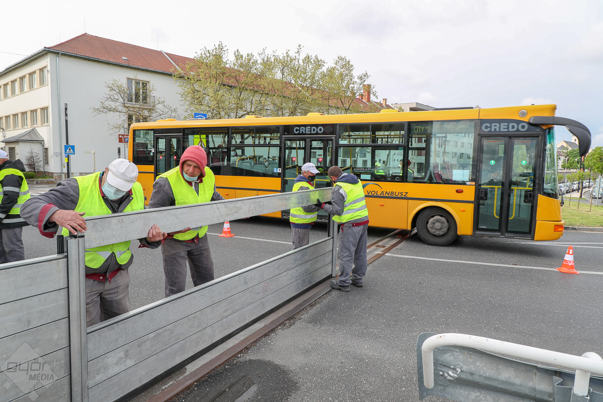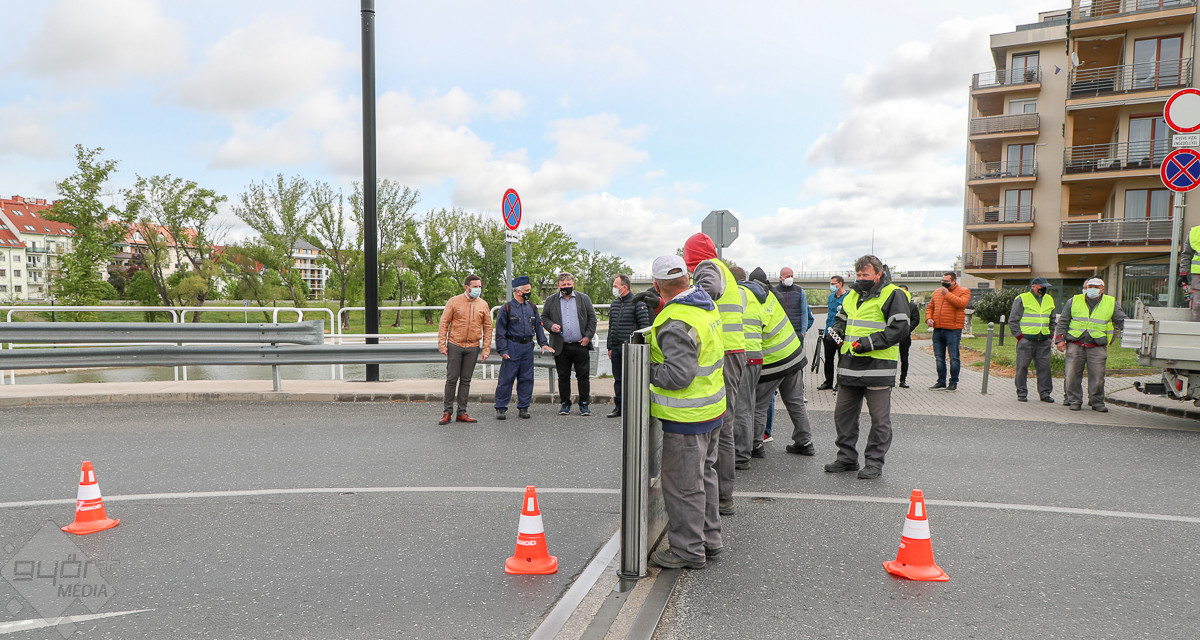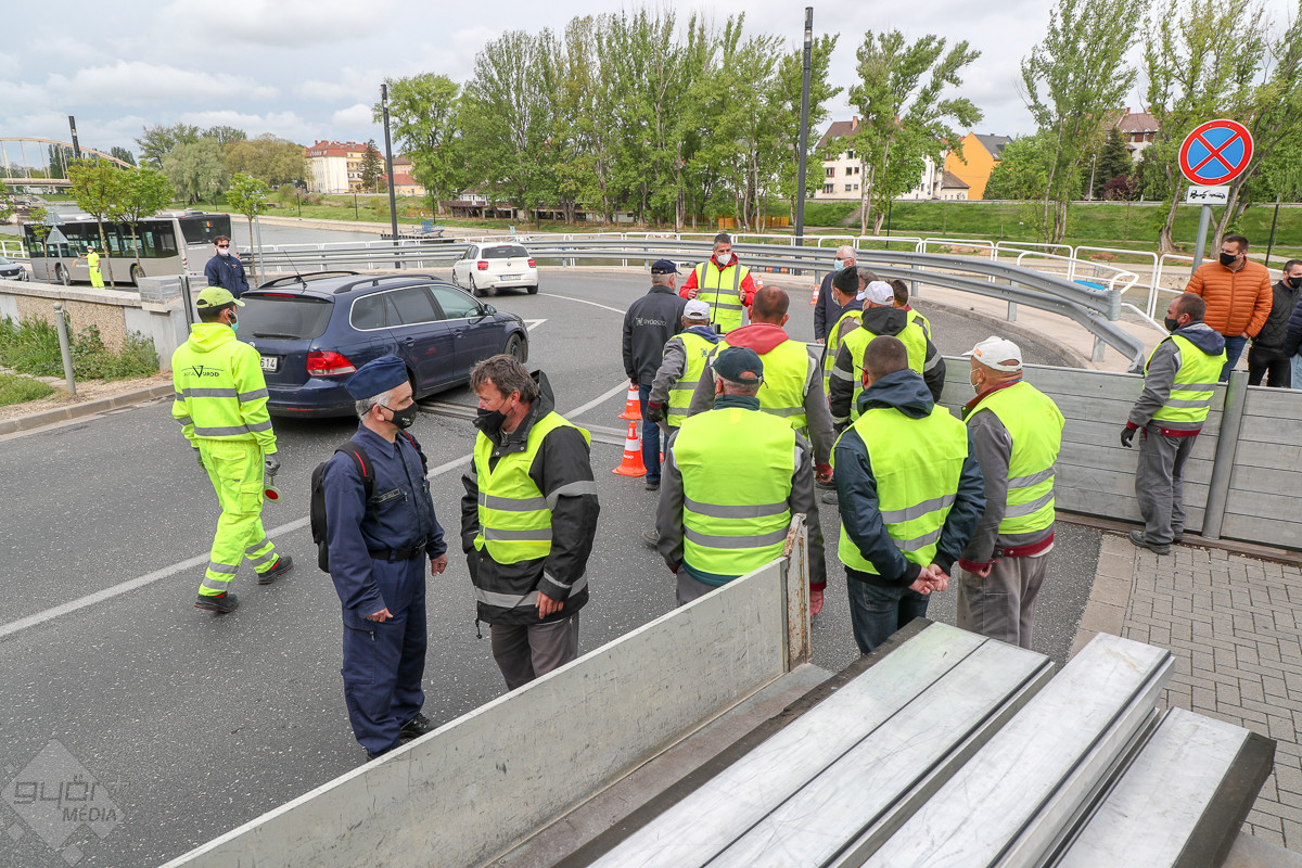 Reggel fél kilenckor a Győr-Szol, az önkormányzat, a katasztrófavédelem és az ÉDIVIZIG szakemberei gyülekeztek az alsó rakpart és az Újkapu utca kereszteződésében. Ide hirdette meg látványos, árvízvédelmi gyakorlatát a szolgáltató.
