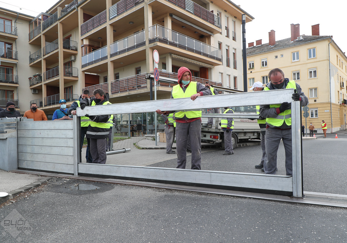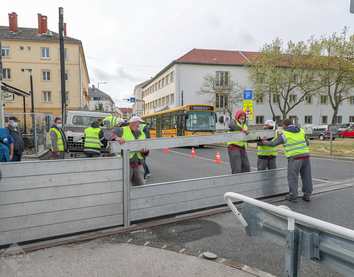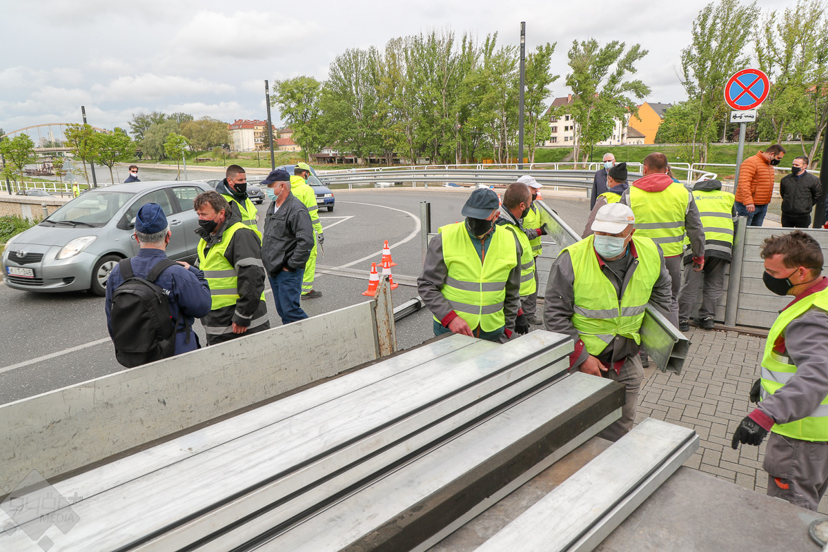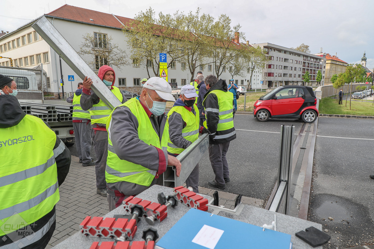 „Árvízvédelmi gyakorlatot hirdettünk, ahol szakembereink azt gyakorolják, hogyan kell összeállítani és felépíteni a közel 14 méter hosszú kulisszanyílásba, a több mint 1 méter magas alumínium árvízvédelmi falat” – mondta a Győr Plusznak a Győr-Szol városüzemeltetési üzletágvezetője.
