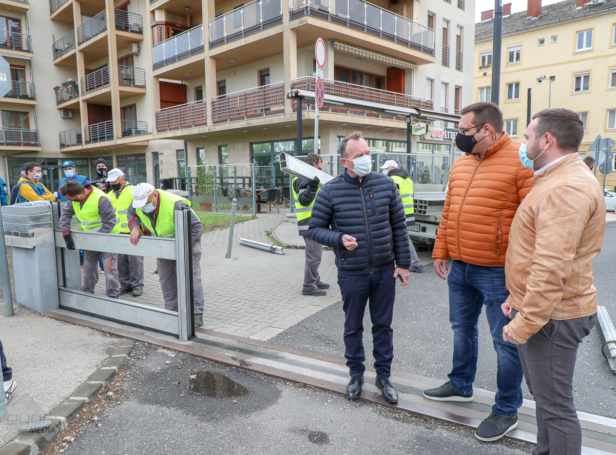 „Örülök, hogy az idősebb szakemberek már rutinosan húzzák fel a mobil falat, de a fiatalabbak könnyedén építették össze a rögzítő oszlopokat és a gátgerendákat” – mondta a polgármester. A következő hetekben nem fenyegeti árhullám Győrt, de jó volt látni, hogy a városban, jó kezekben van az árvízvédelem.